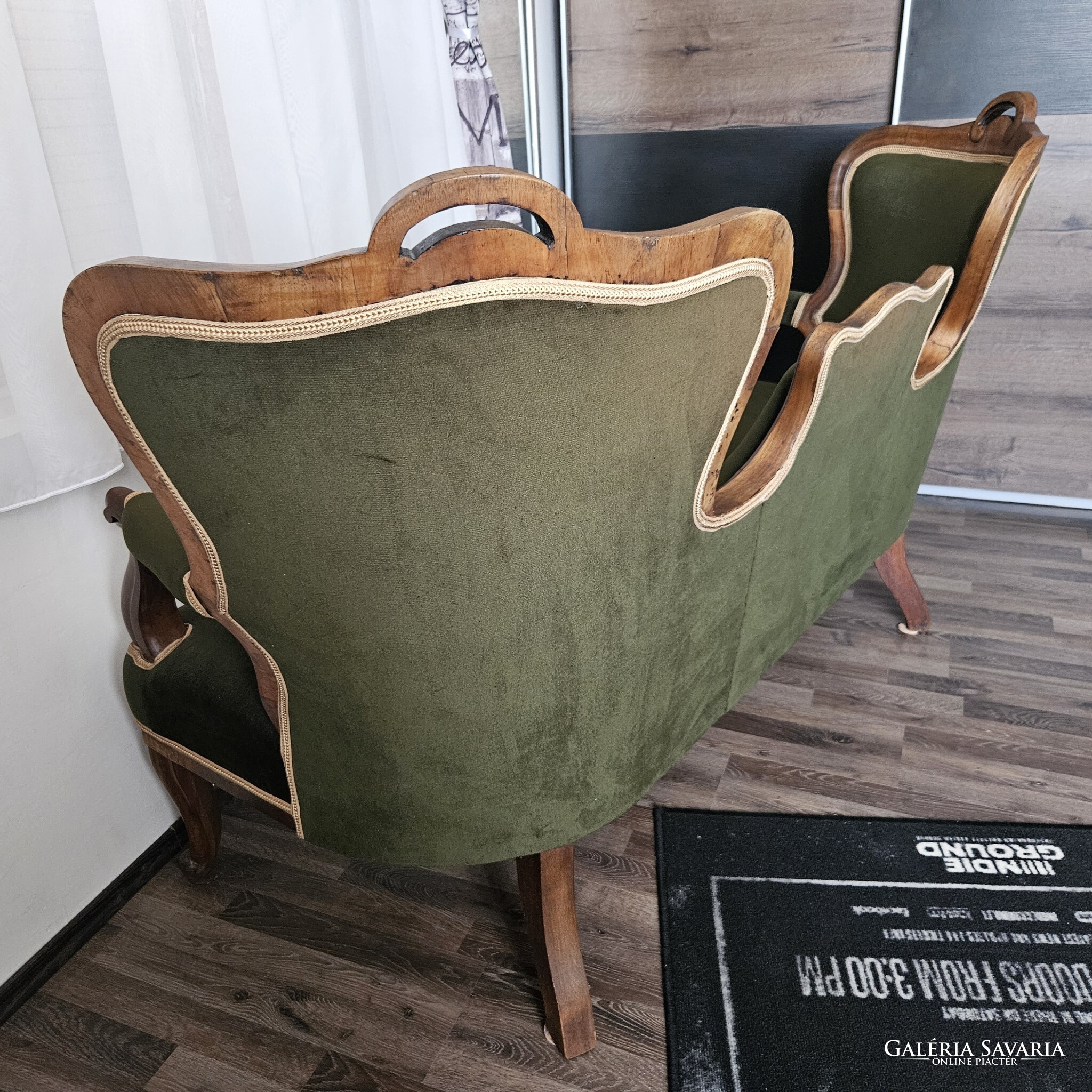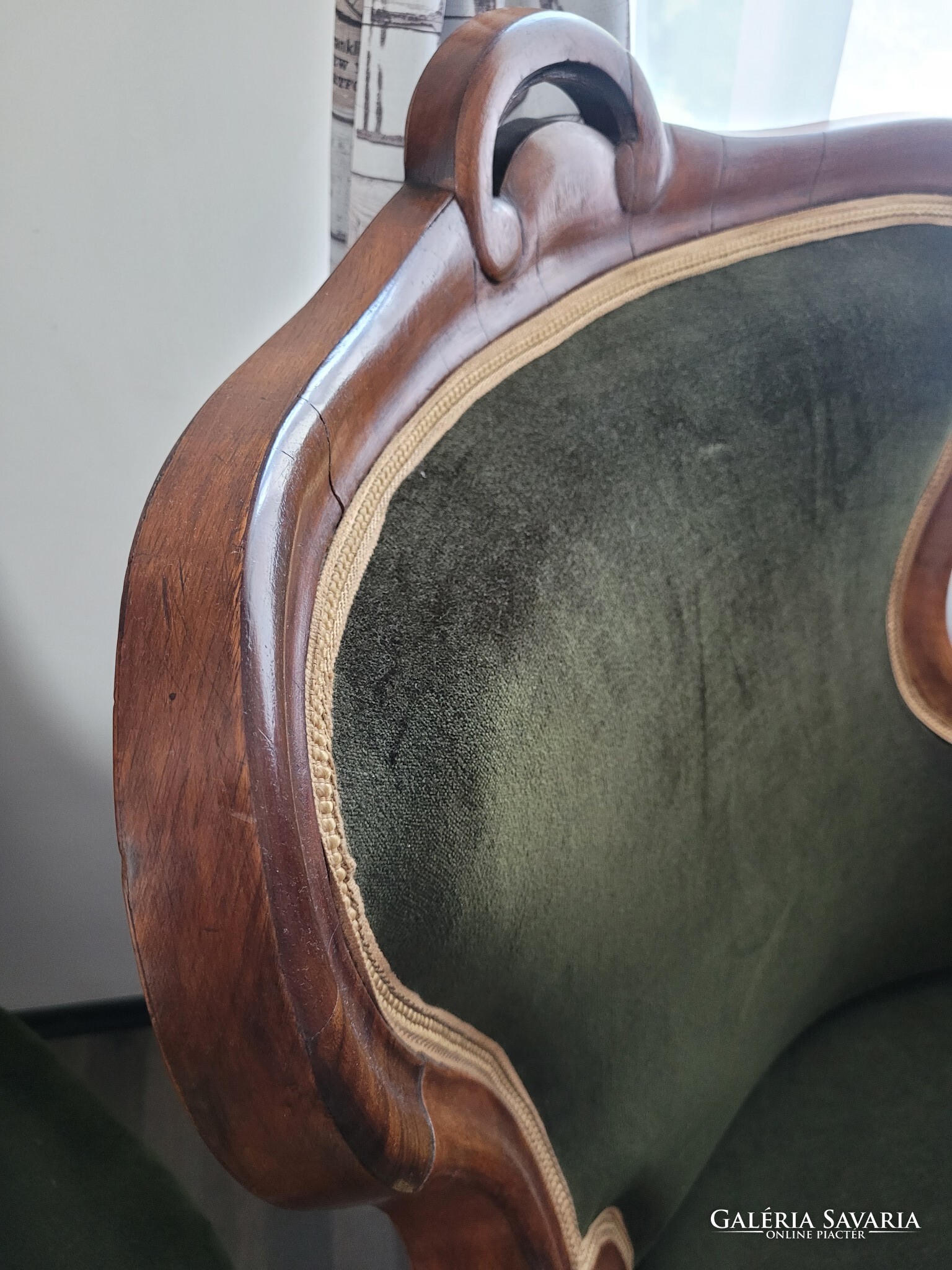 Rugós, hibátlan állapotú, bársony borítású kárpit. Masszív, nehéz darabok.