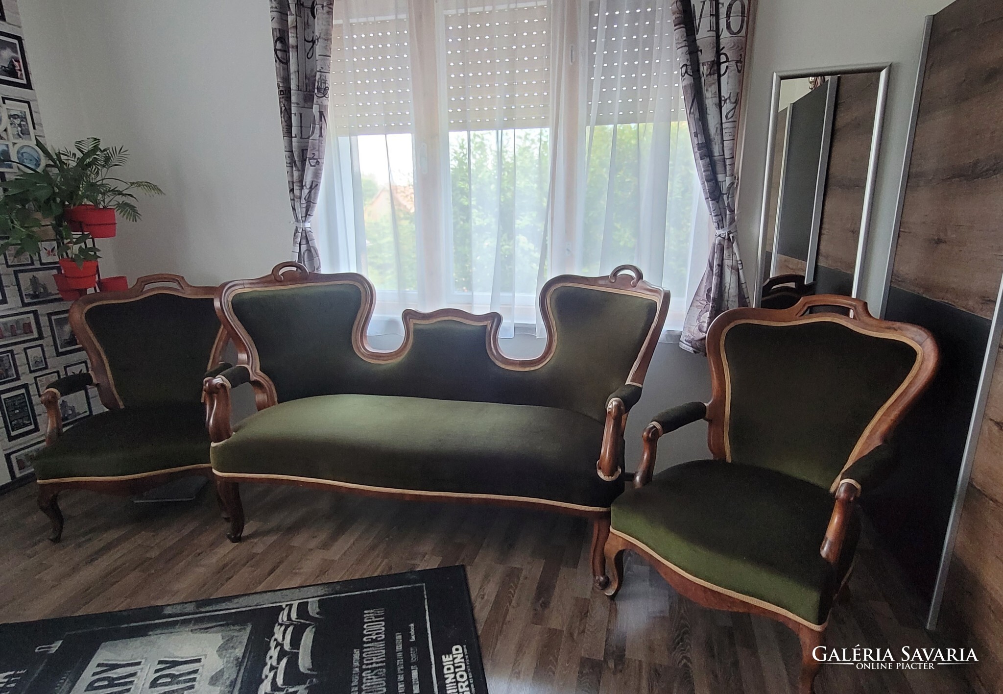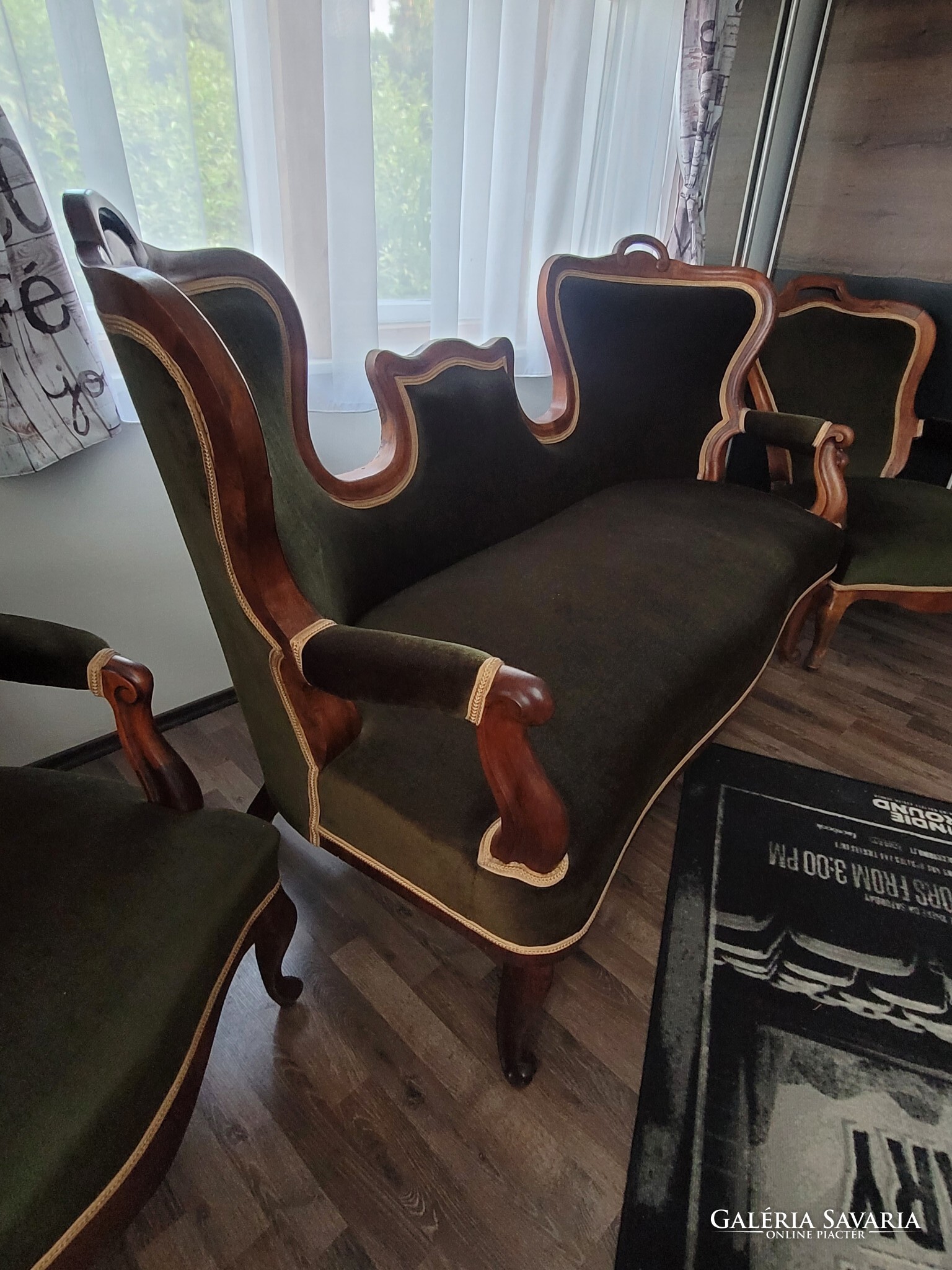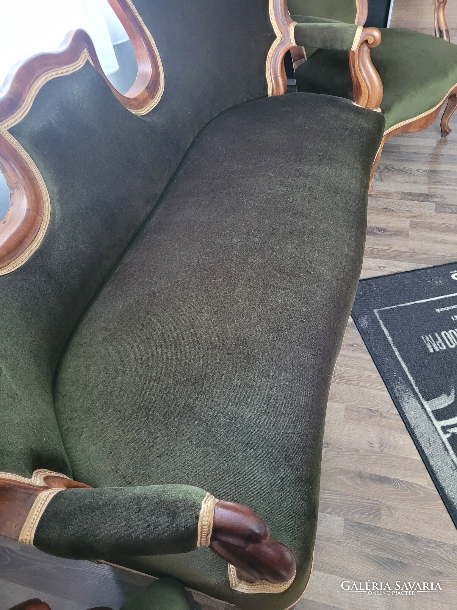Gyönyörű 1850 körüli, Lajos korabeli, Louis Philippe stílusú karfákkal díszített szalongarnitúra.