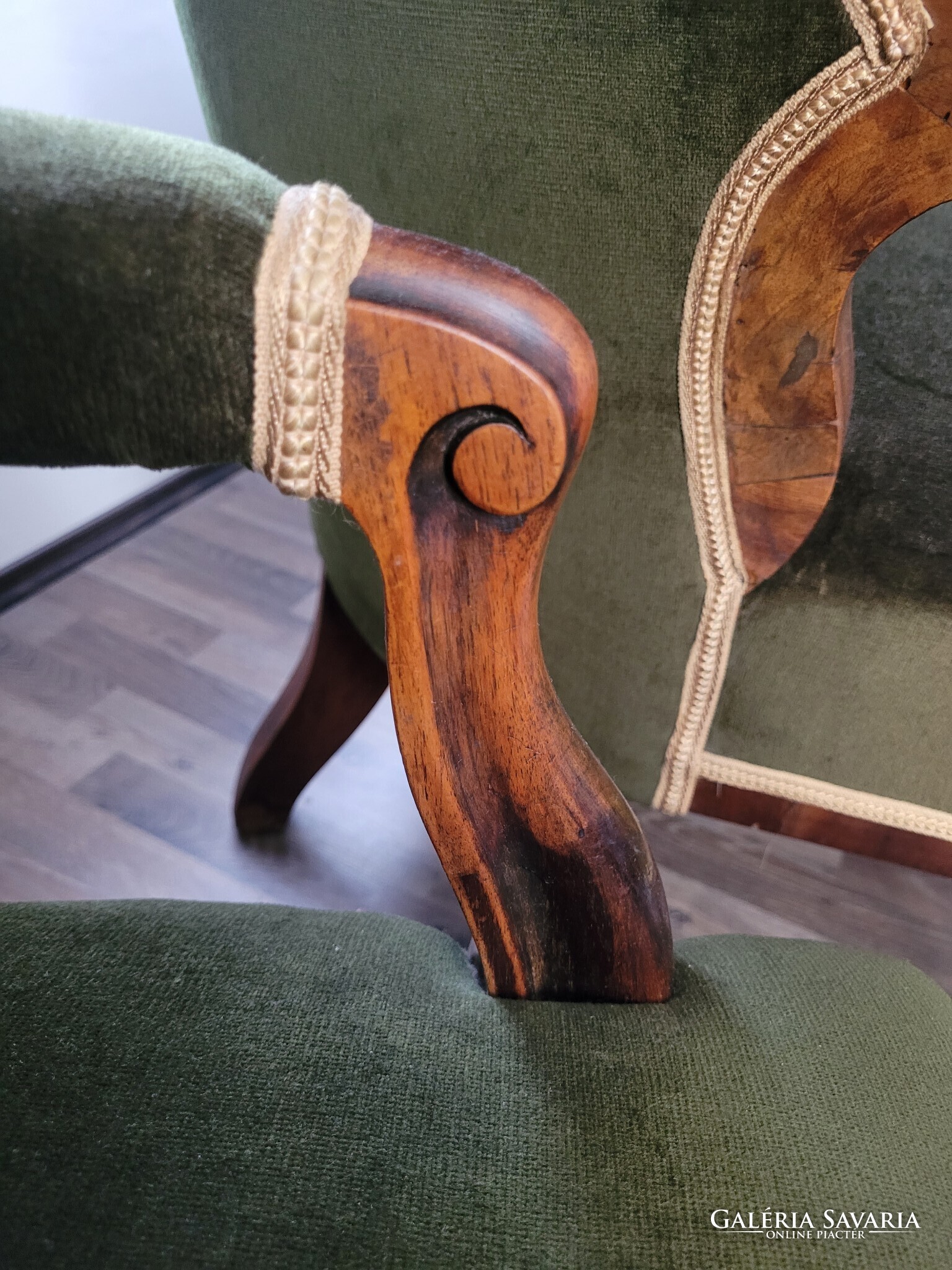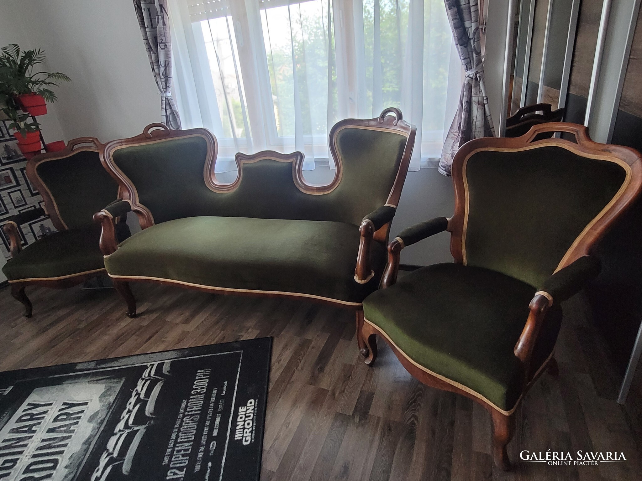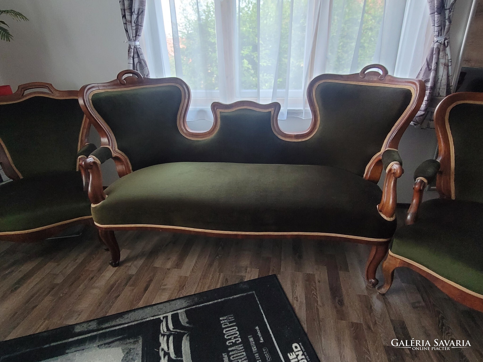 Gyönyörű 1850 körüli, Lajos korabeli, Louis Philippe stílusú karfákkal díszített szalongarnitúra.