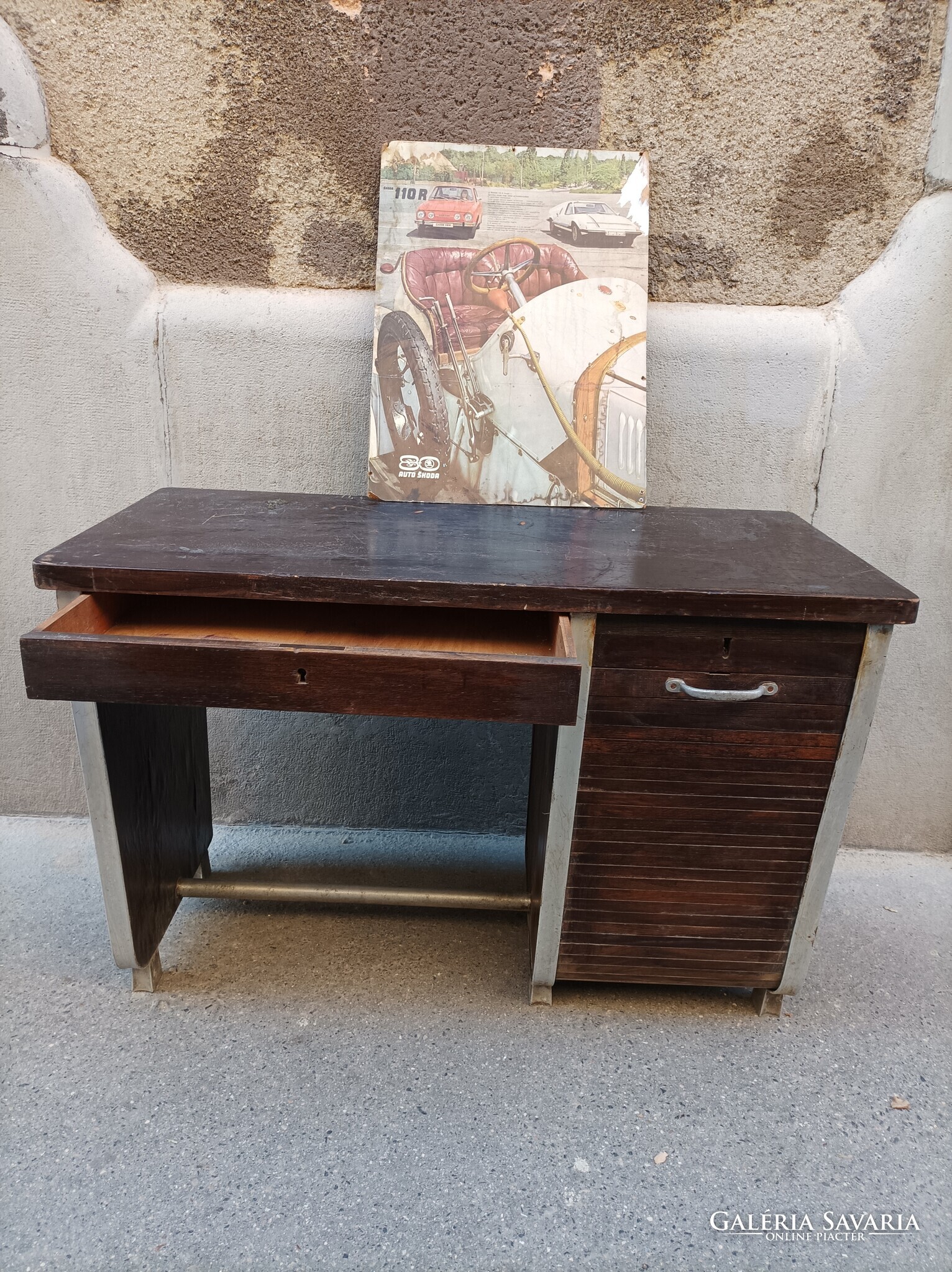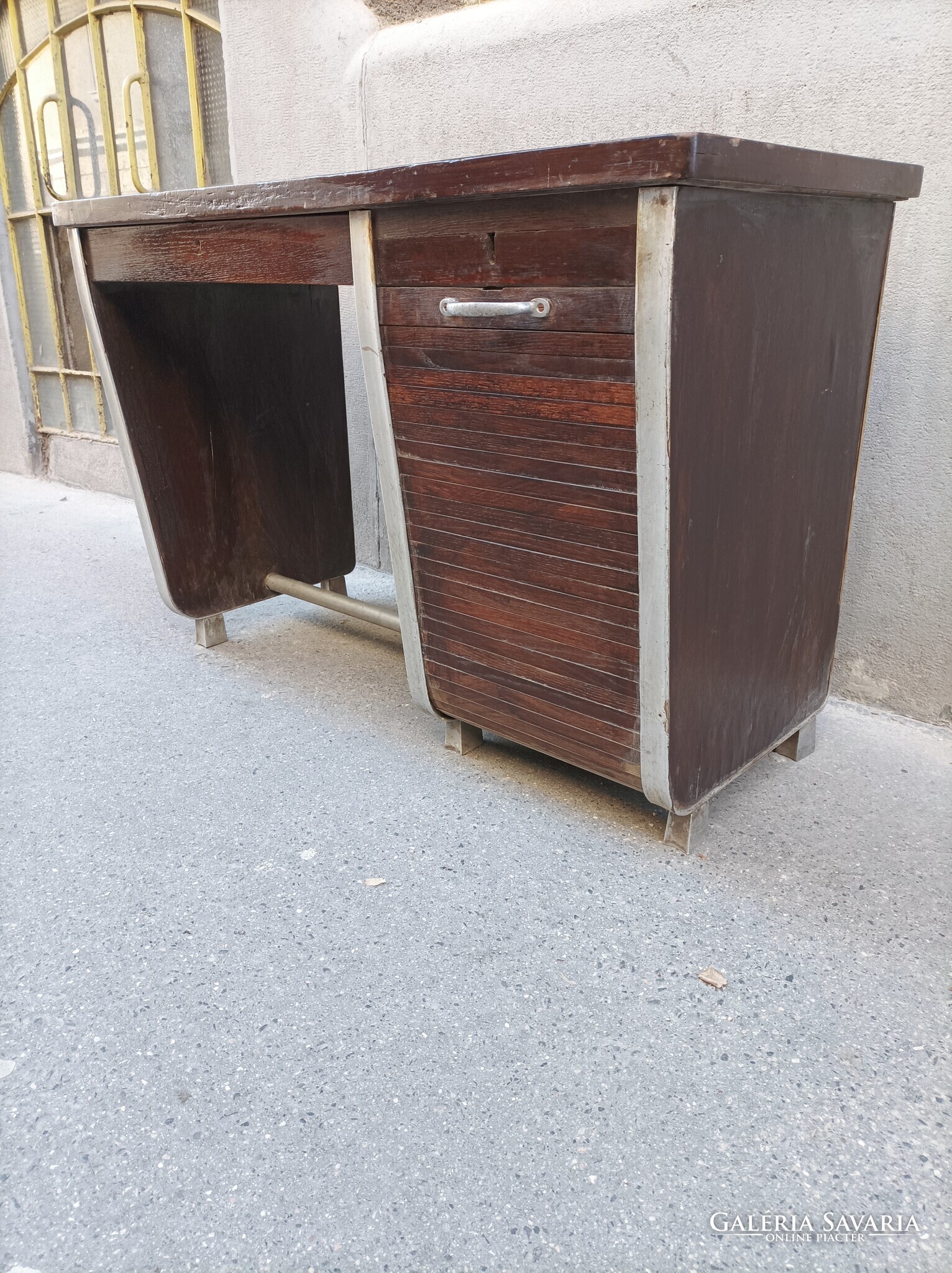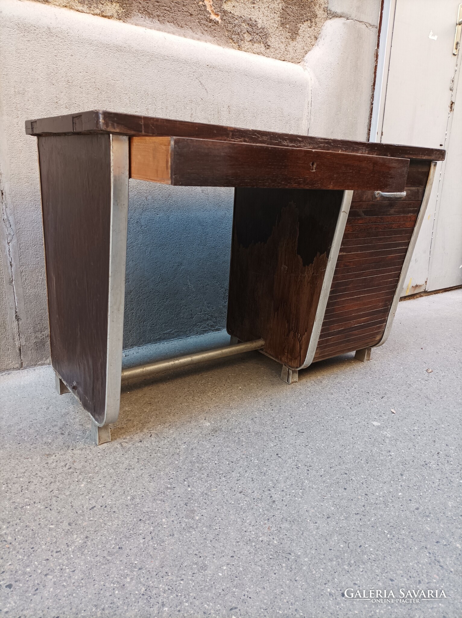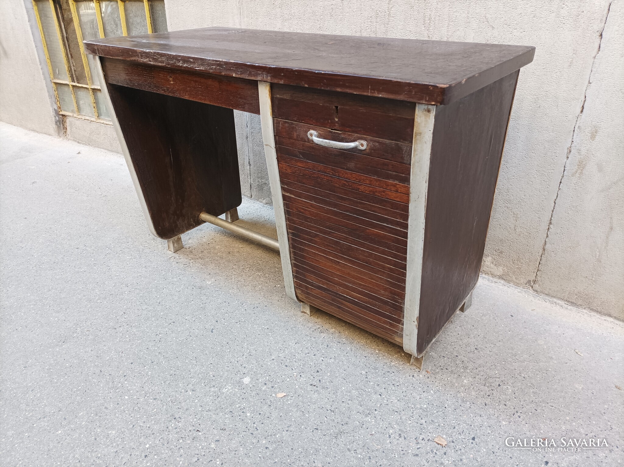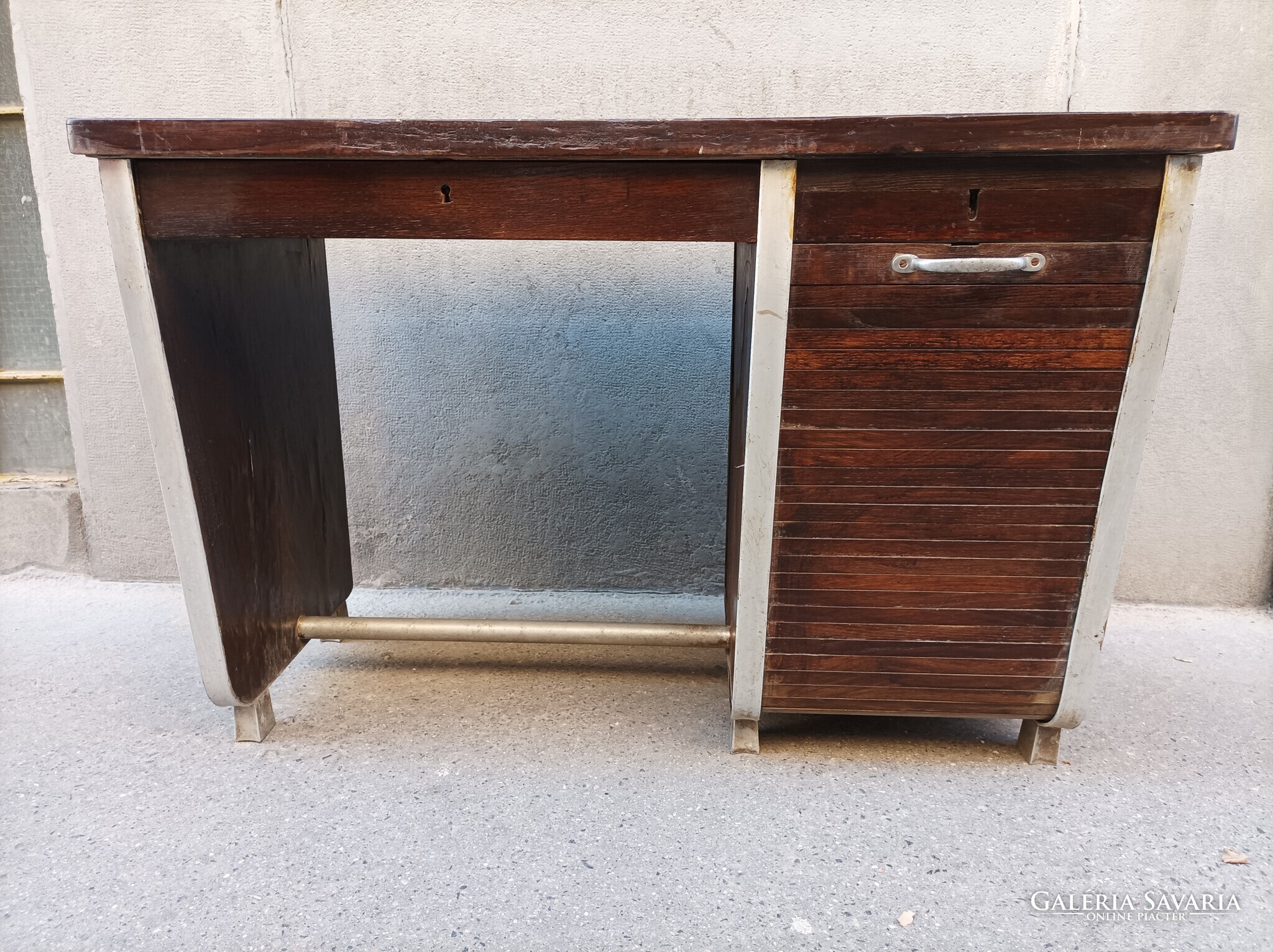 Rolója müködik, mögötte az 5 fiókból 3 db van meg. Alulminíum lábakon, eredetileg.