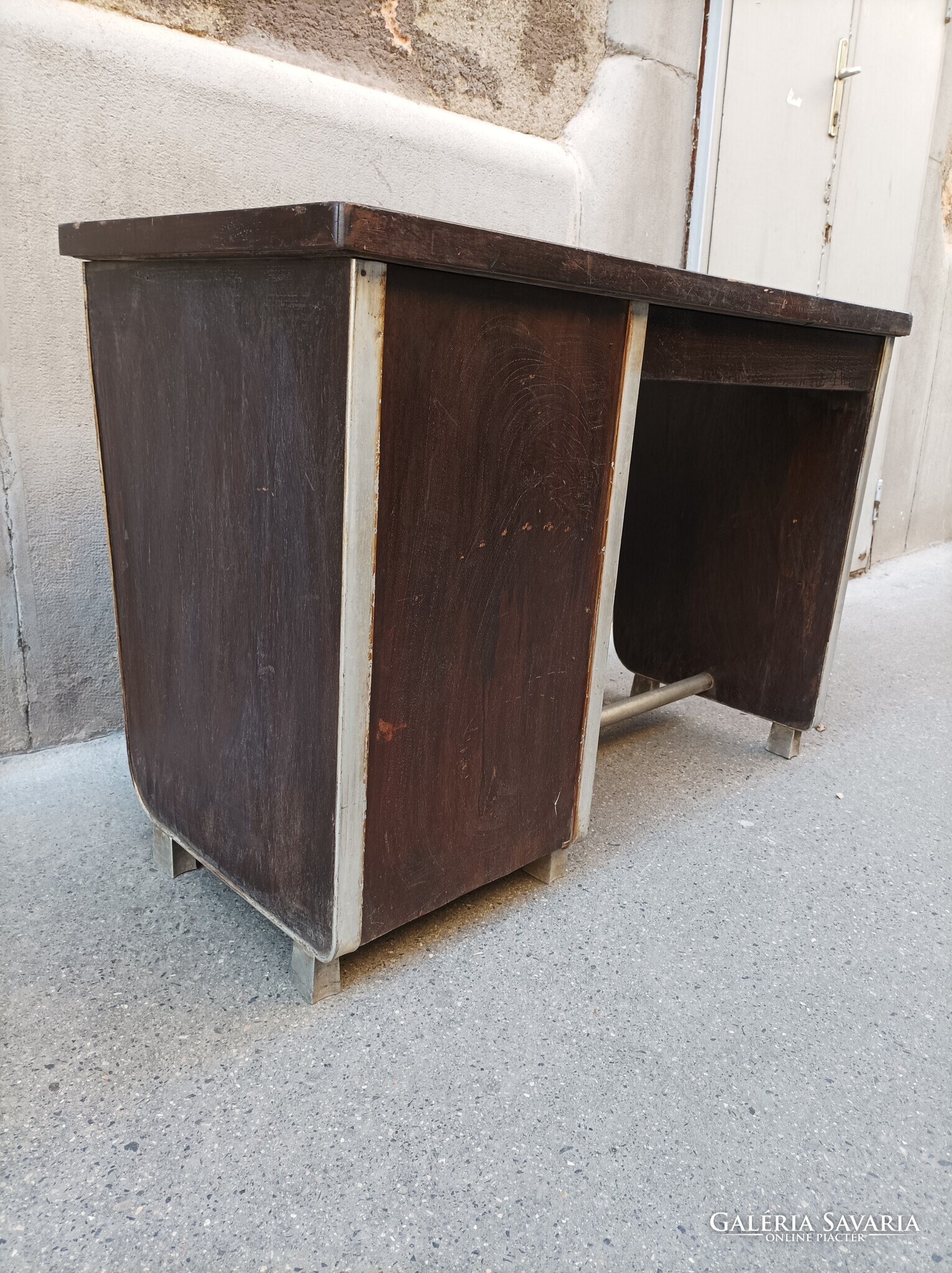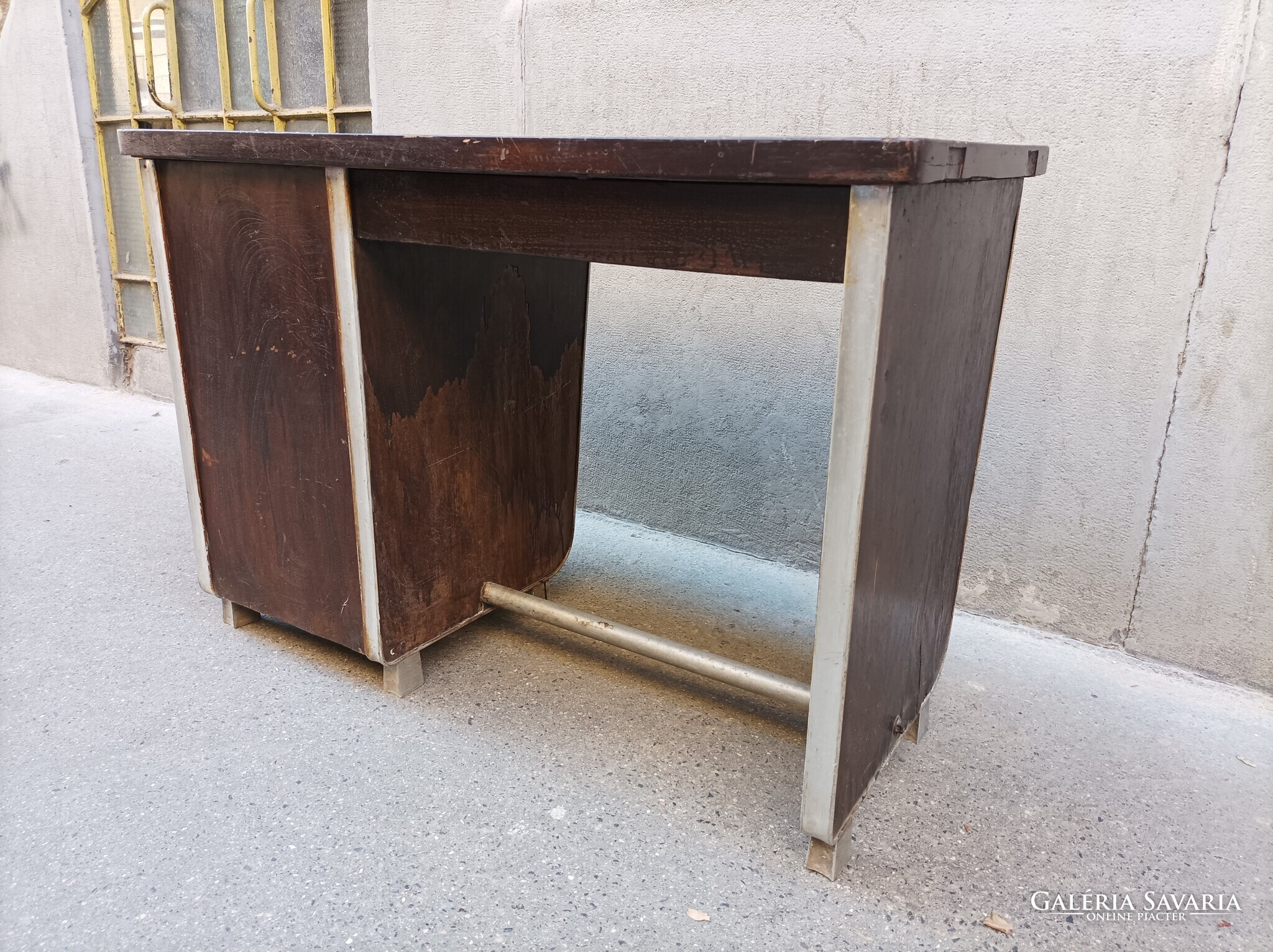 Bauhaus, minimal style, aluminíum és fa kombináció, kisméretű íróasztal