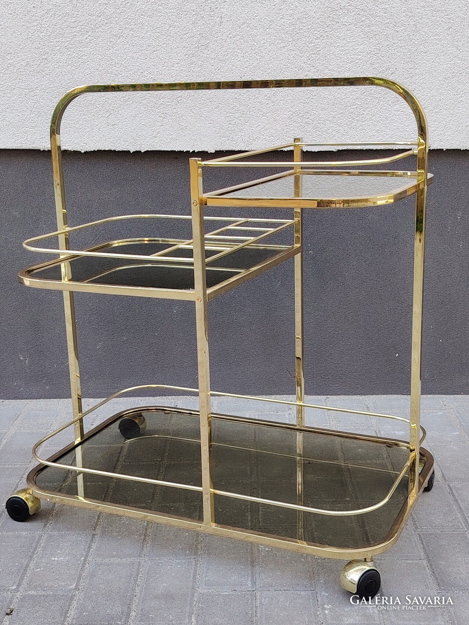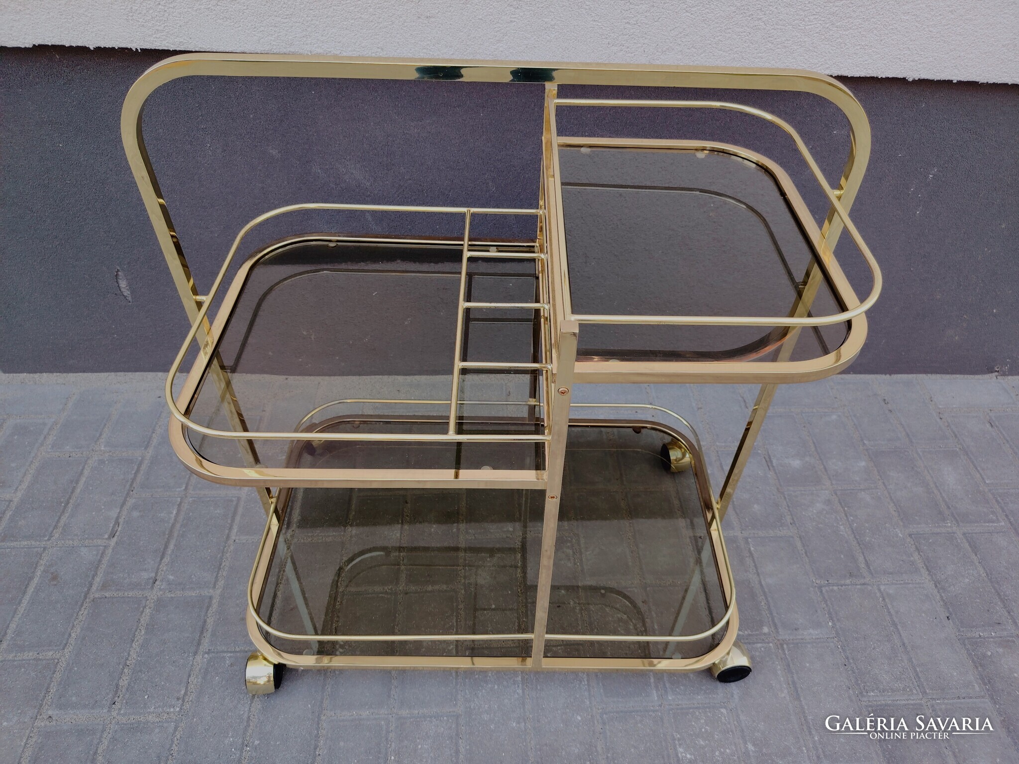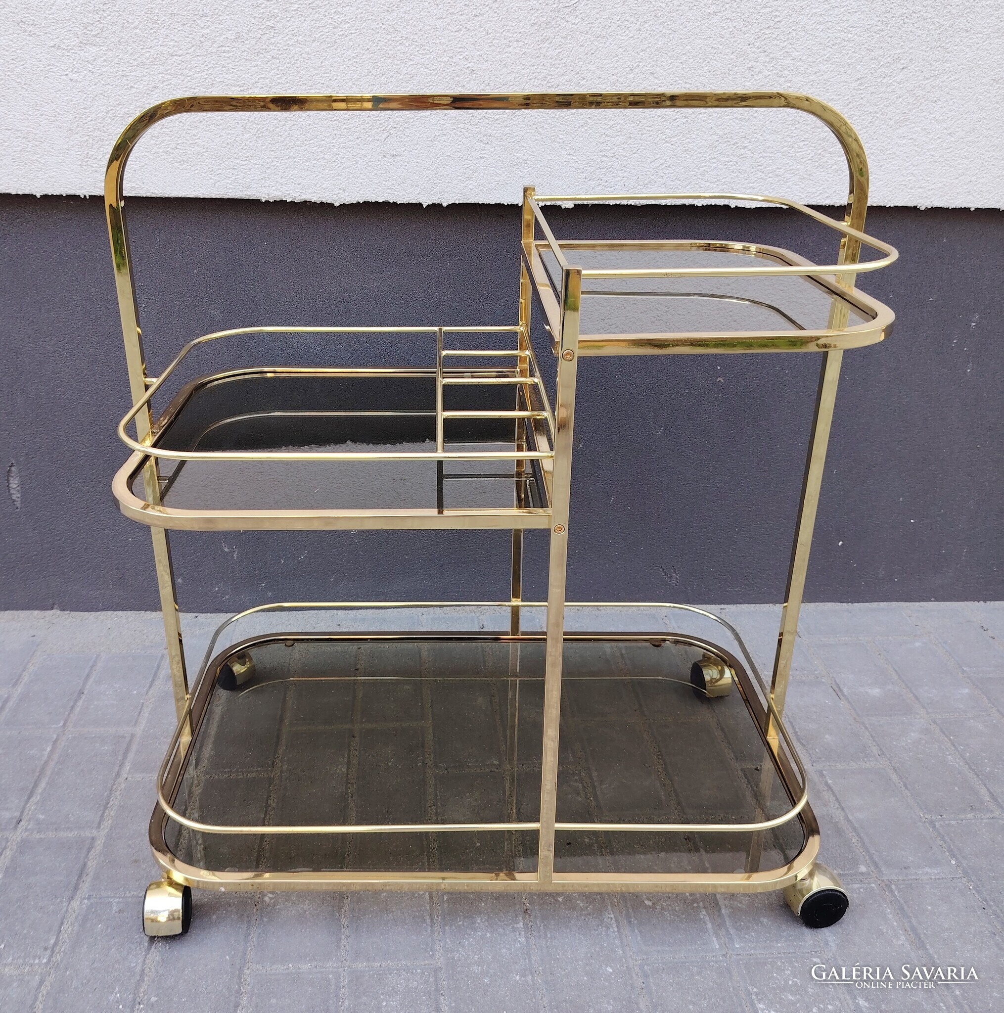 Árt Deco Francia réz zsurkocsi 1970.Ritka nagy méretű, három szintes. Szép állapotban.