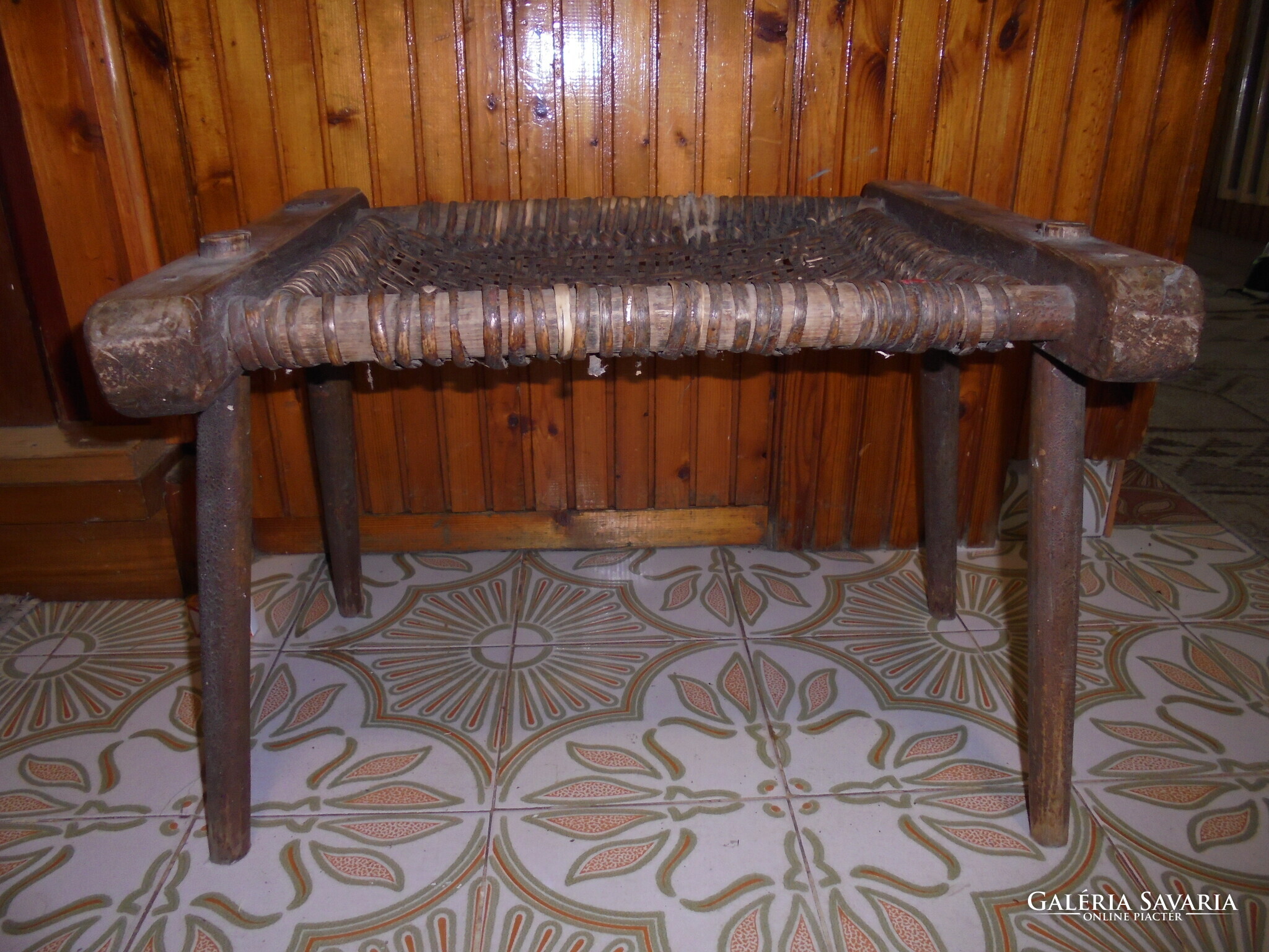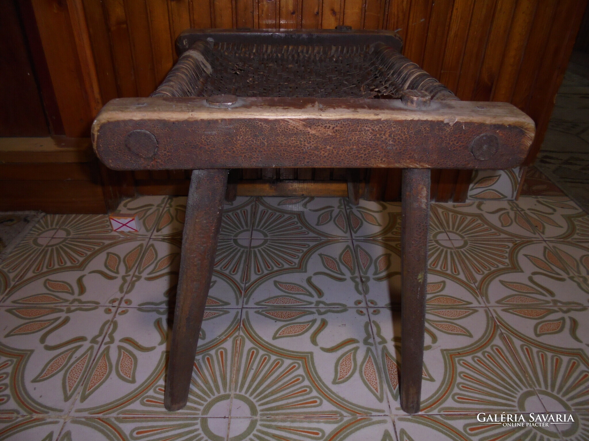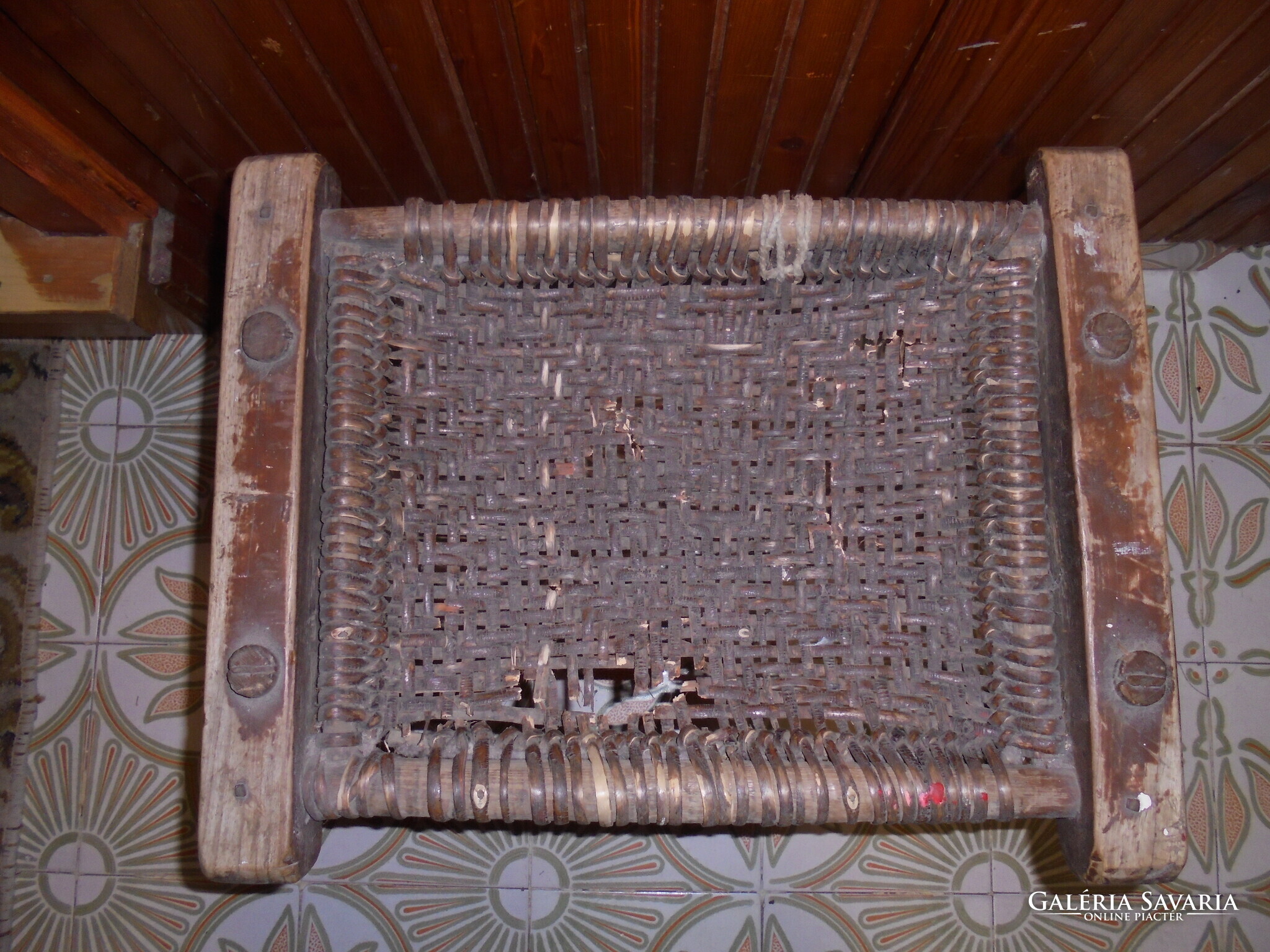 ANTIK fa szék, sámli, ülőke - fonott ülőlap - népi, paraszti