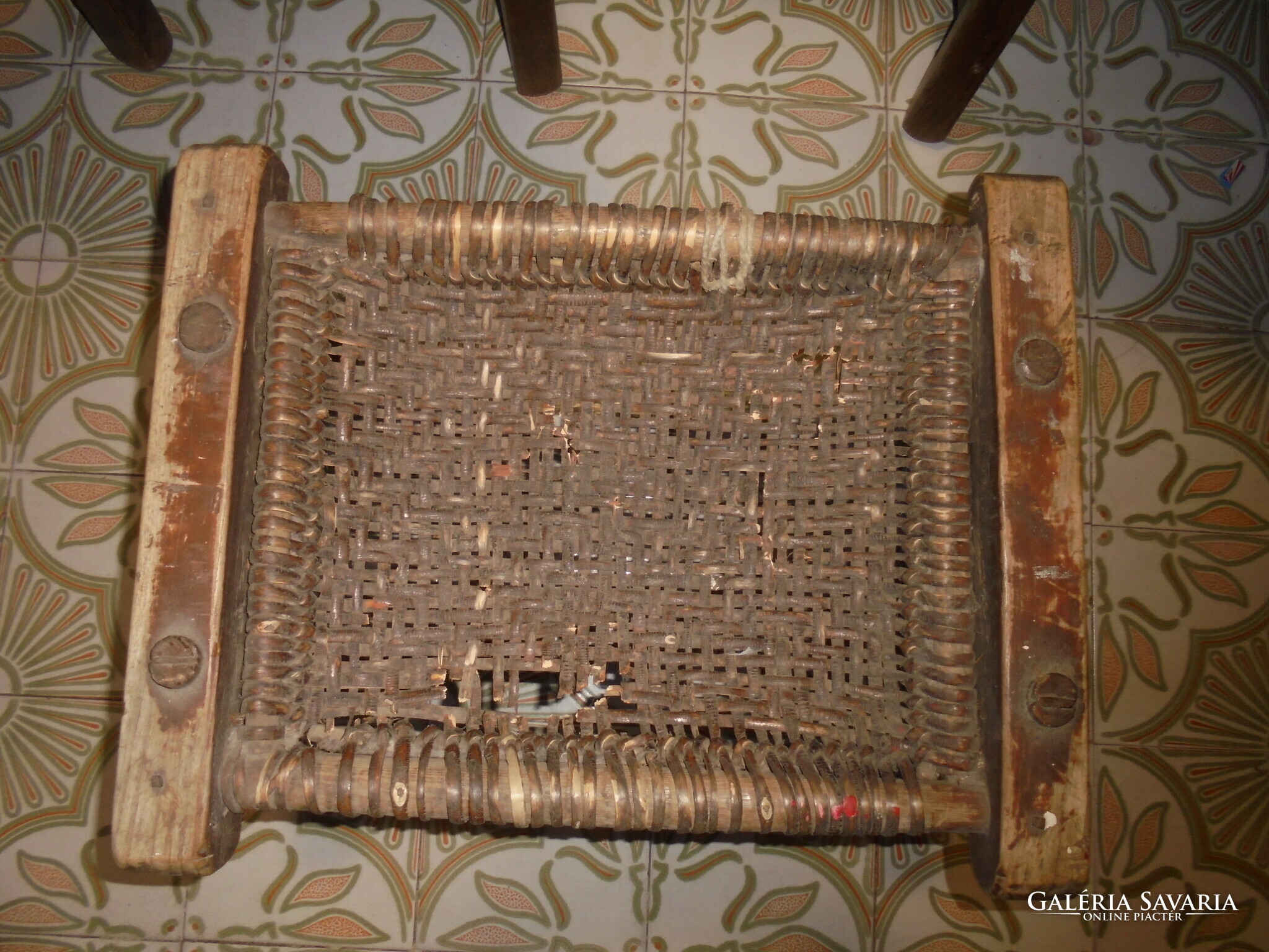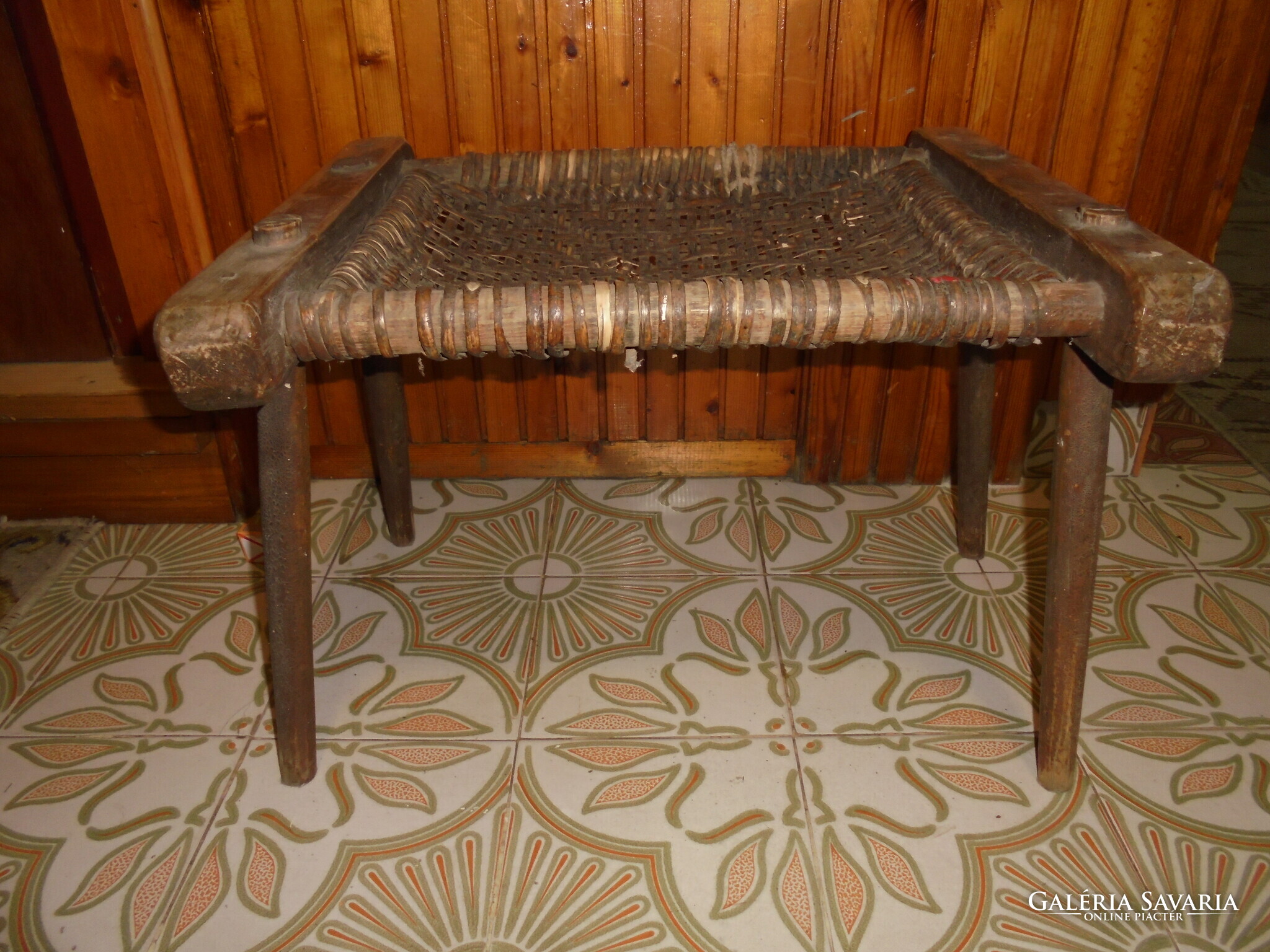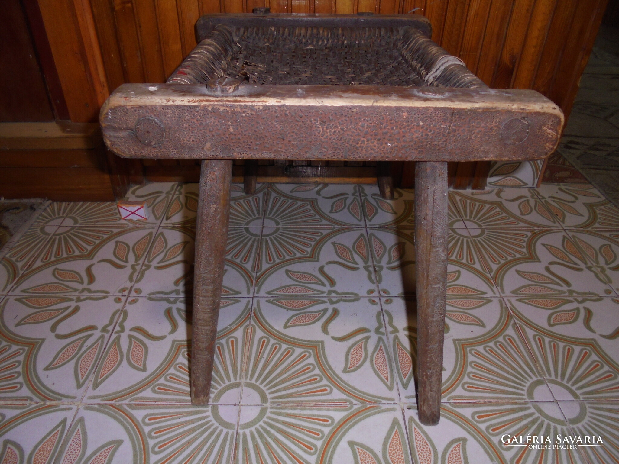 ANTIK fa szék, sámli, ülőke - fonott ülőlap - népi, paraszti