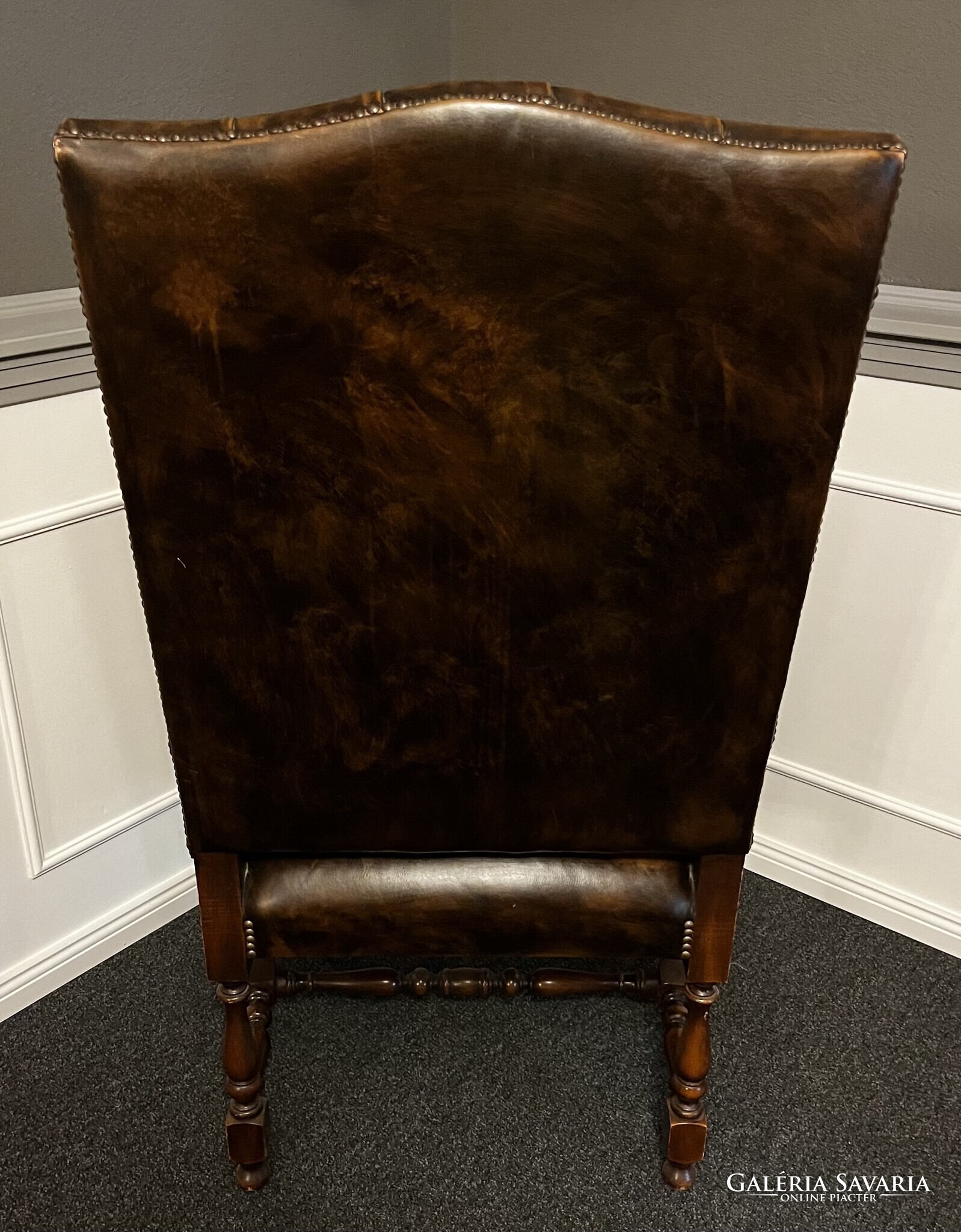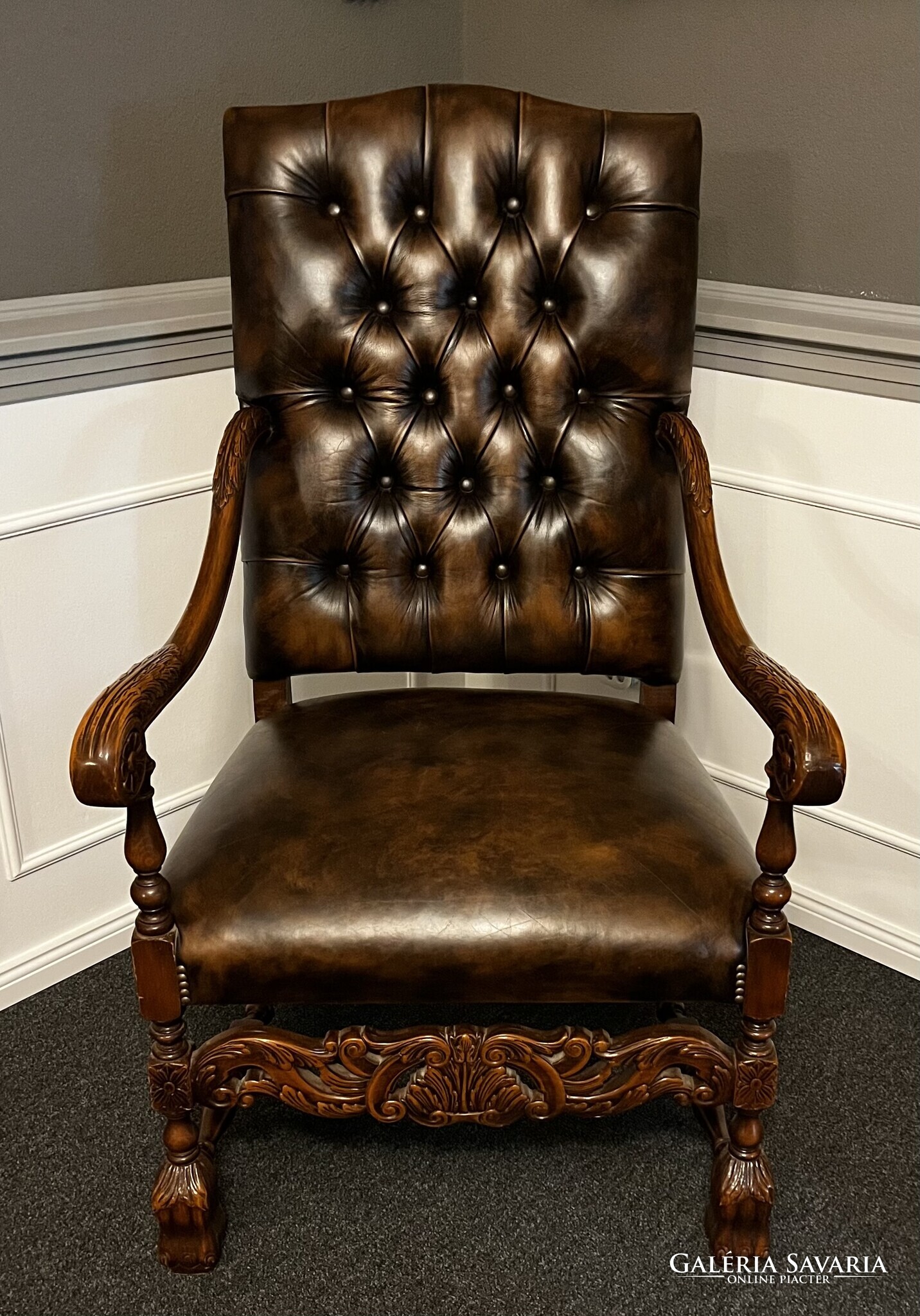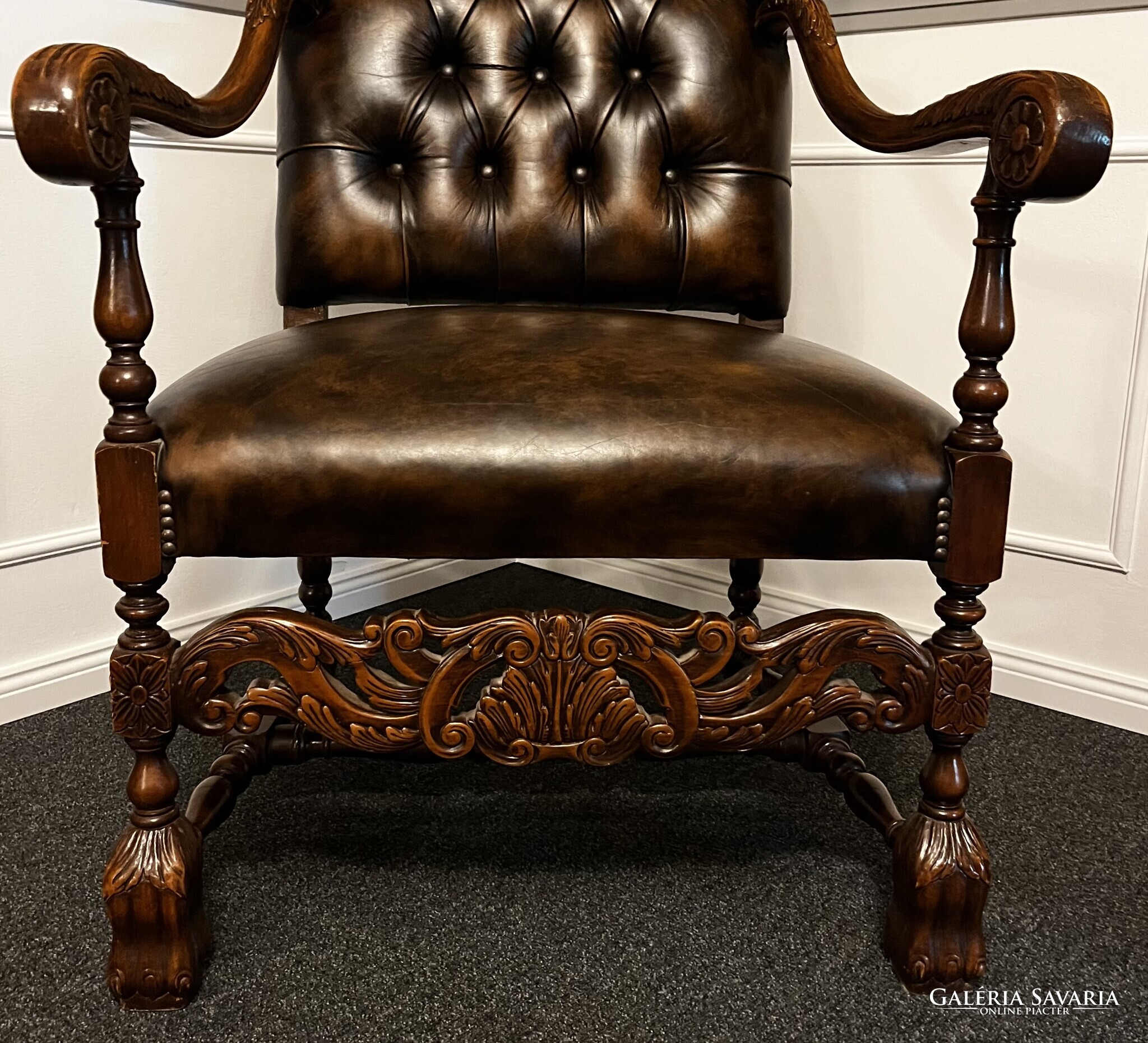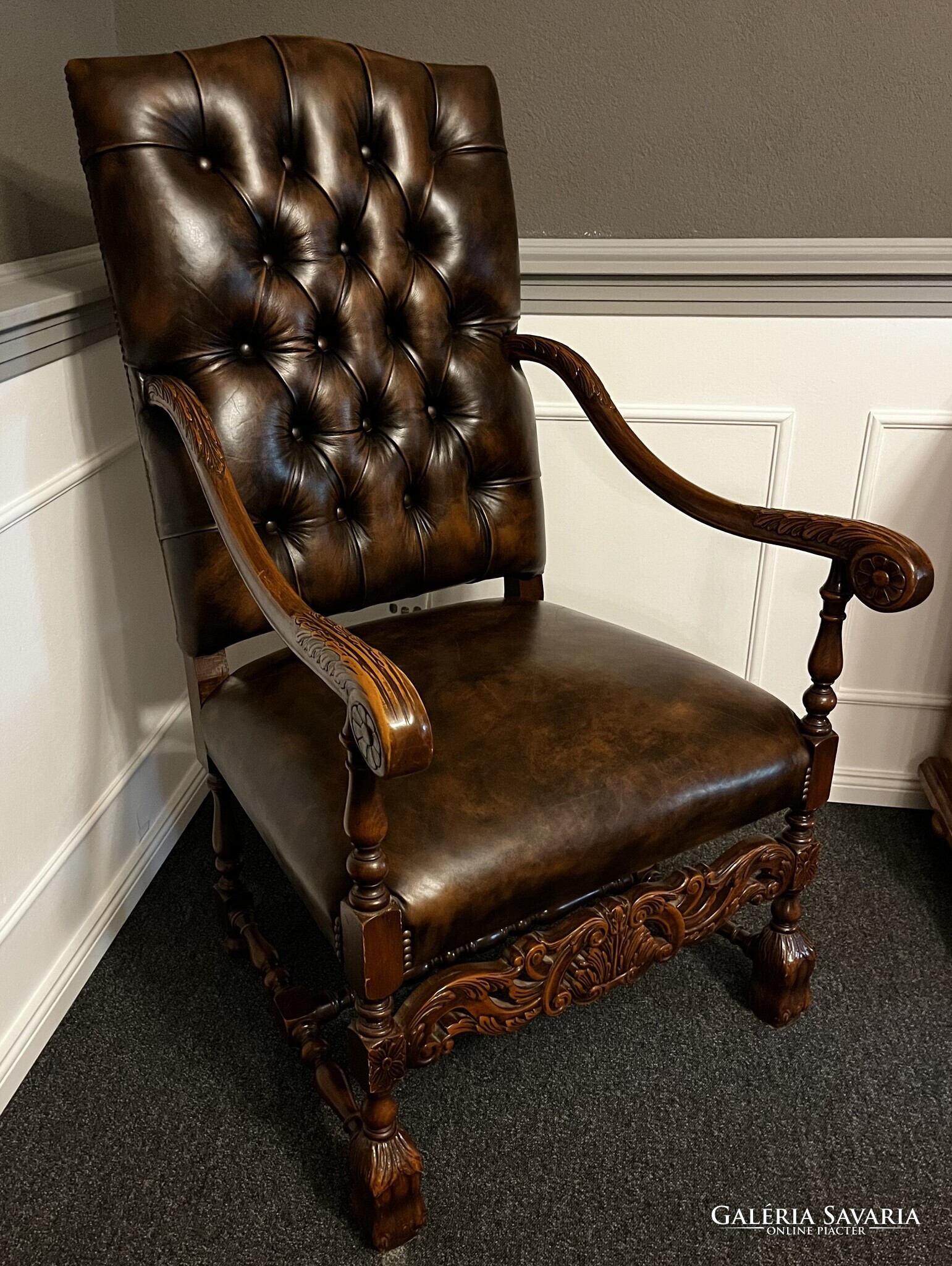 Gyönyörű , antik, neoreneszánsz, bőr fotel -karosszék- trónszèk !
