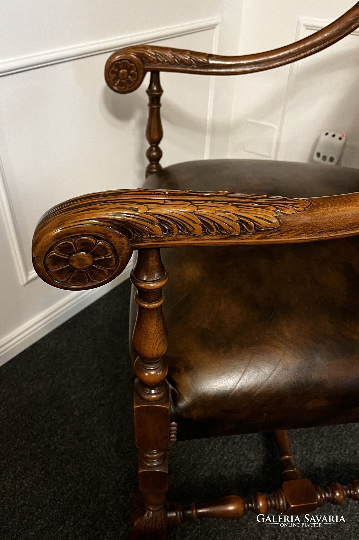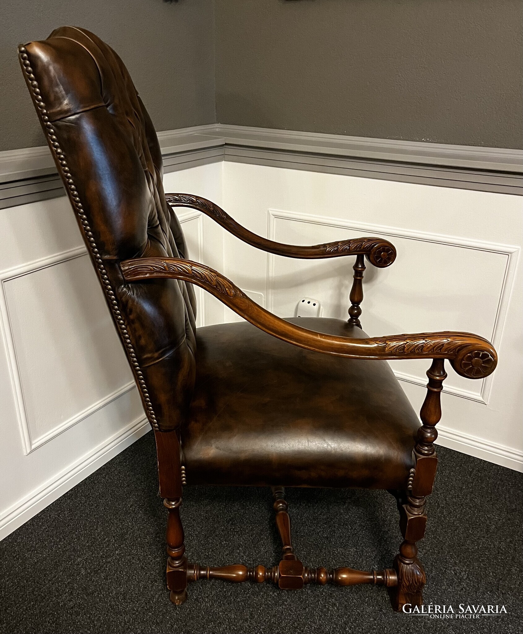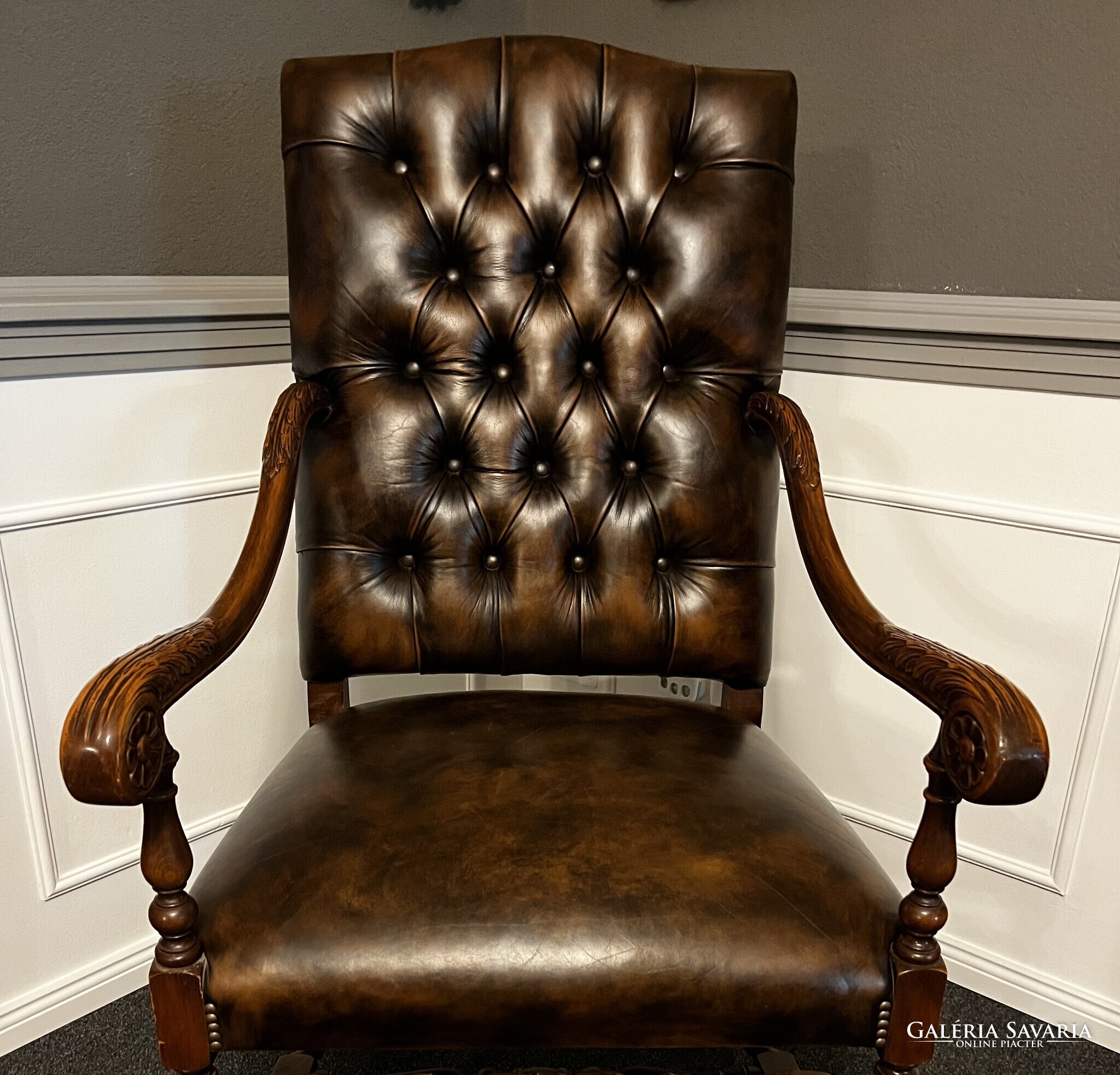 Gyönyörű , antik, neoreneszánsz, bőr fotel -karosszék- trónszèk !