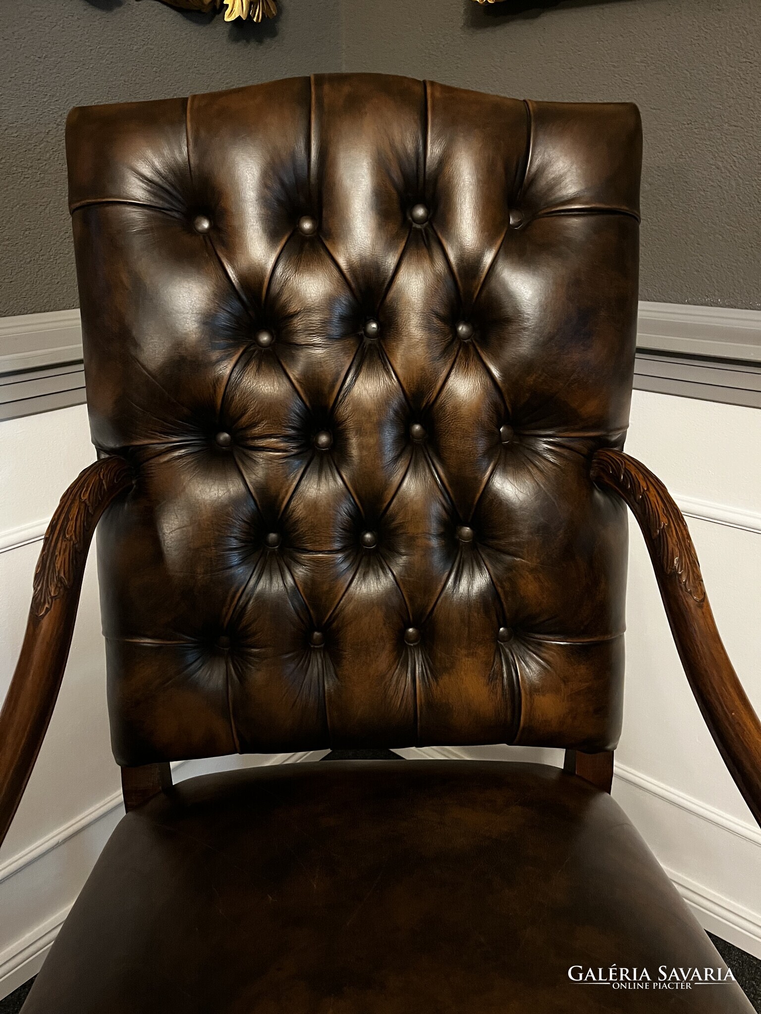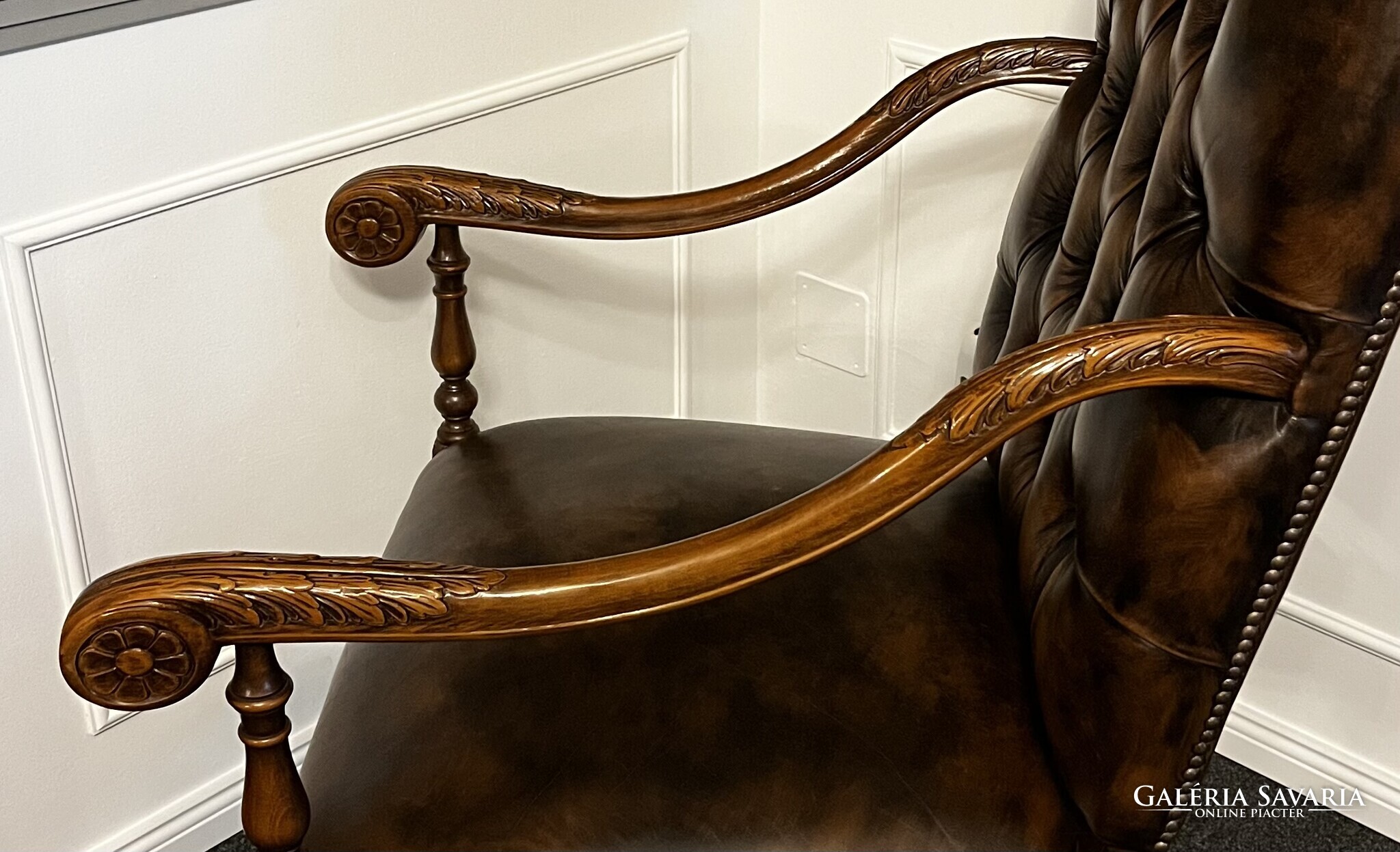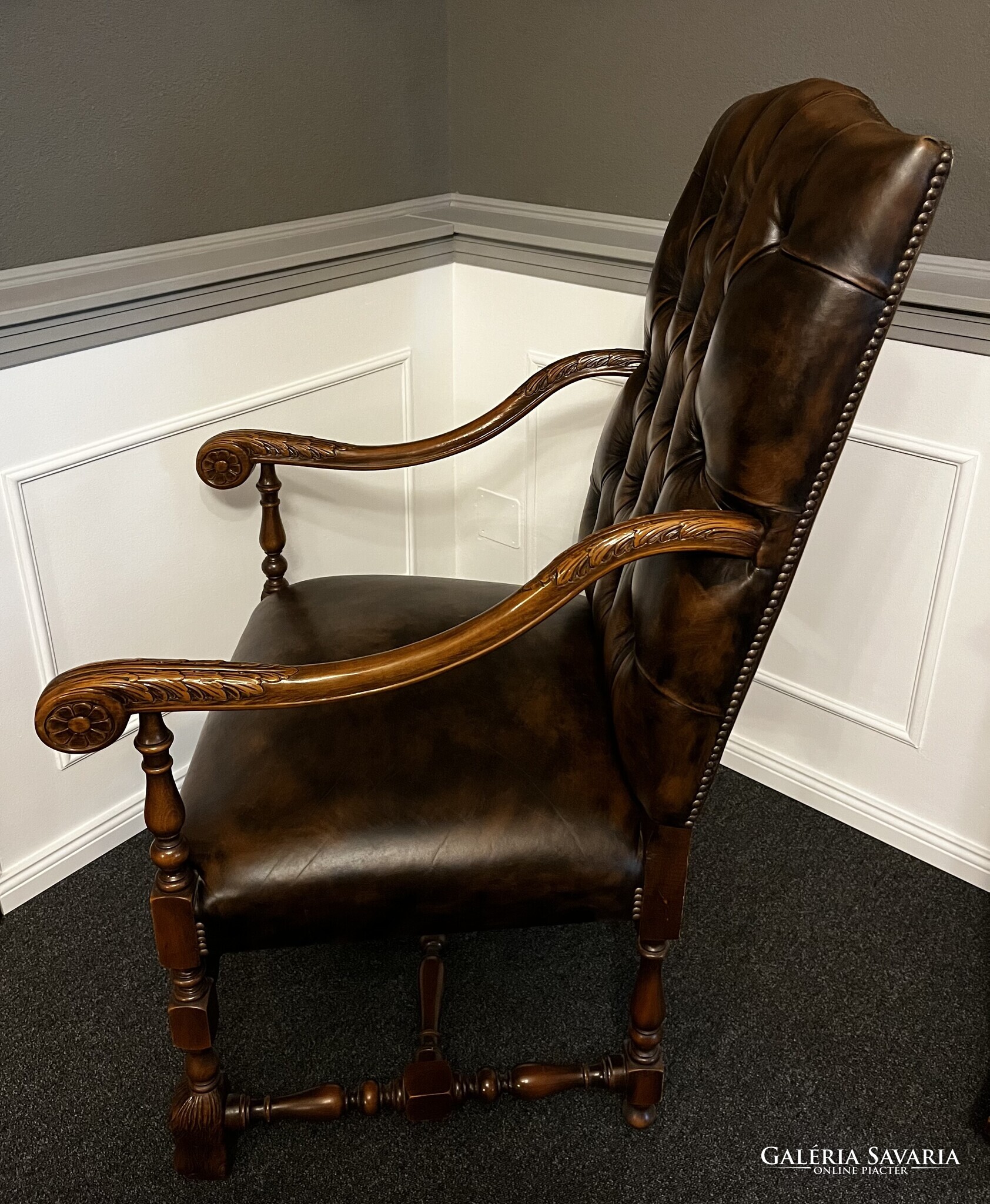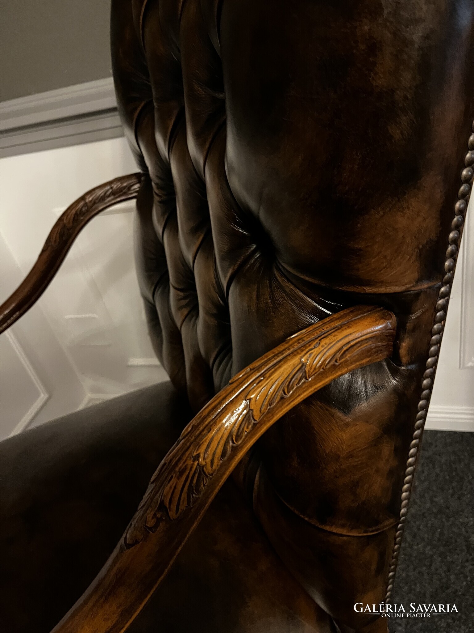 Gyönyörű , antik, neoreneszánsz, bőr fotel -karosszék- trónszèk !