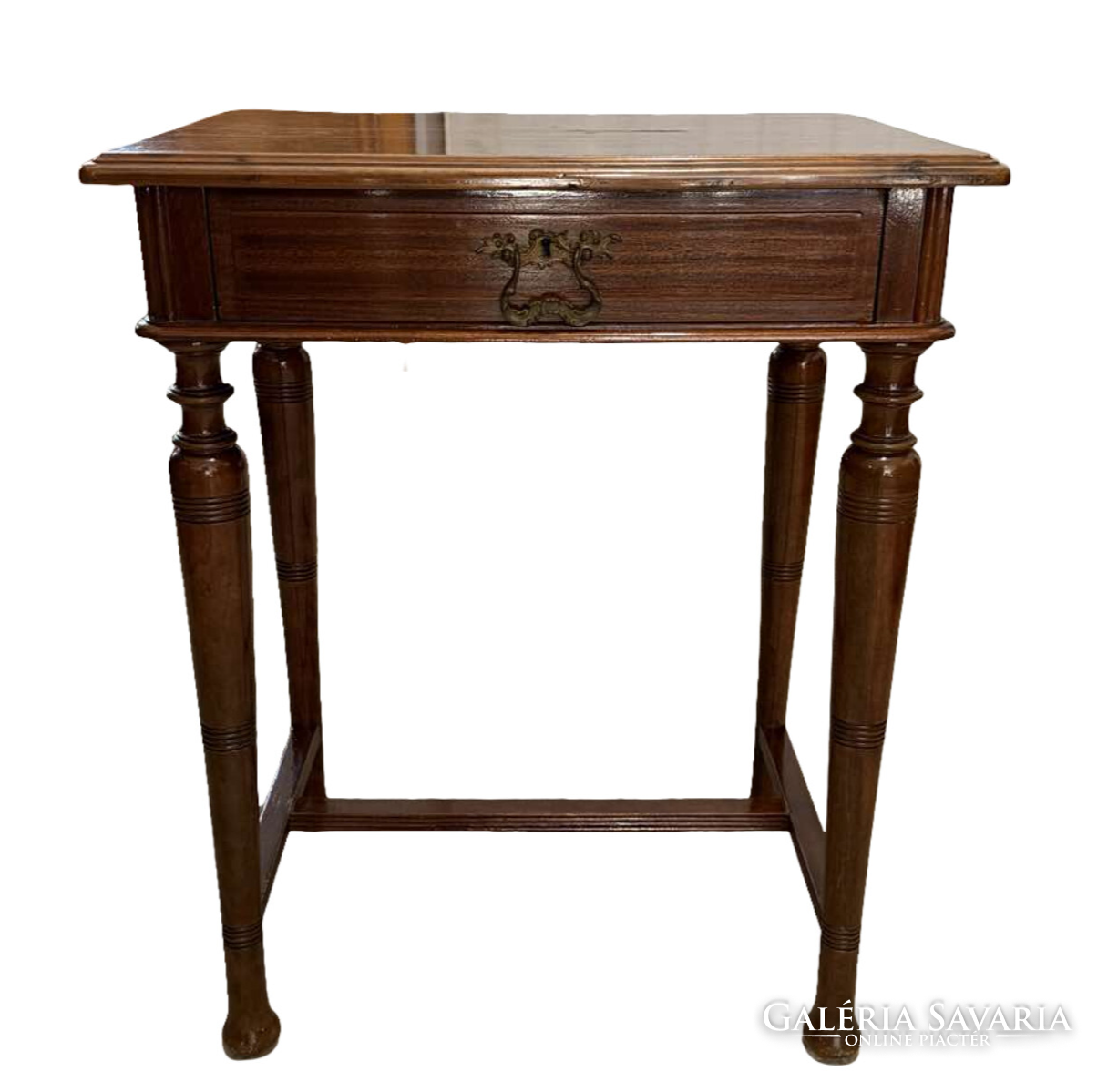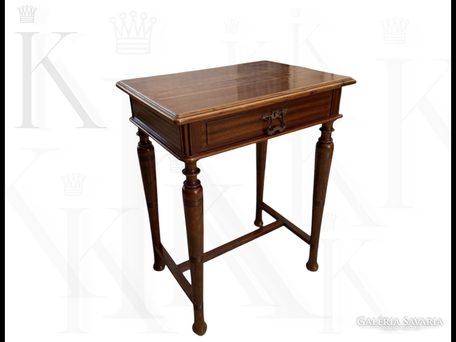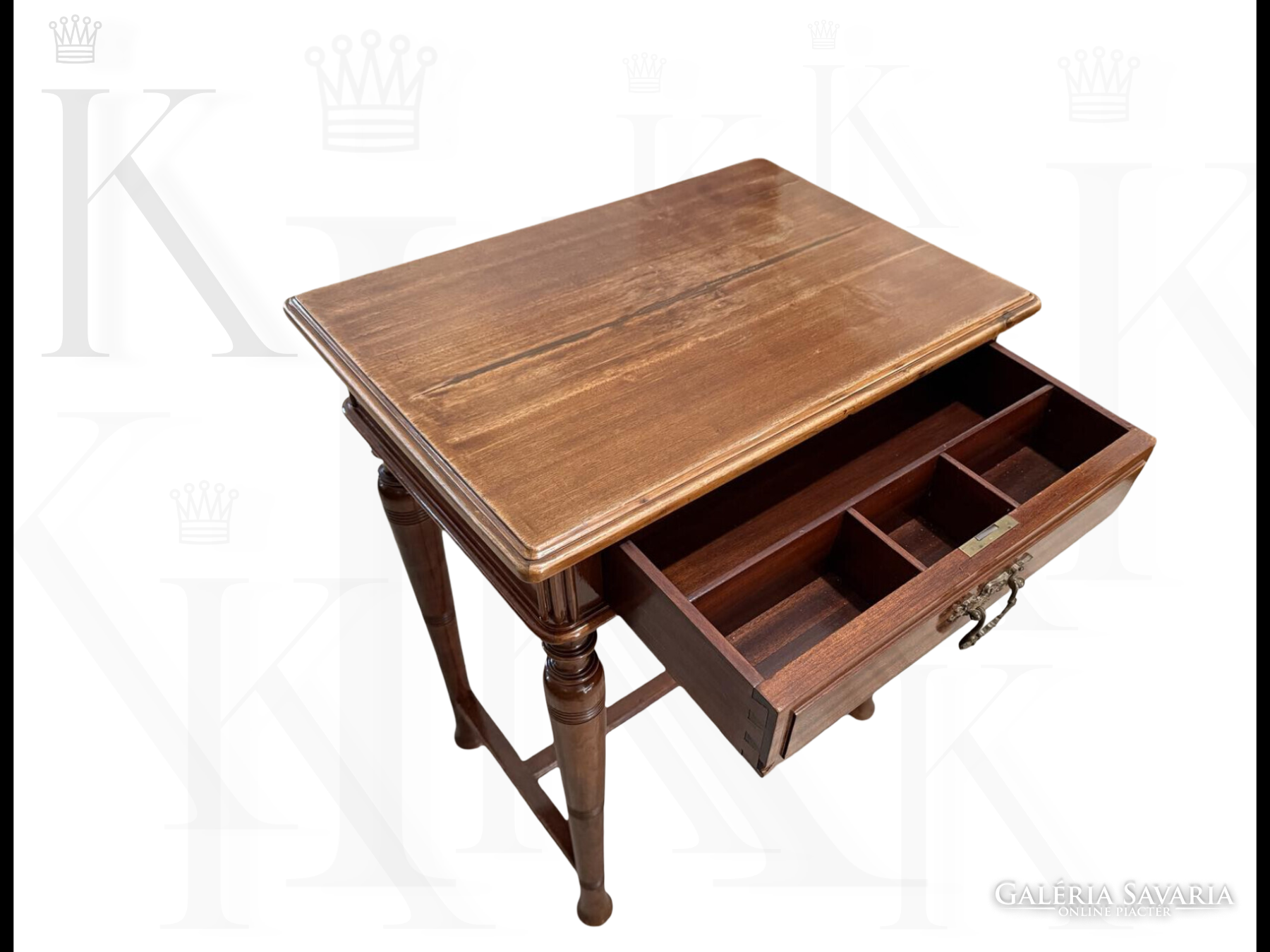 Antik egy fiókos téglalap alakú konzolasztal, lerakó -, vagy varróasztal