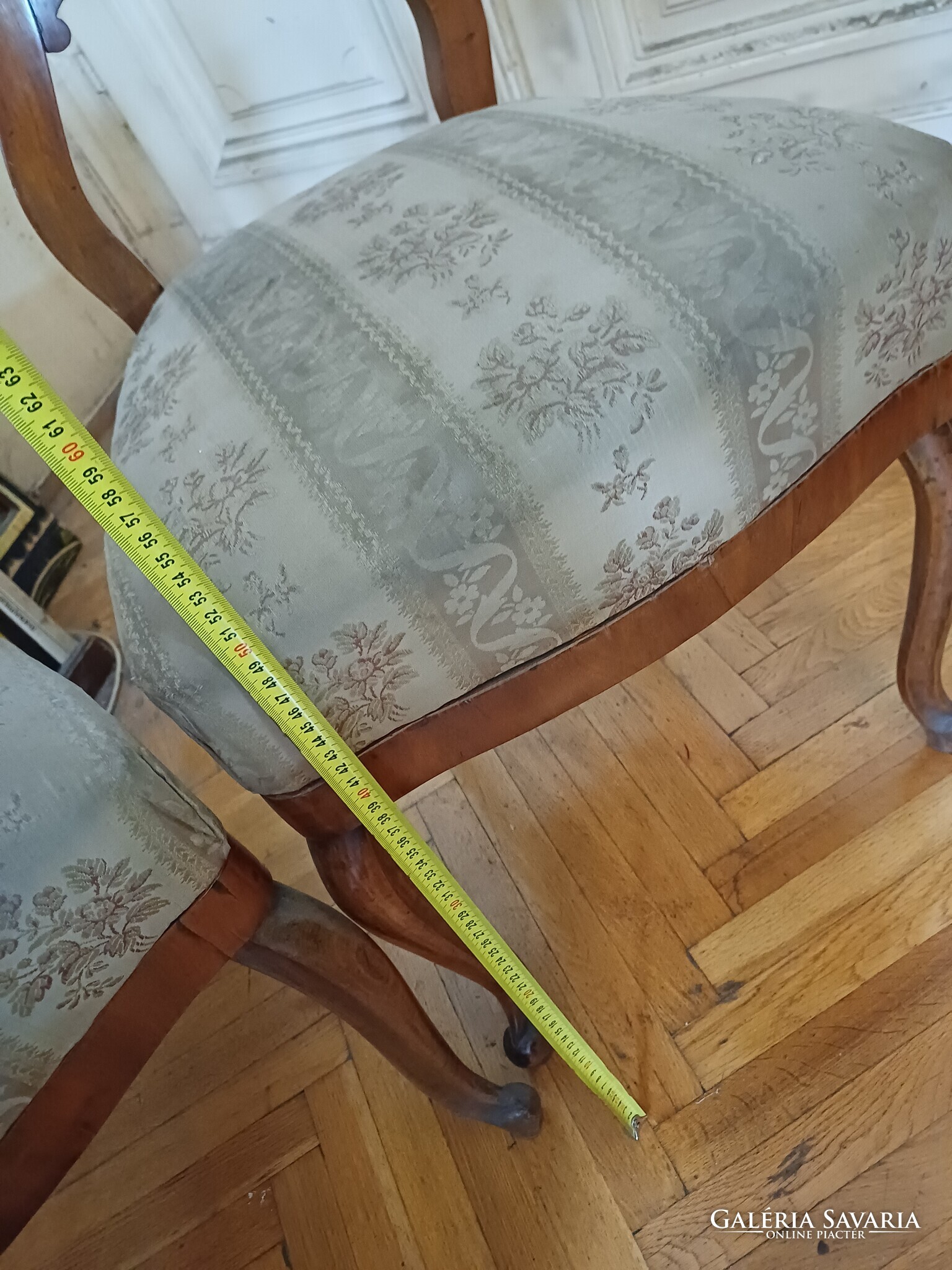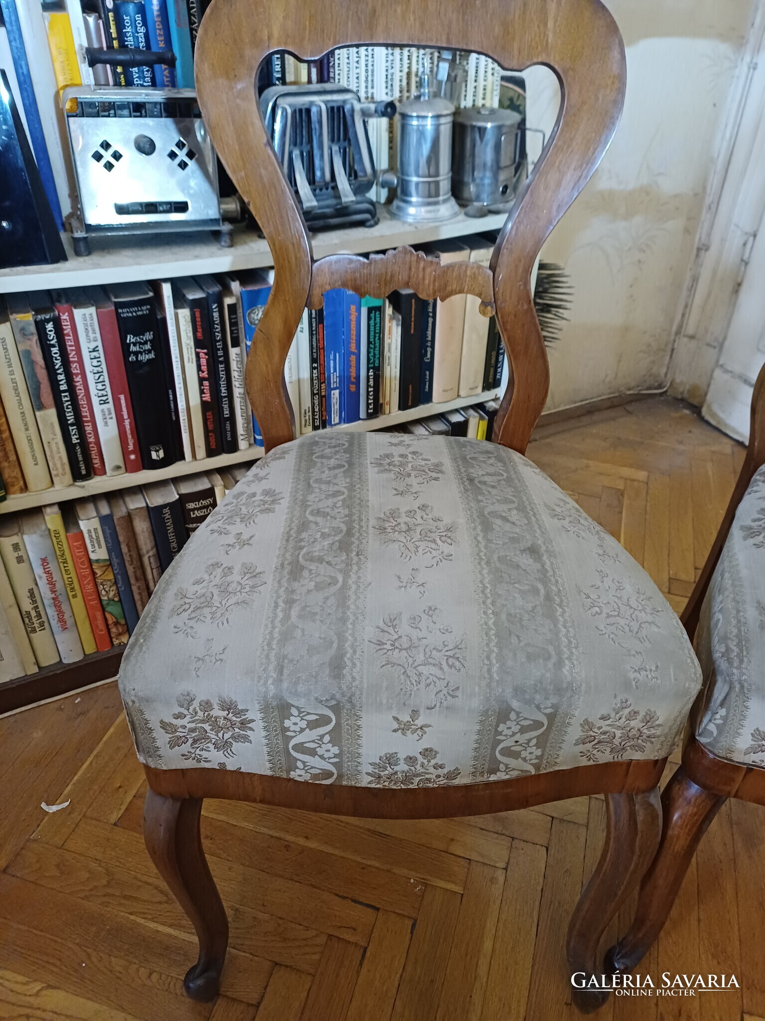 Eladó egy pár régi szék, kecses, ívelt (kabriole) lábakkal. Faanyag valószínűleg dió/gyümölcsfa, szép rajzolat.