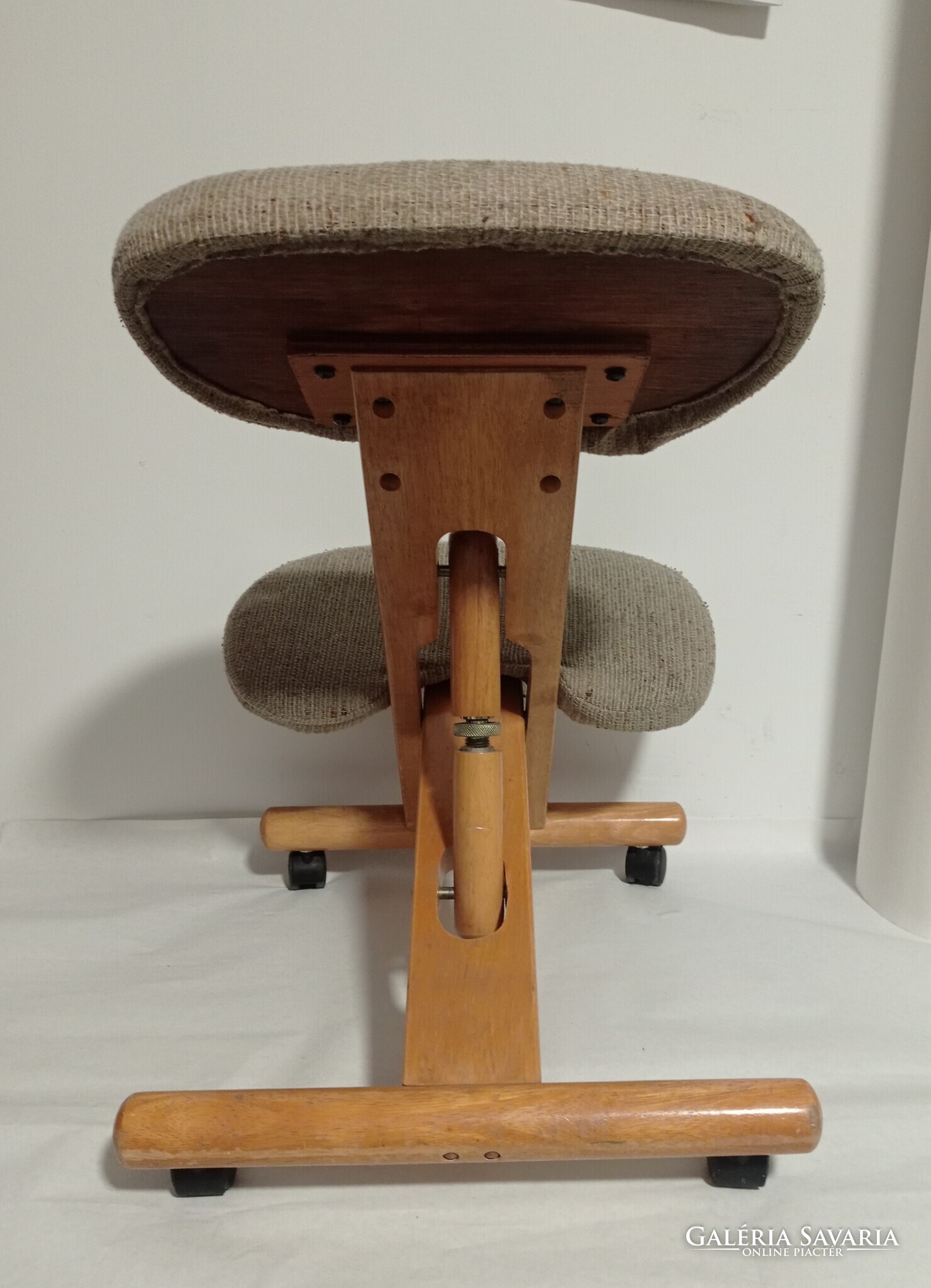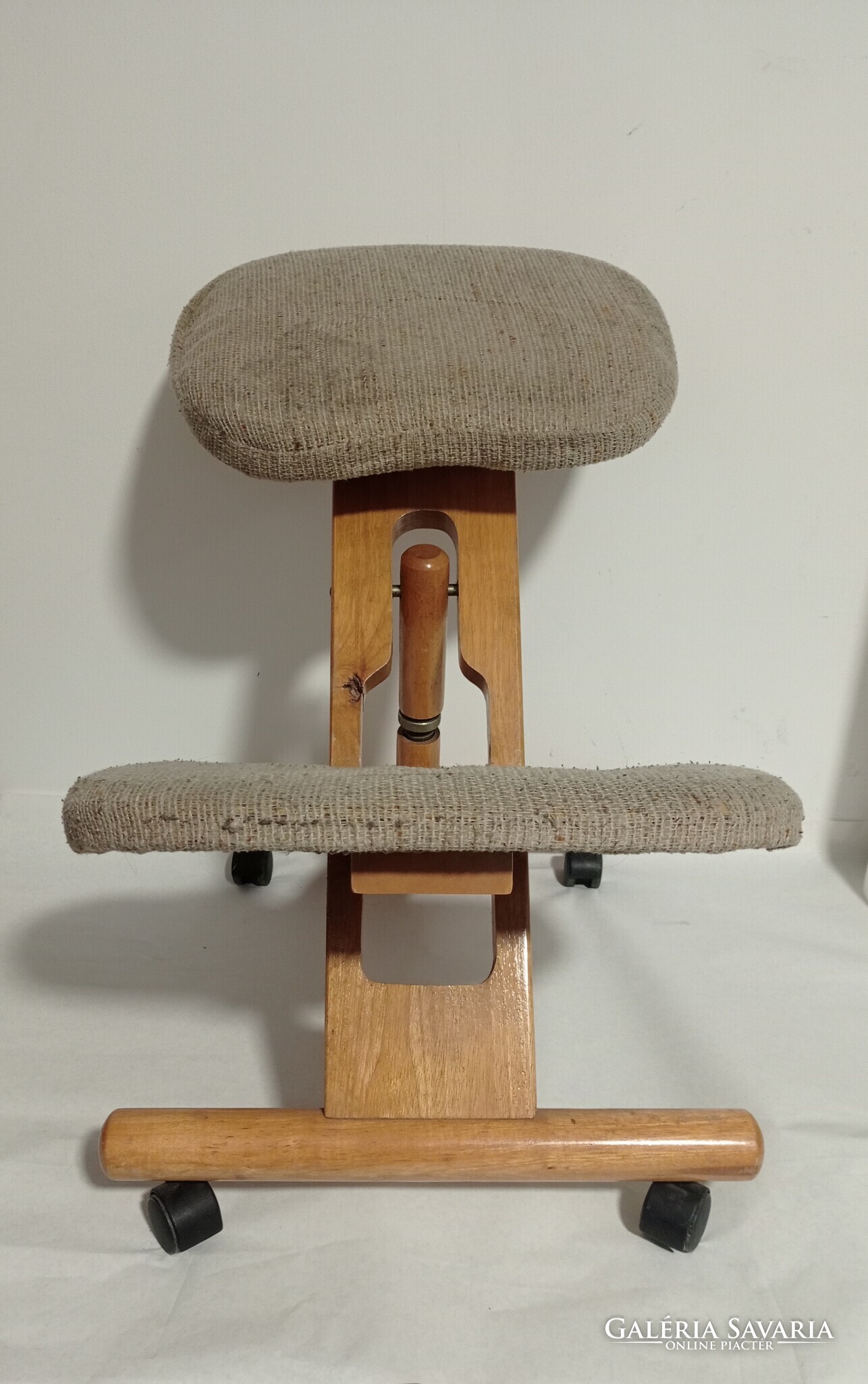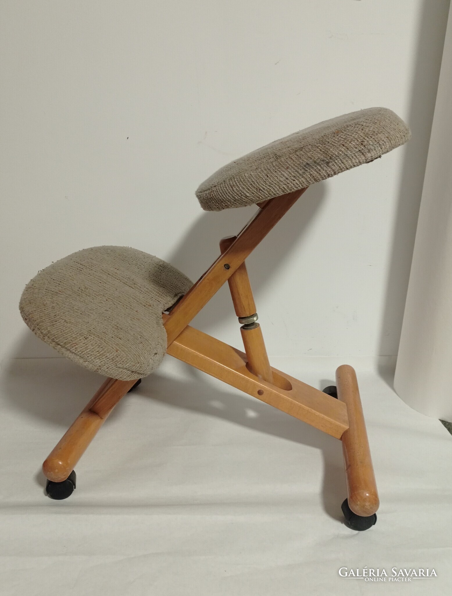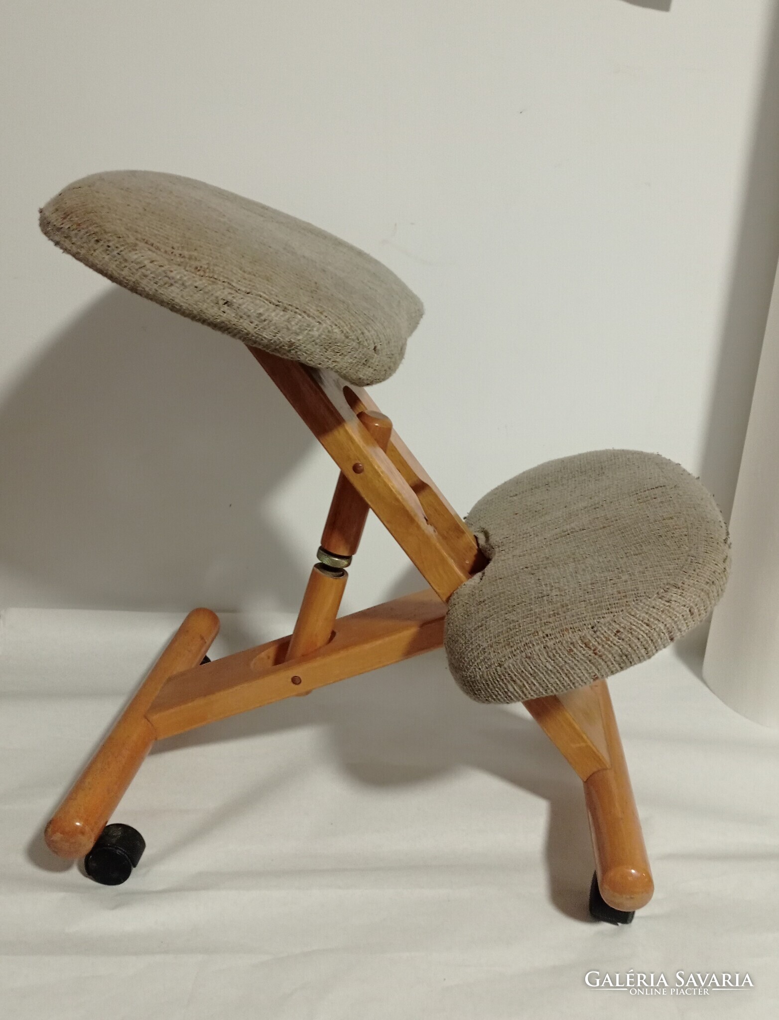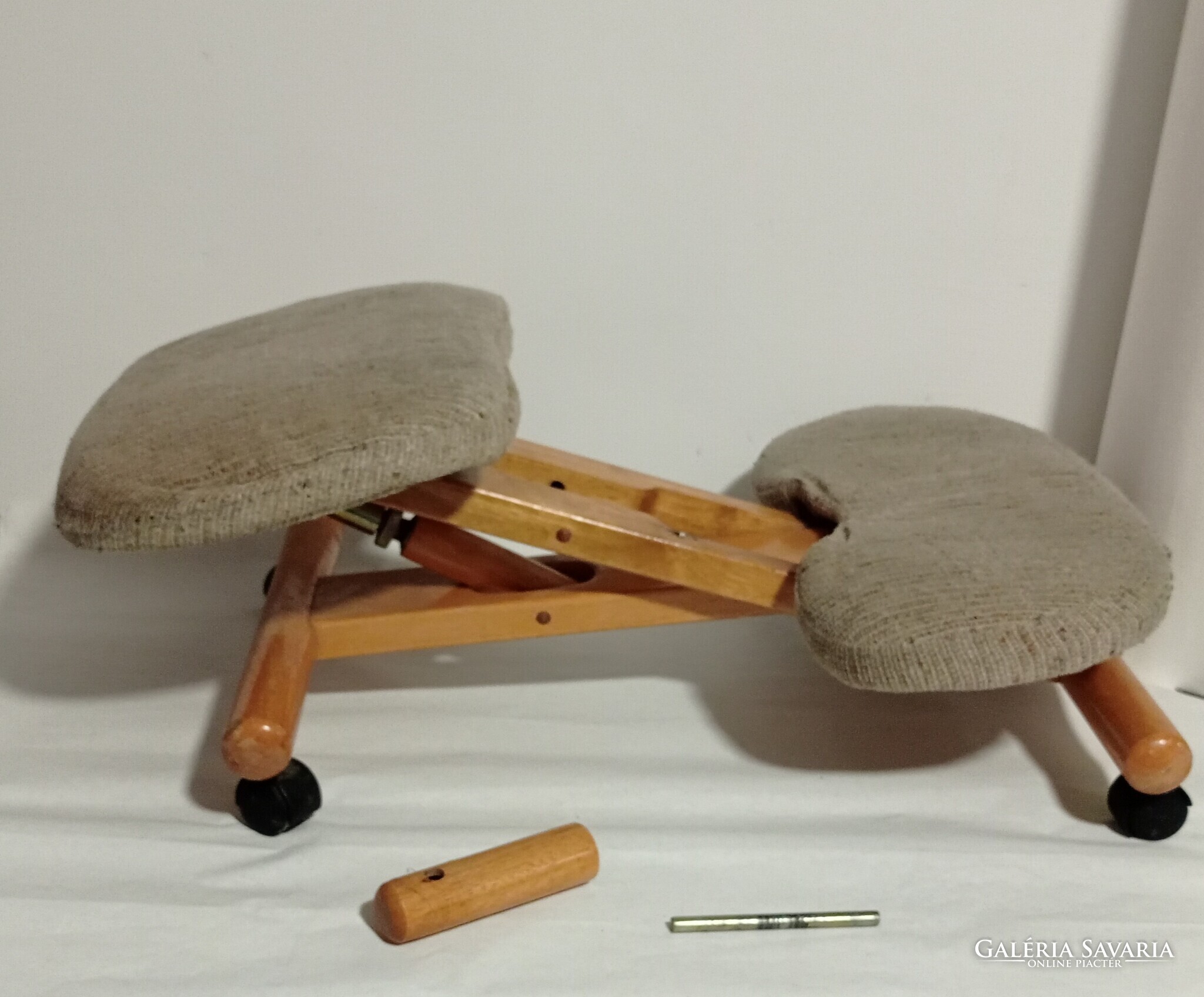 Eladó a képeken látható térdelő szék. Töltöttem fotót a használatáról. Egészséges tartást biztosít. Nem mellesleg kényelmes is és egy kárpit csere után igazán különleges, mutatós darab lehet.