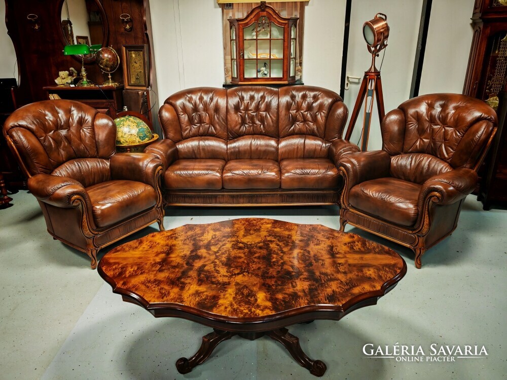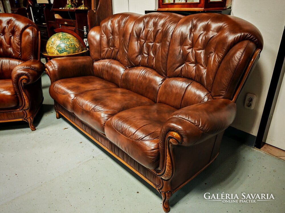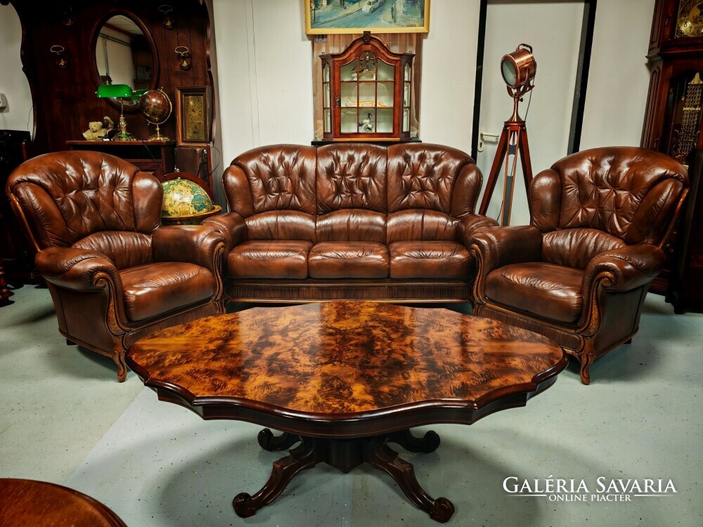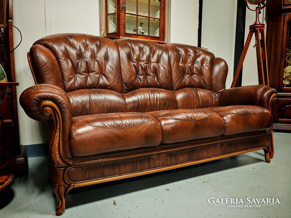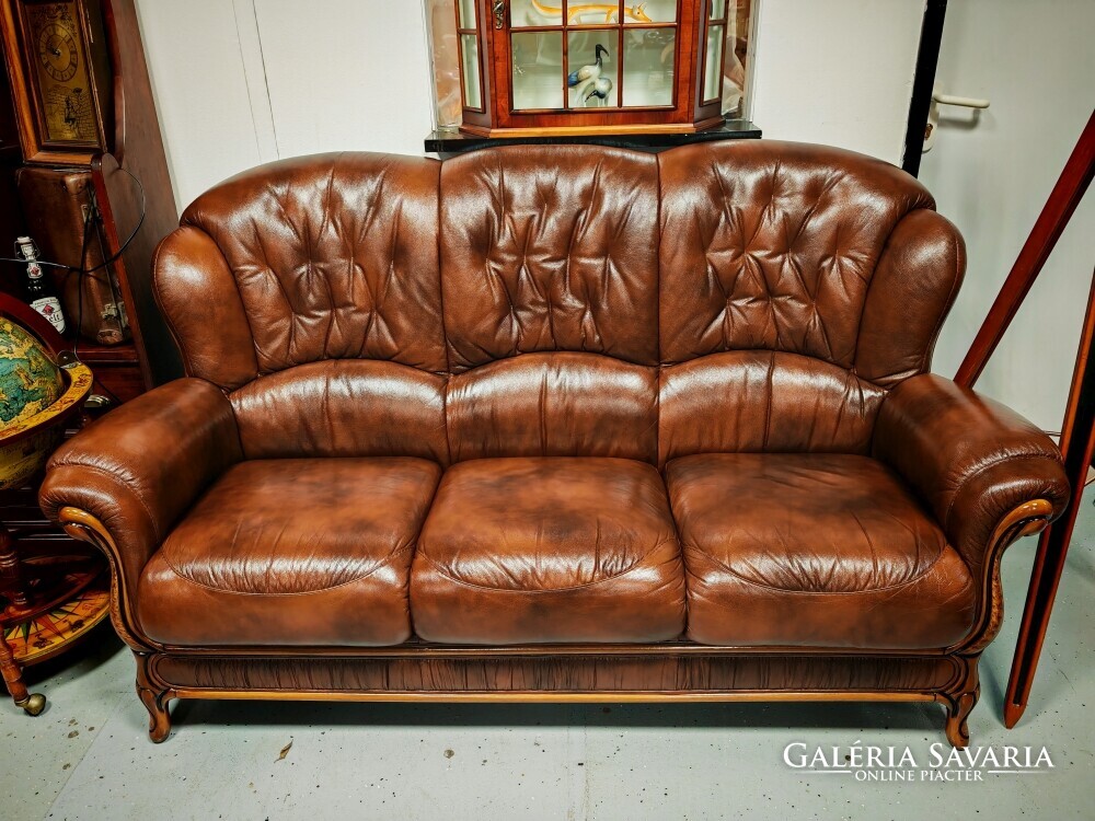 Antikolt barna olasz valódi bőr ülőgarnitúra , 3 személyes bőr kanapé + 2 fotel újszerű állapotban