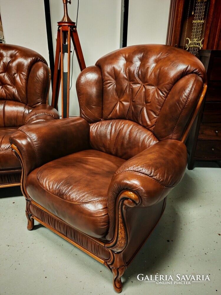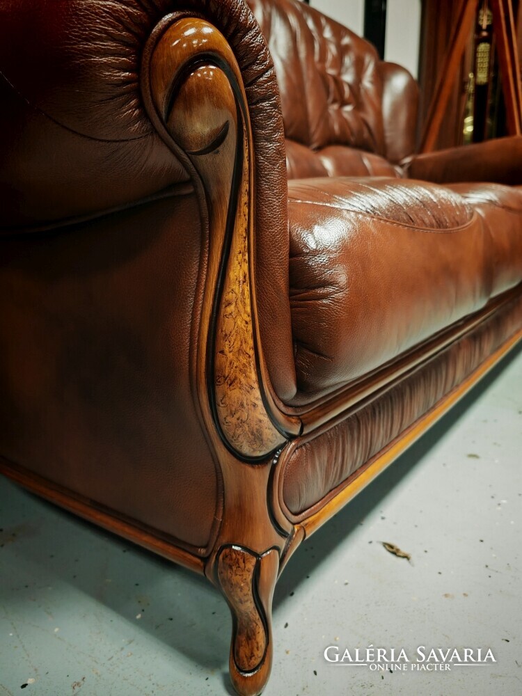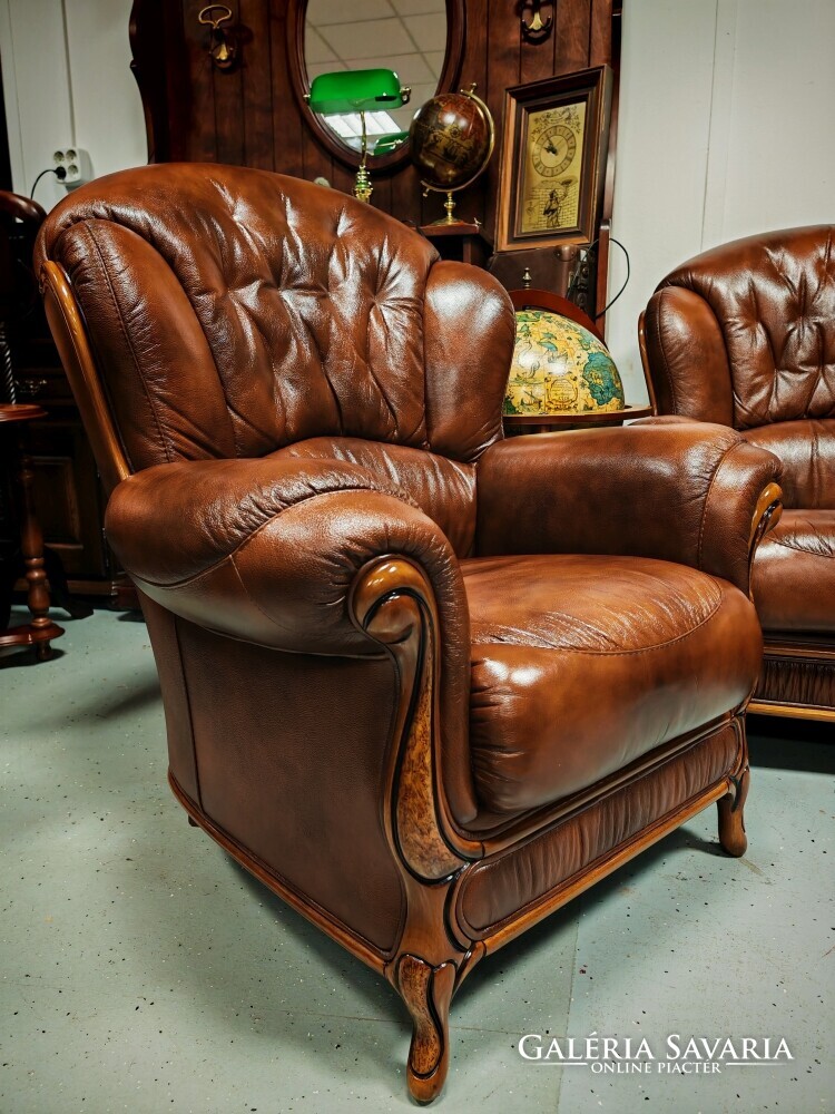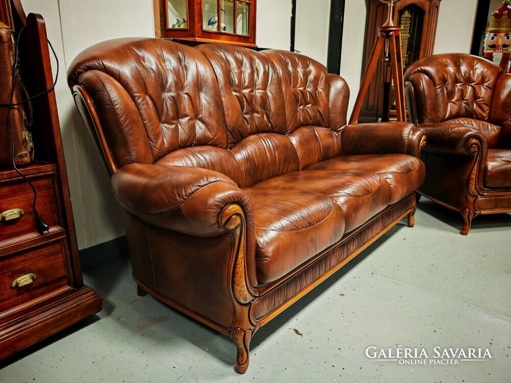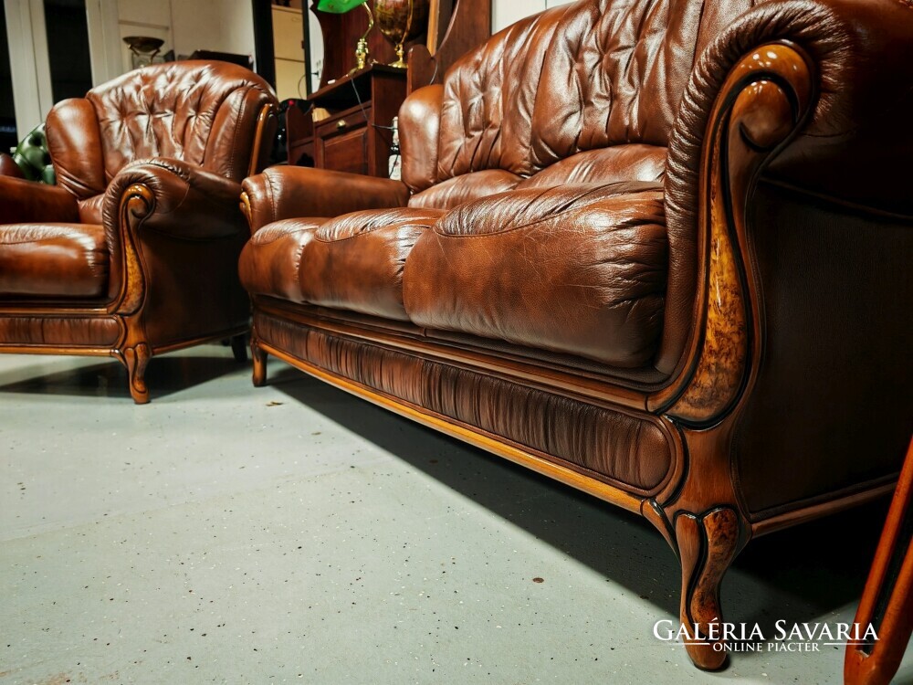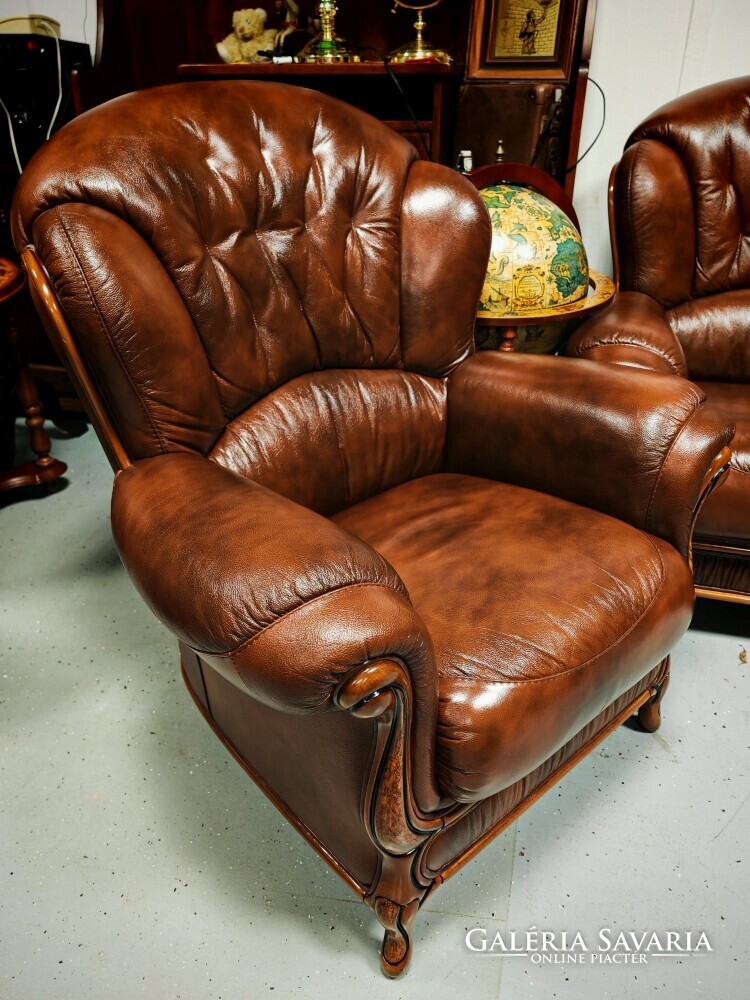 Antikolt barna olasz valódi bőr ülőgarnitúra , 3 személyes bőr kanapé + 2 fotel újszerű állapotban