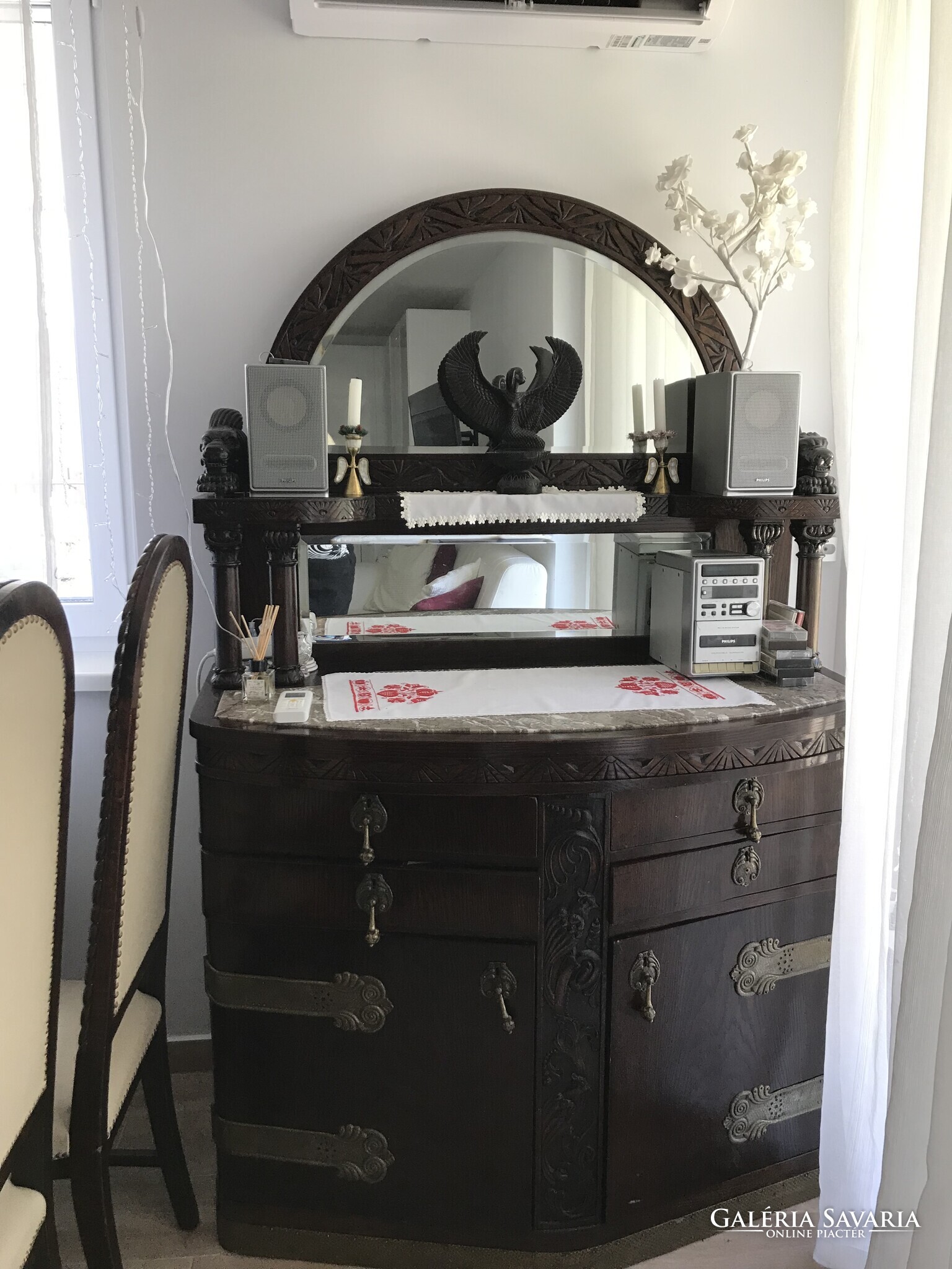 Nagy tálaló,kis tálaló,nyitható nagyméretű asztal,6 bőrbevonatú szék