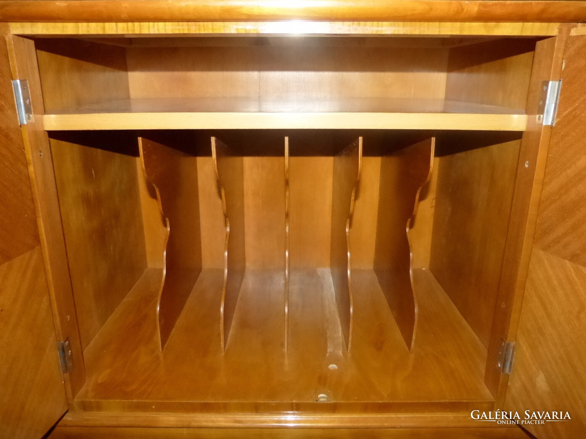 A tetejére gramofon vagy lemezjátszó állítható.