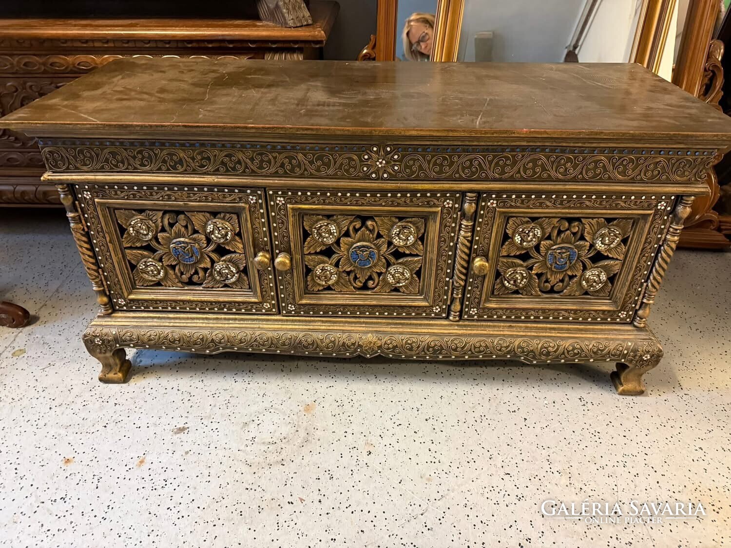 Ritka, kézzel faragott darab arany–bronz motívumokkal. Az áttört előlap gyönyörű fény-árnyék játékot ad, így bármely otthon exkluzív díszévé válik.