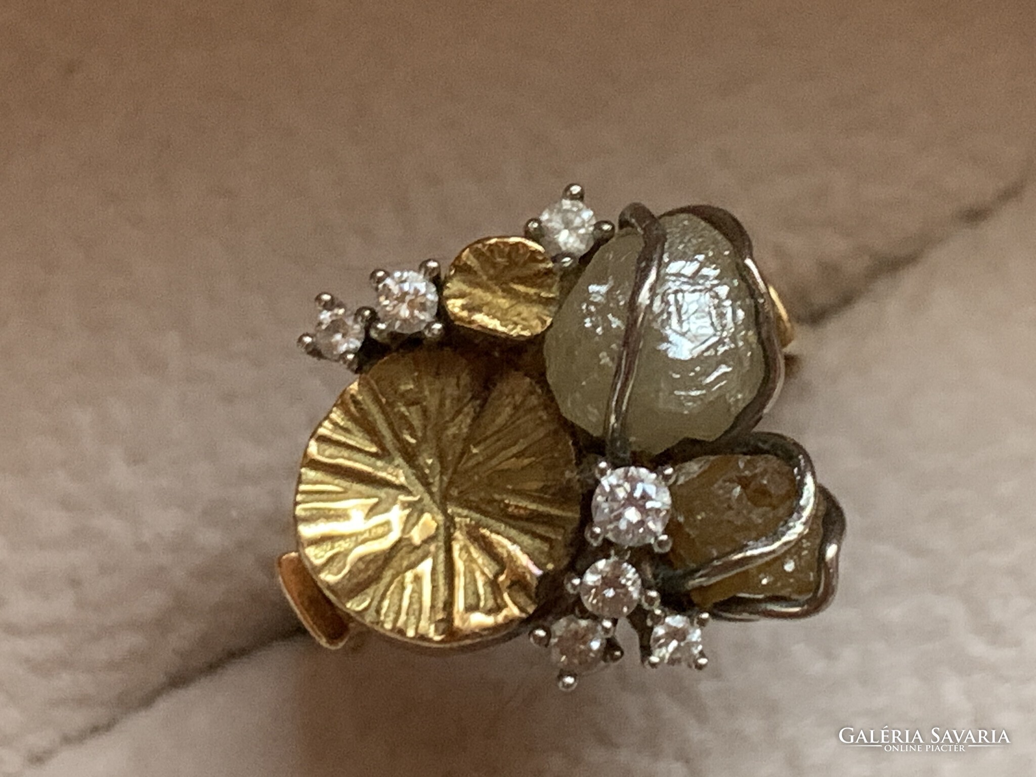 Gyönyörű modern ötvös gyűrűm kerül eladásra gyémántokkal és nyers gyémántokkal.