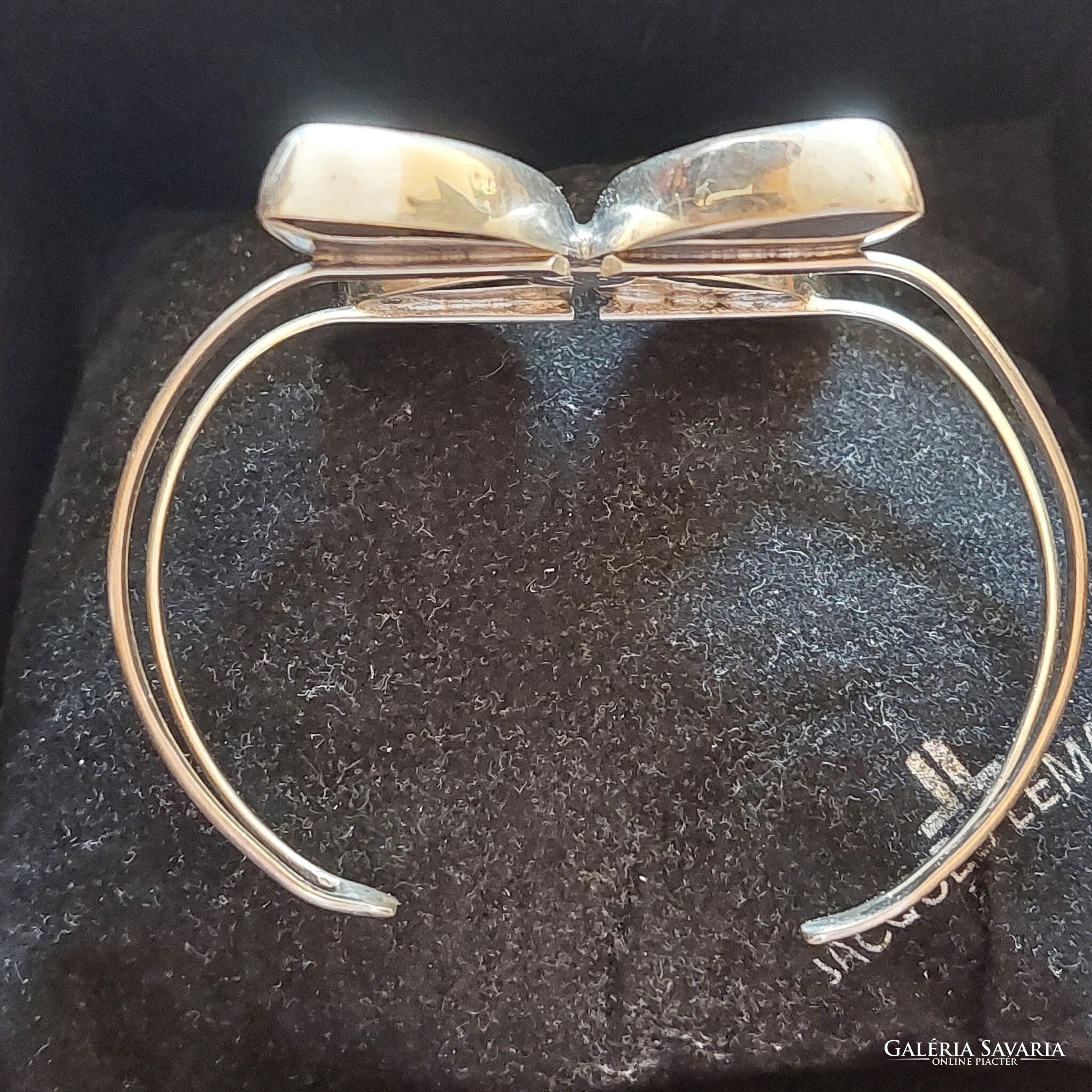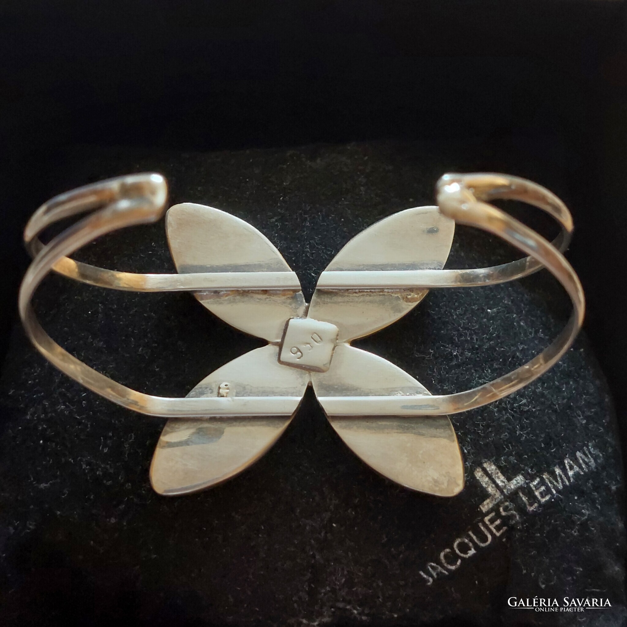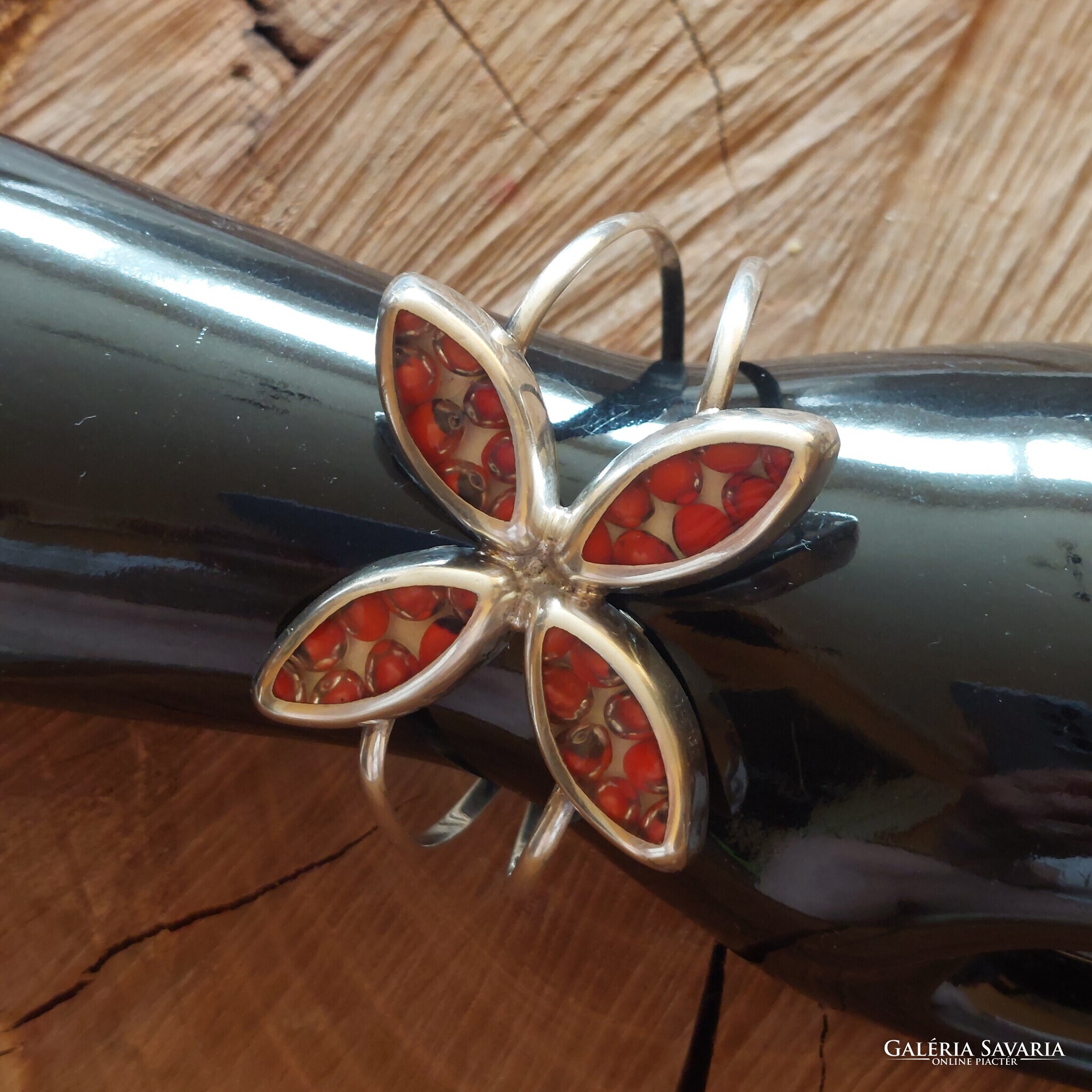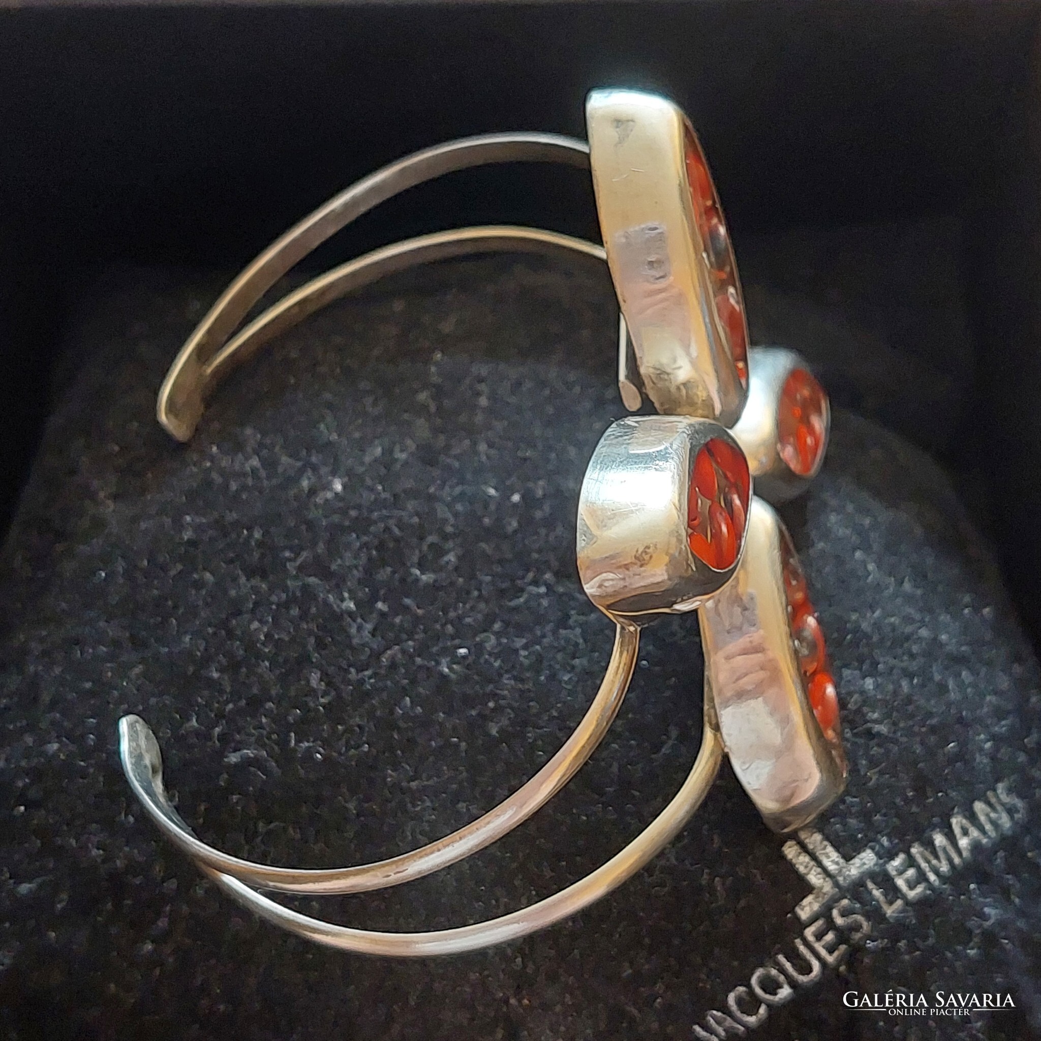 Csodás virág formájú ezüst karperec piros bogyókkal, nyitott