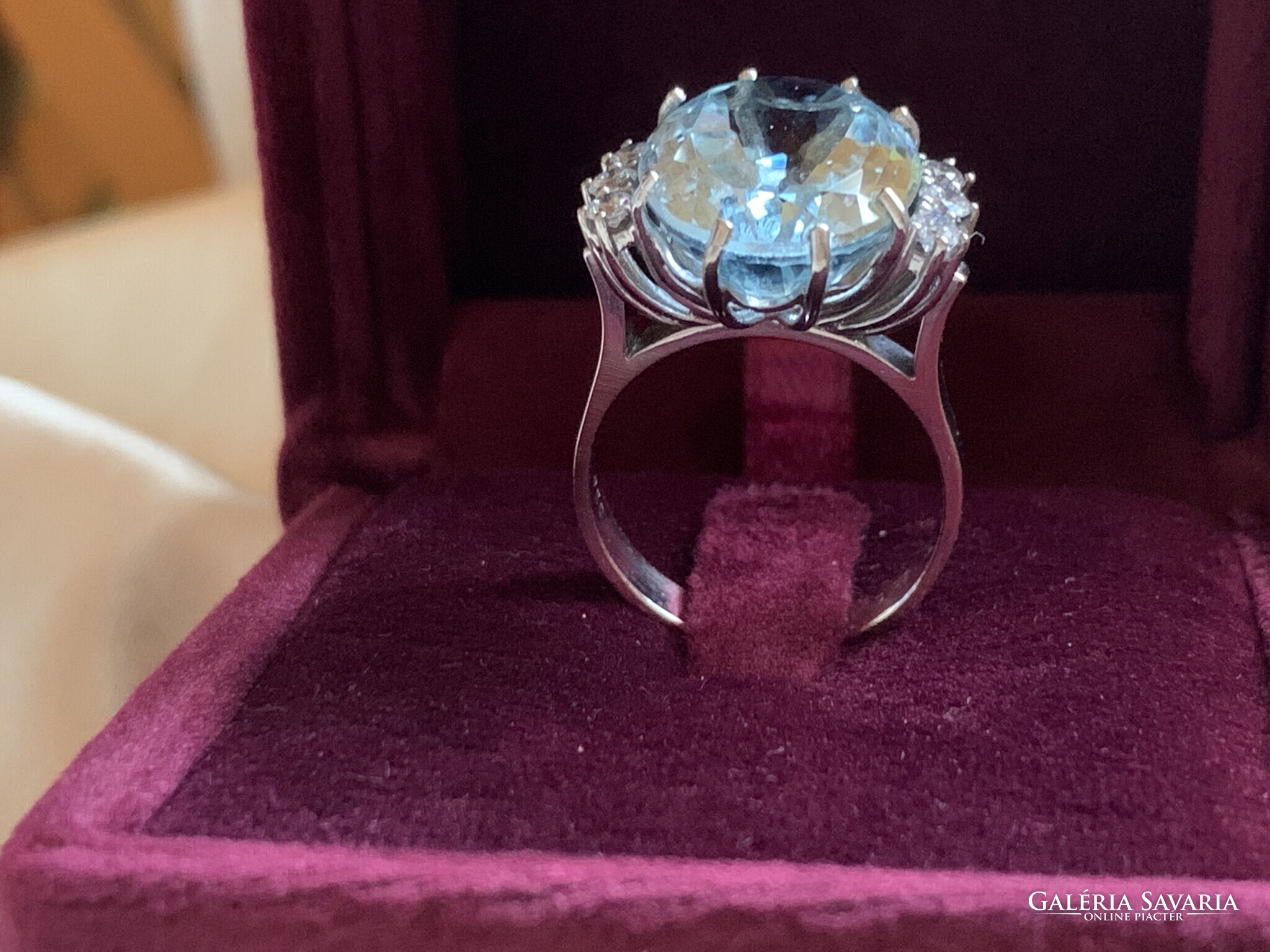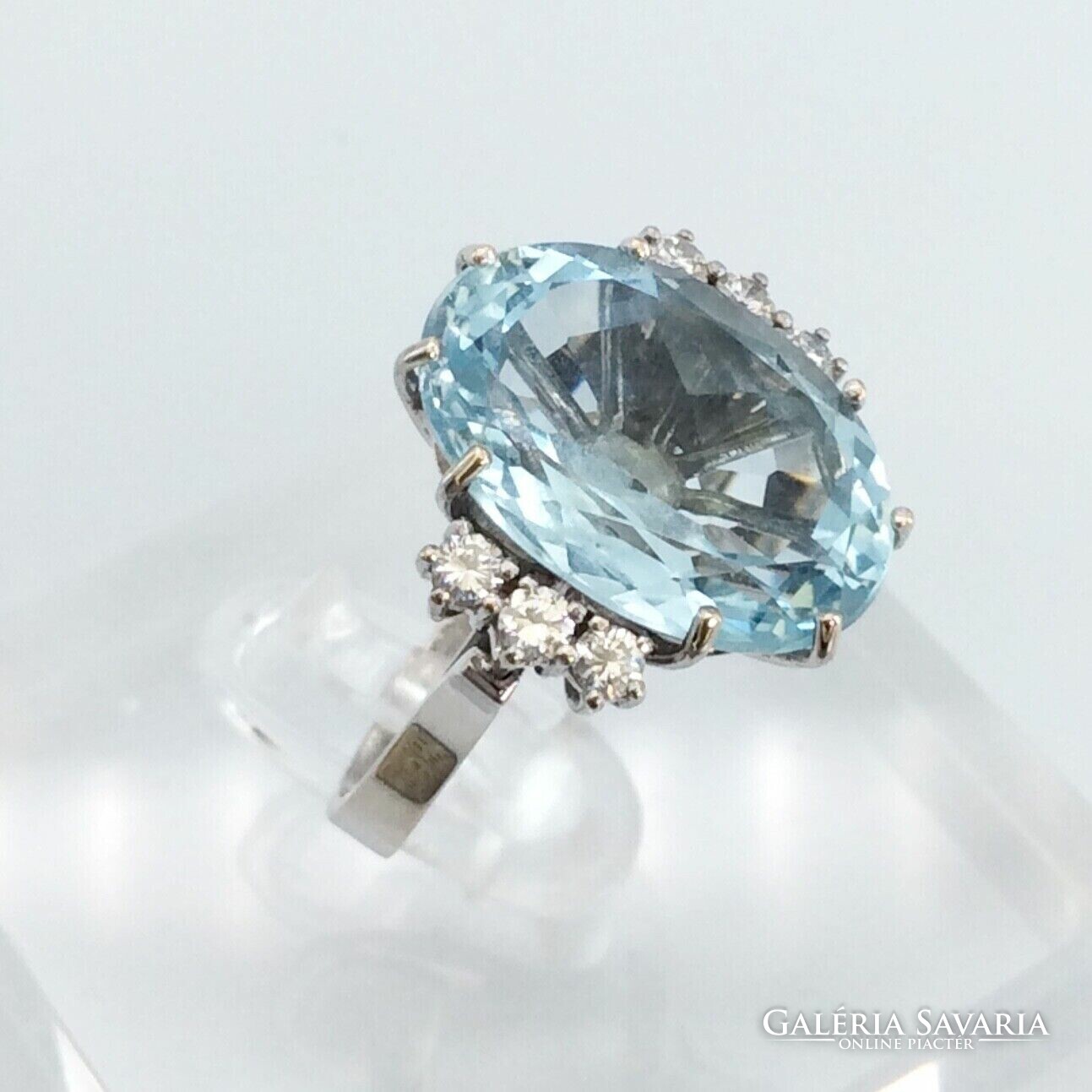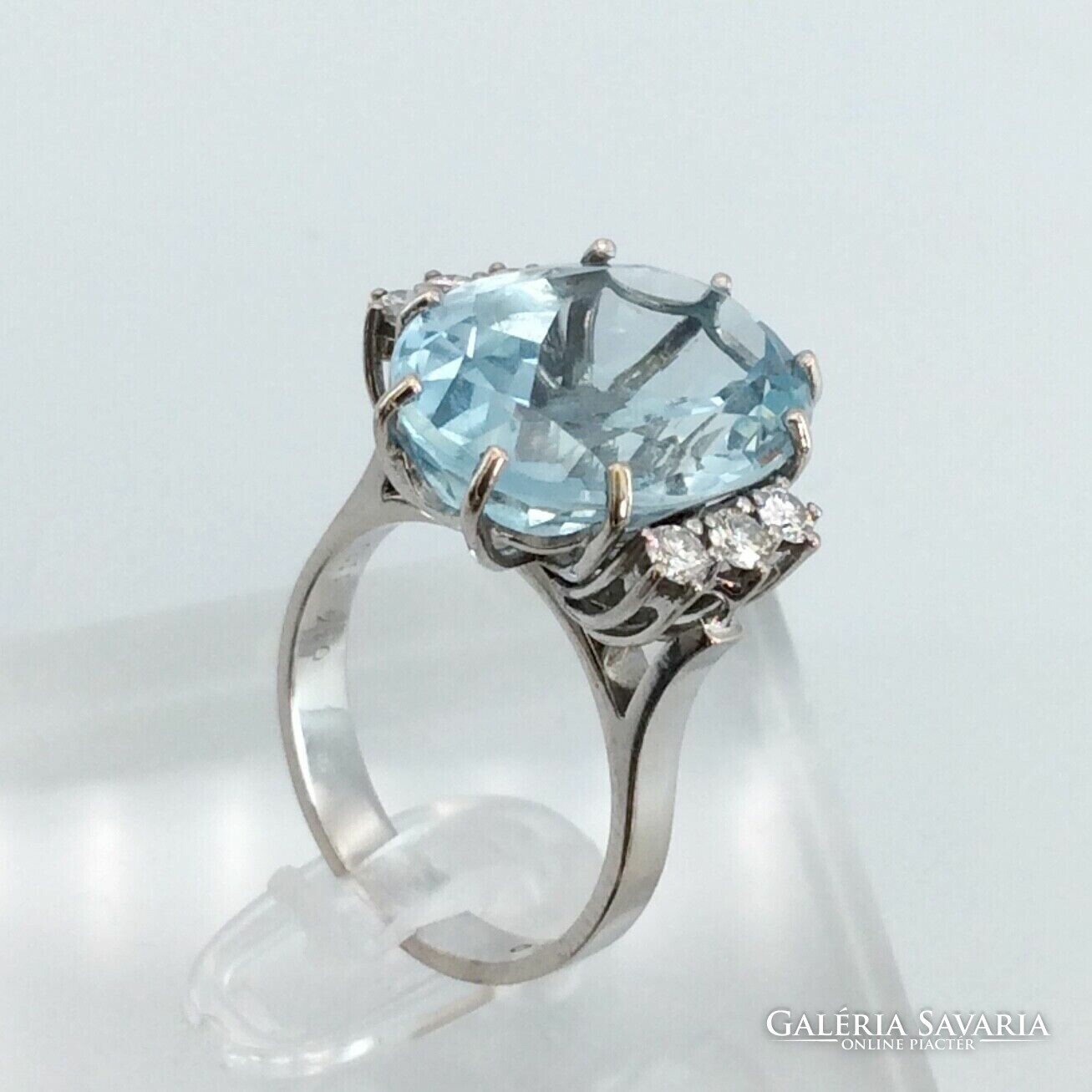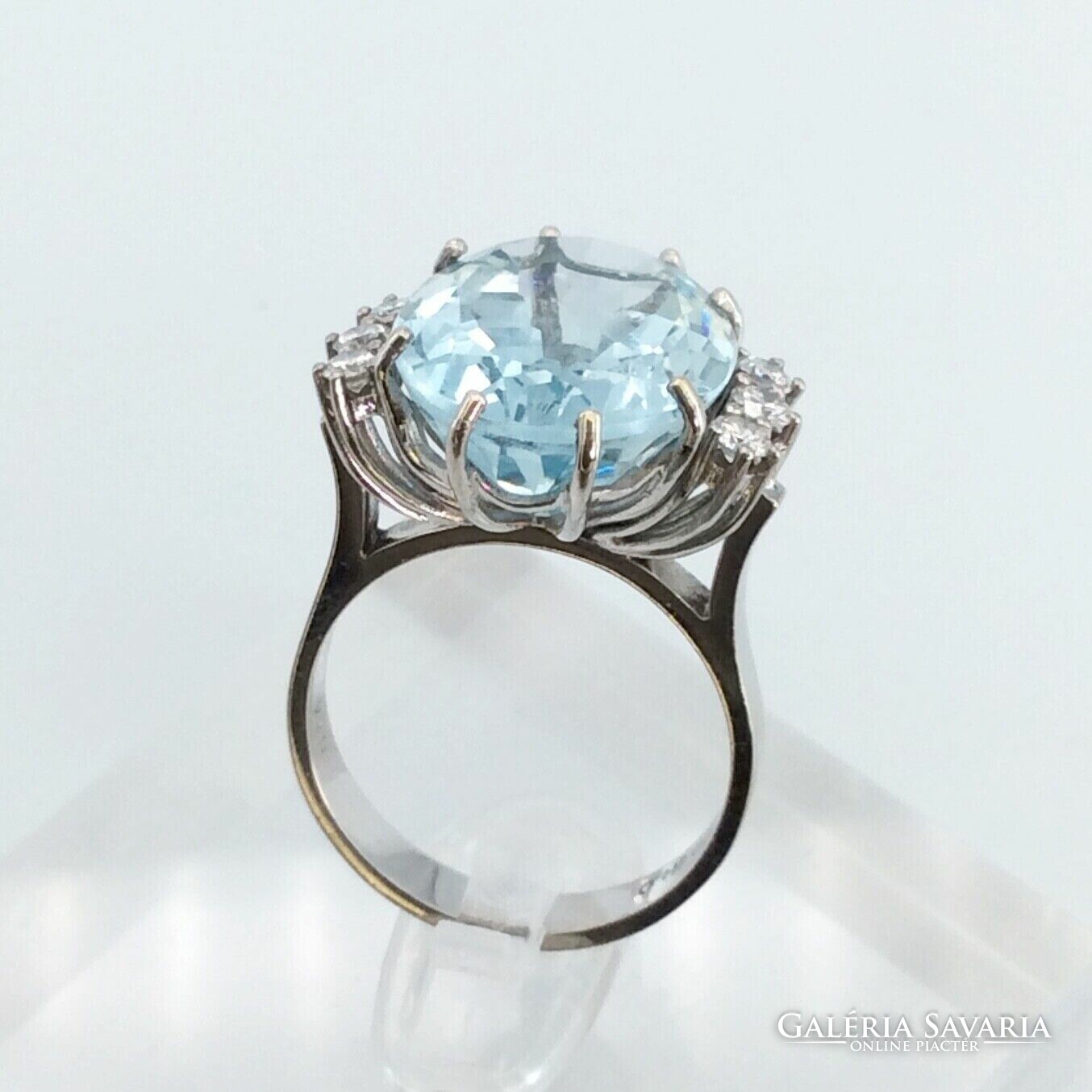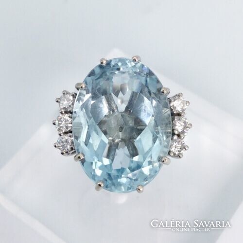 10.60 ct Akvamarin "Blue Ice“ gyémántokkal 18 karátos arany gyűrű