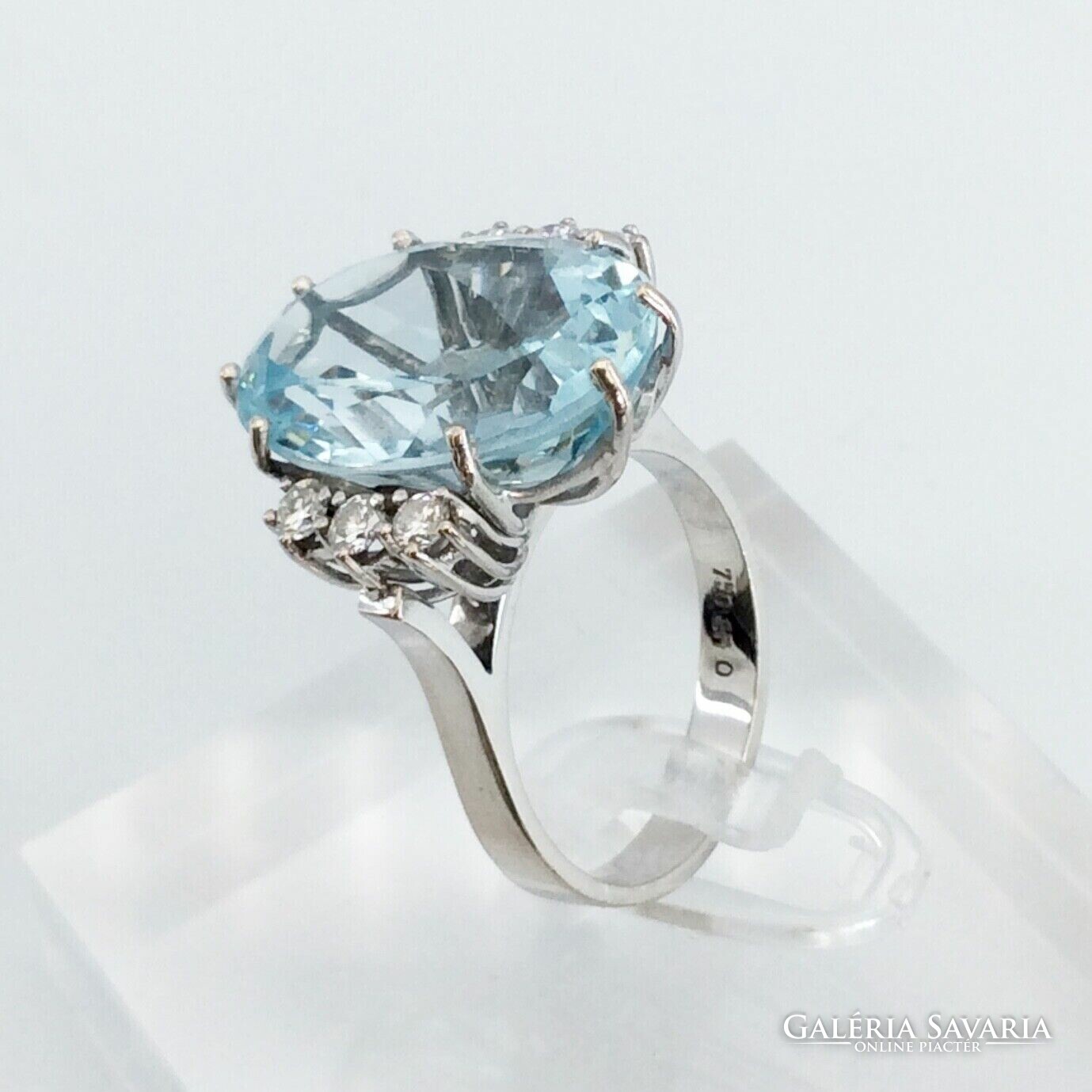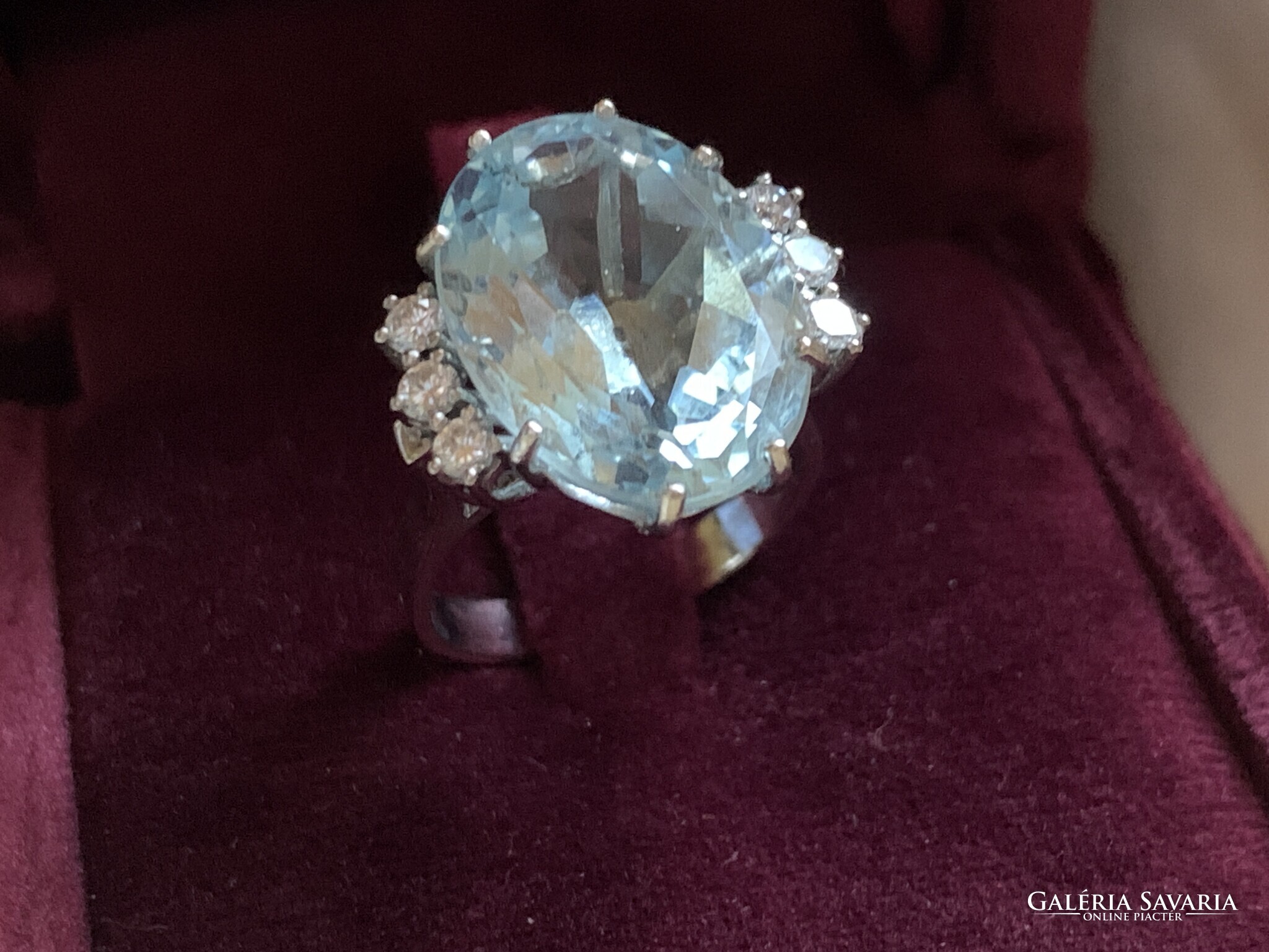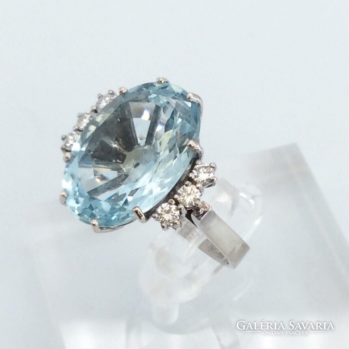 10.60 ct Akvamarin "Blue Ice“ gyémántokkal 18 karátos arany gyűrű