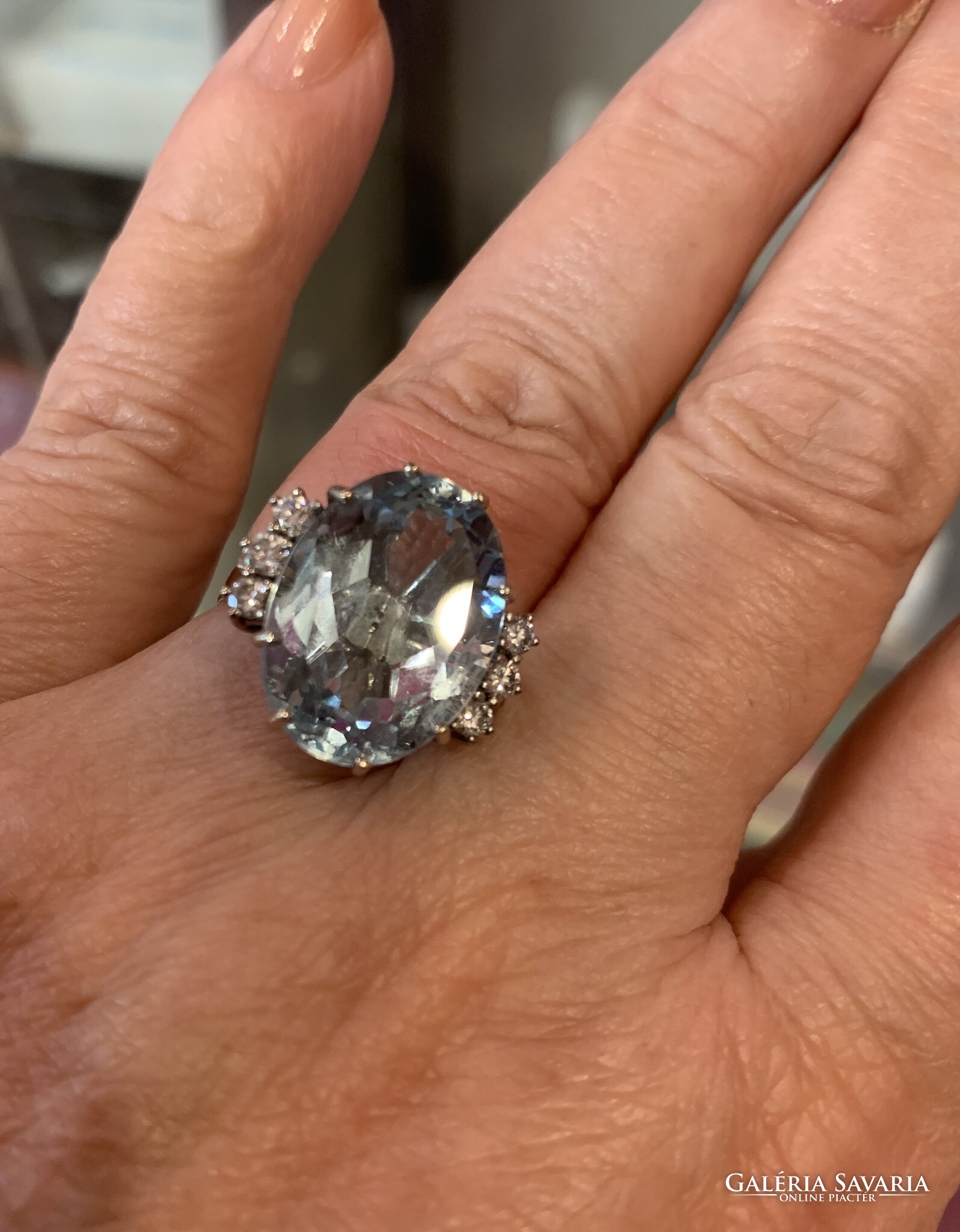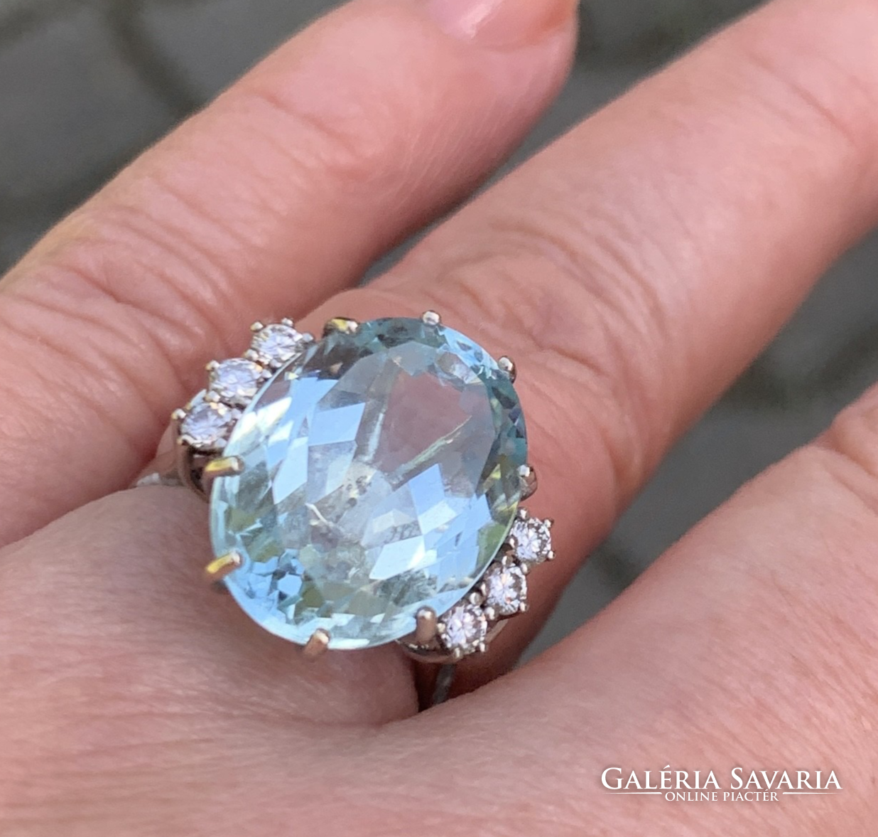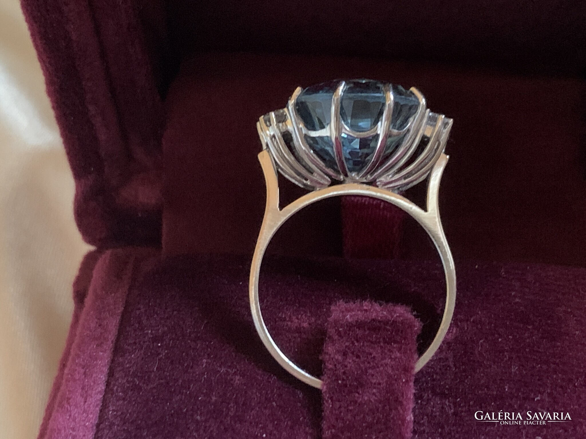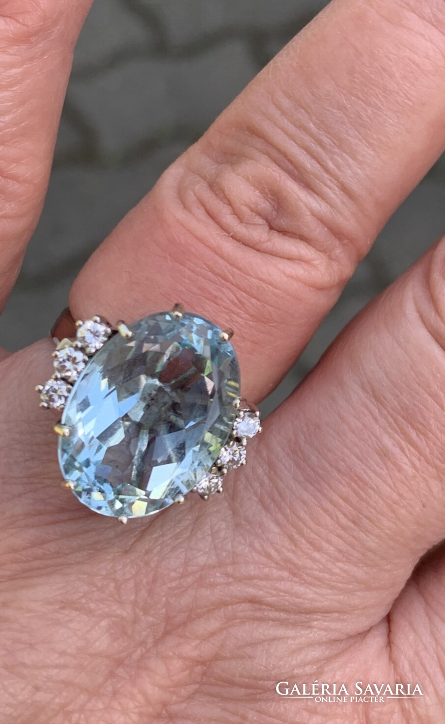 10.60 ct Akvamarin "Blue Ice“ gyémántokkal 18 karátos arany gyűrű