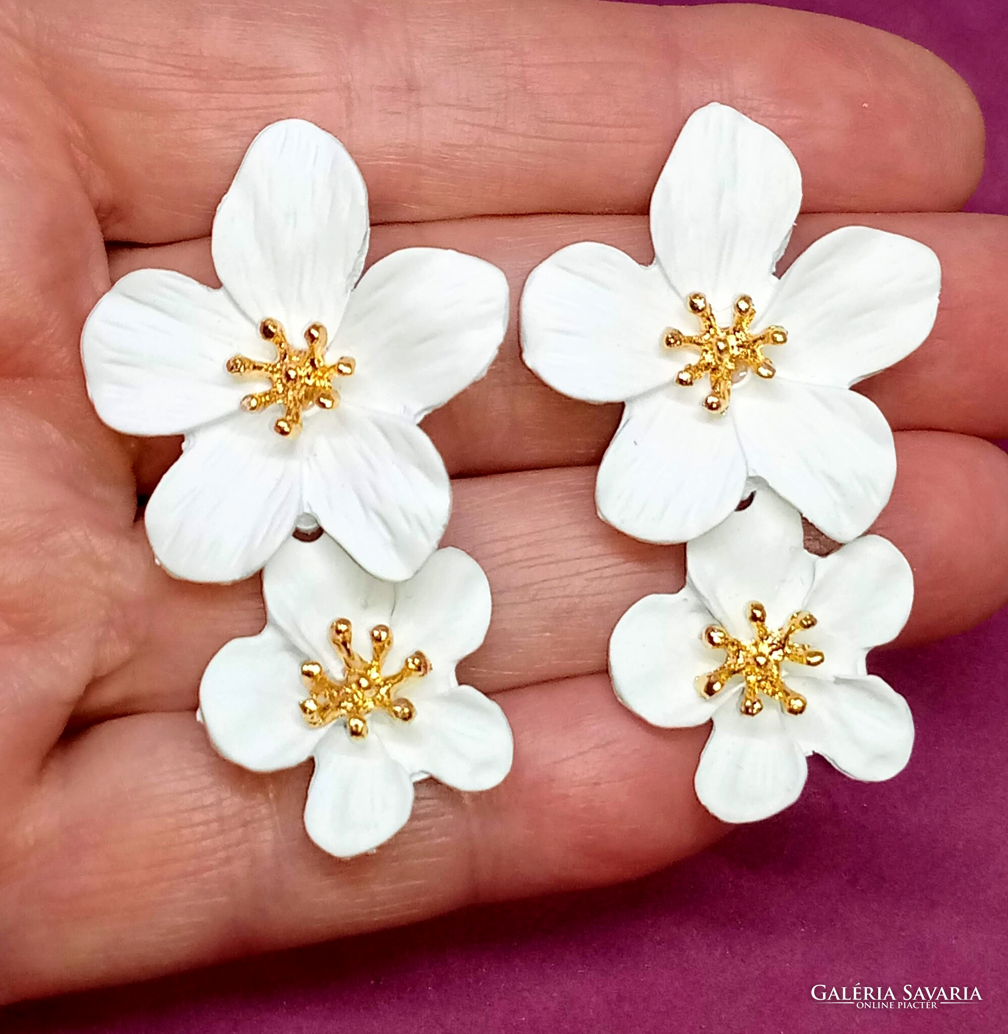 Barackfa virág fehér duplavirágos, festett fém fülbevaló