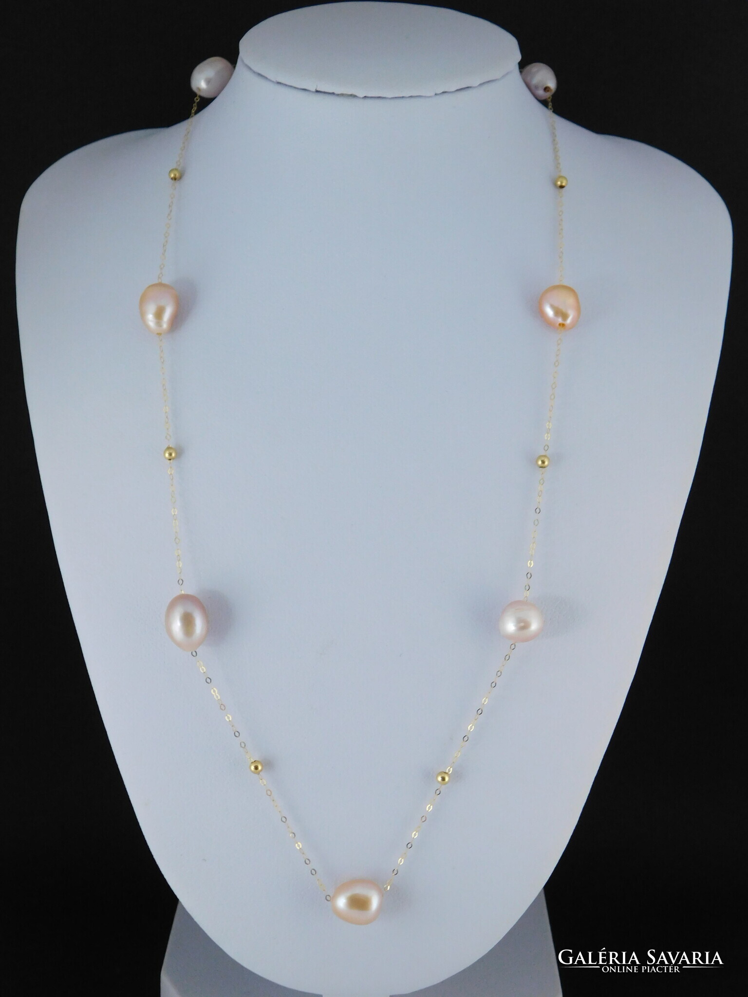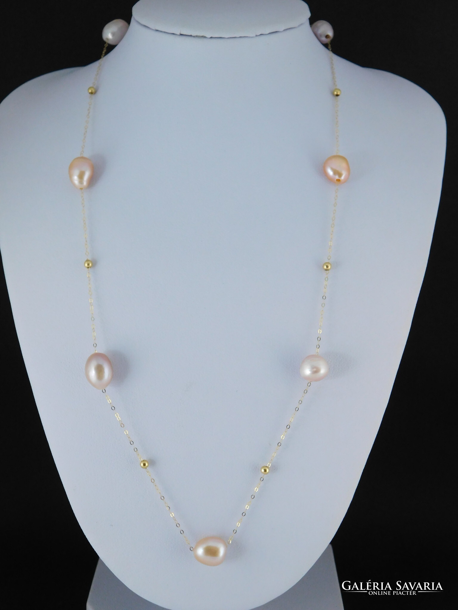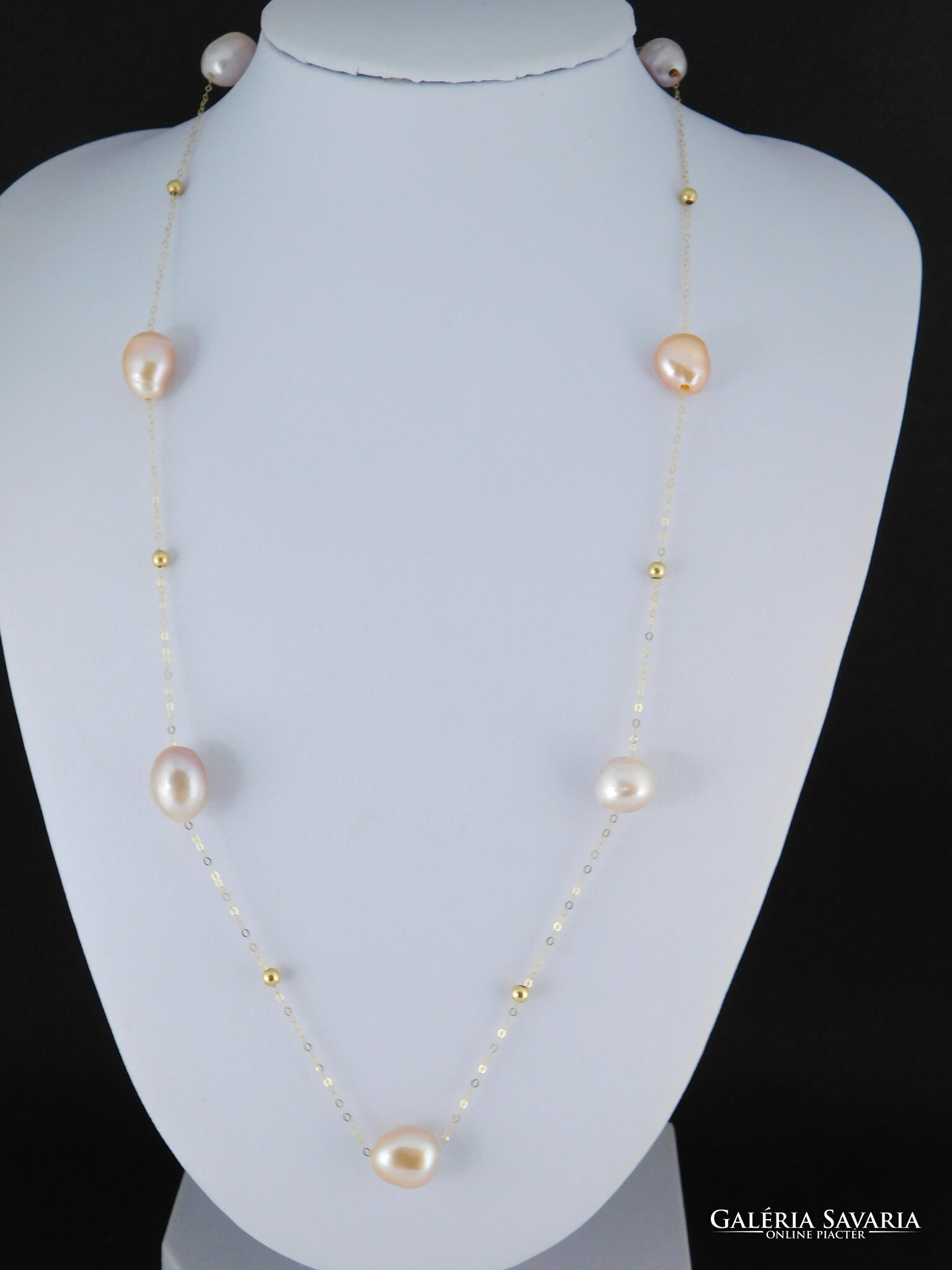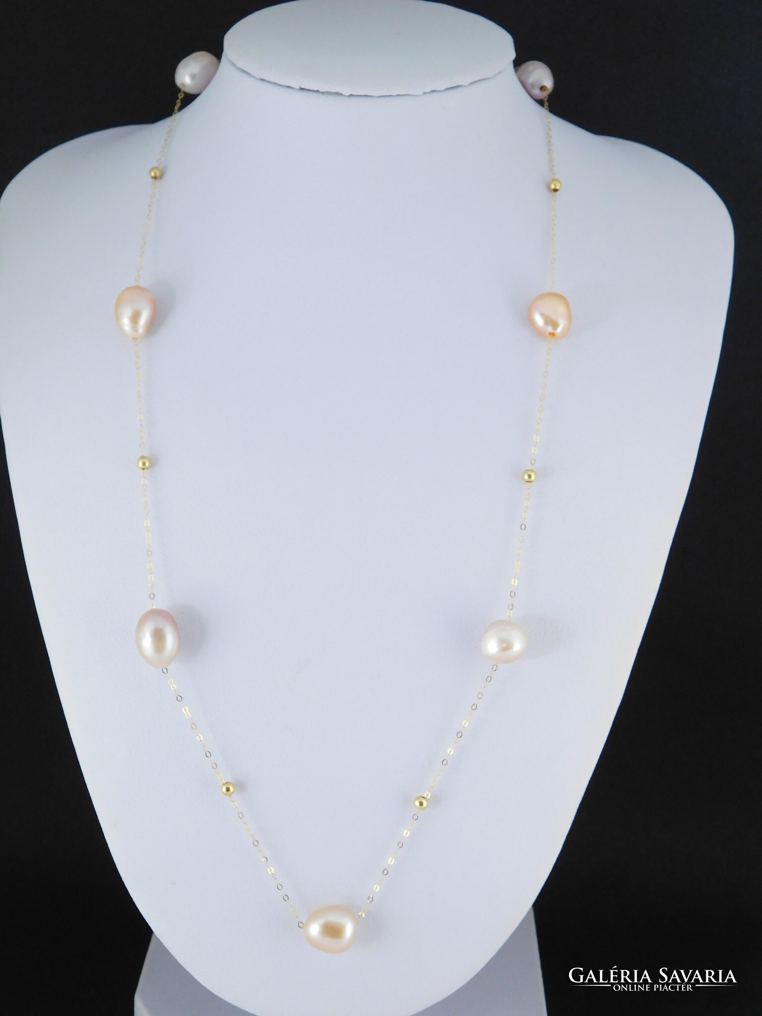 Édesvízi tenyésztett gyöngyök 18 k arany nyaklánccal.