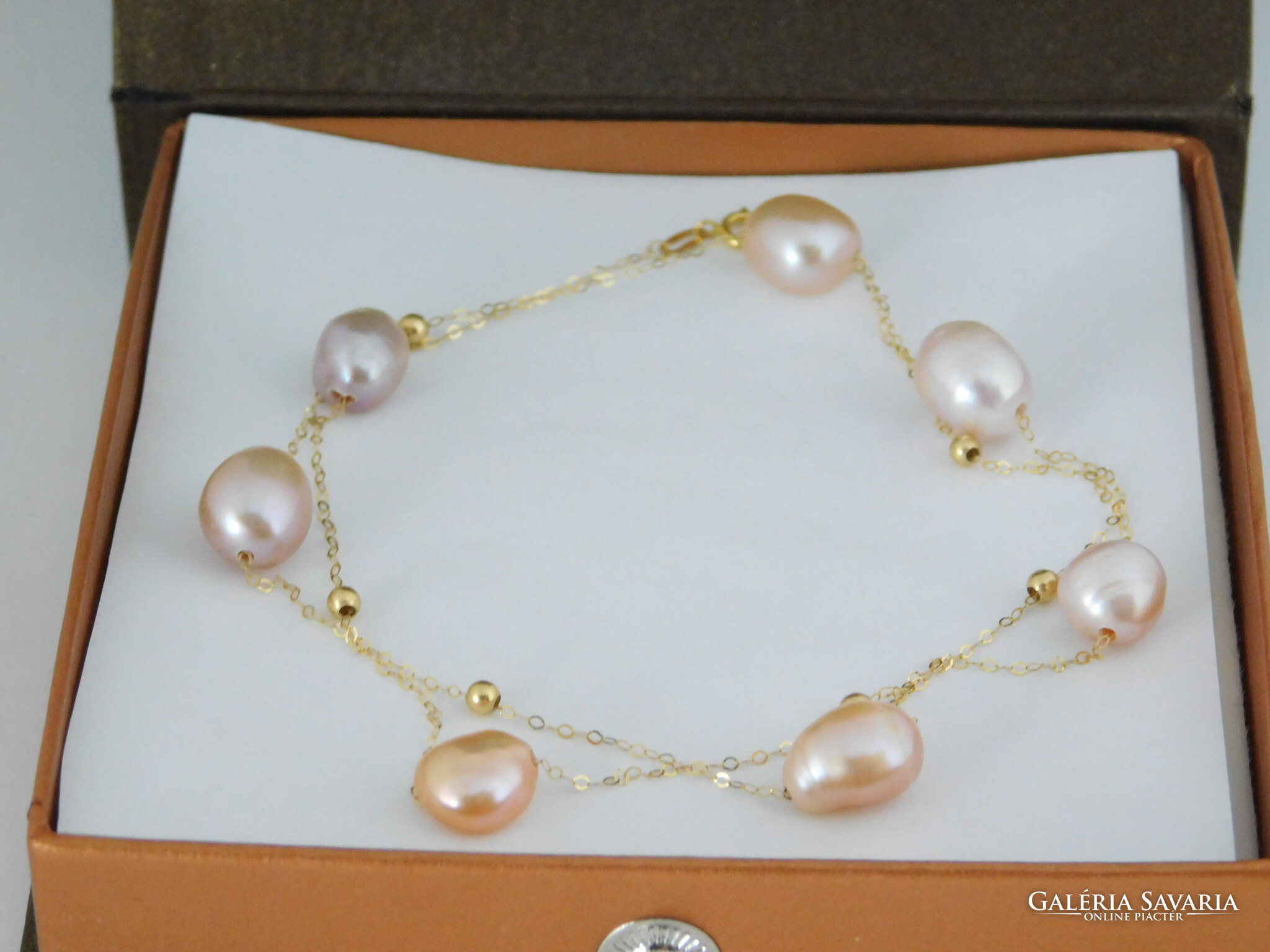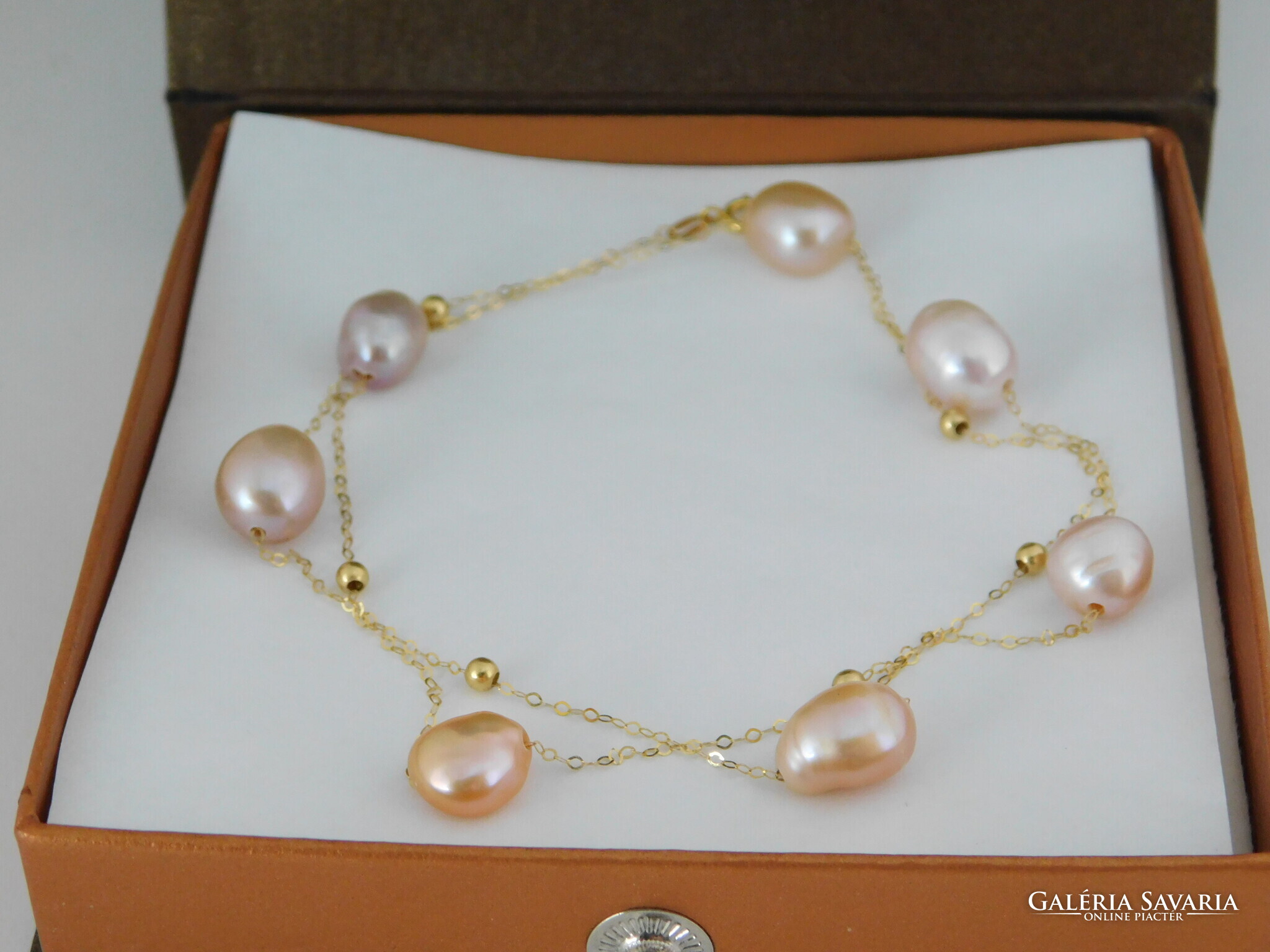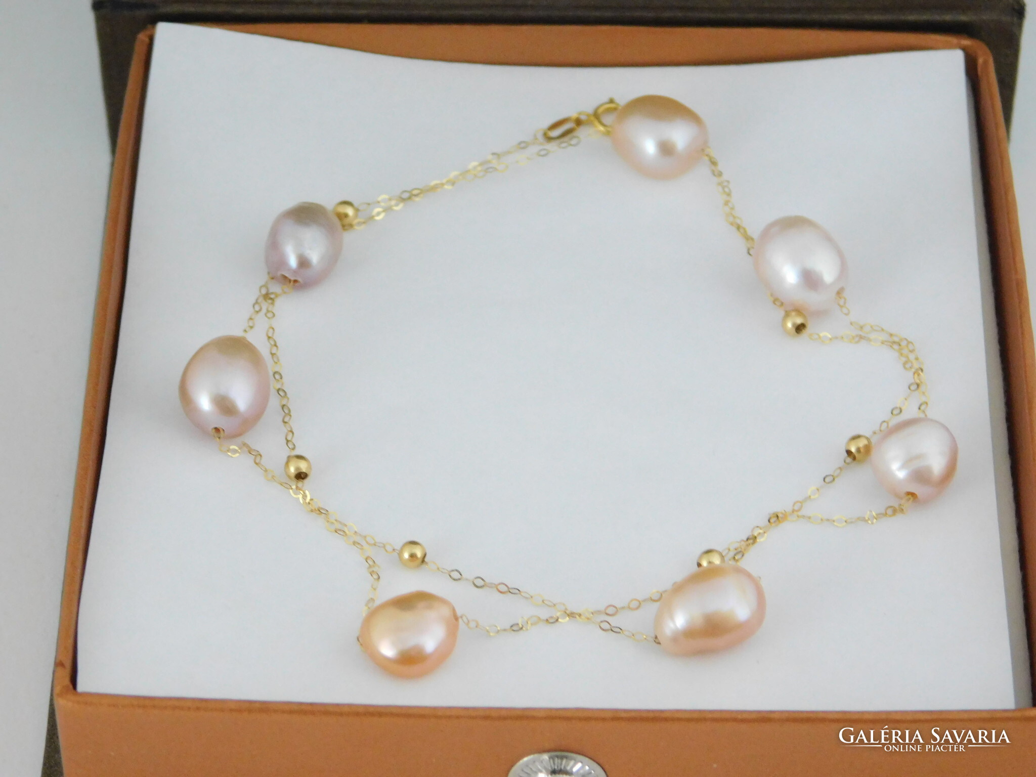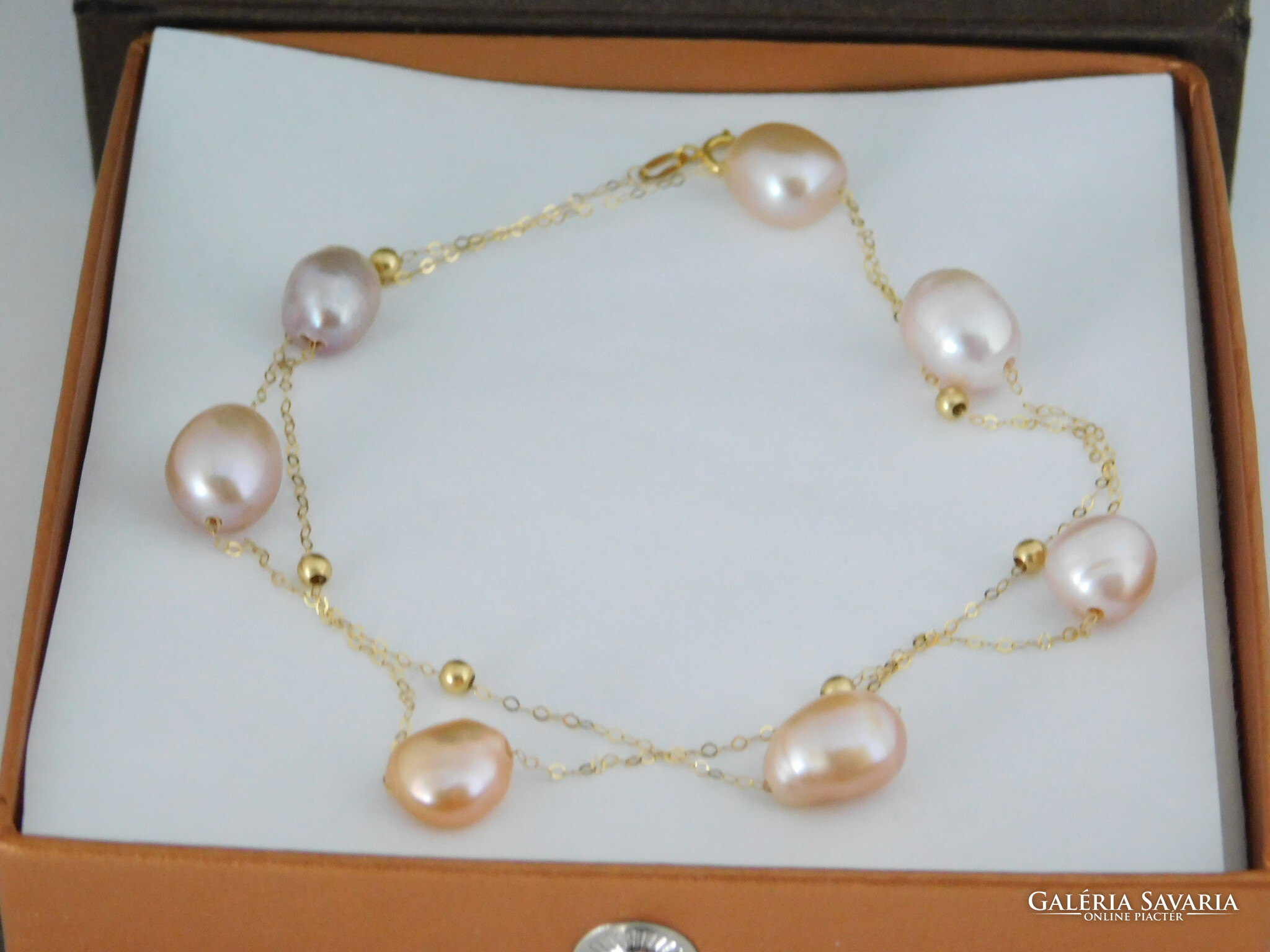 Édesvízi tenyésztett gyöngyök 18 k arany nyaklánccal.