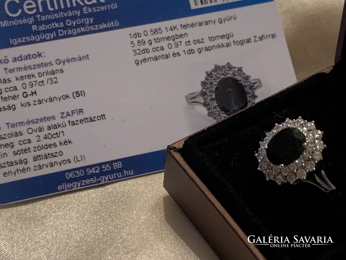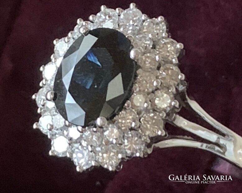 Margaréta Gyűrű Zafírral és Gyémántokkal.Masszív robosztus ékszer.