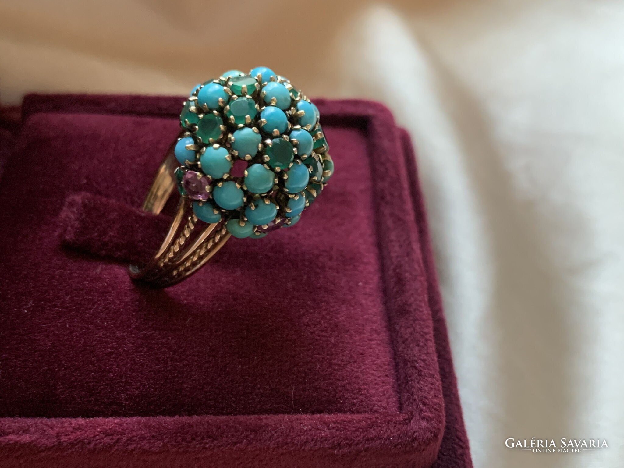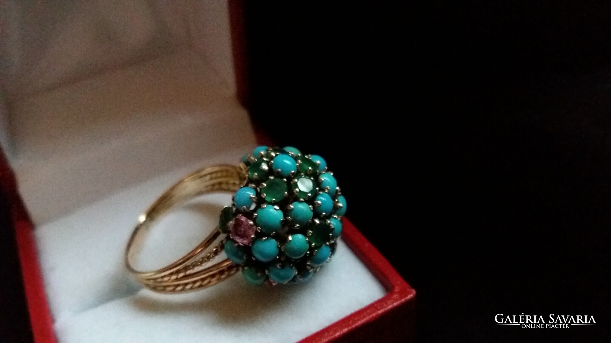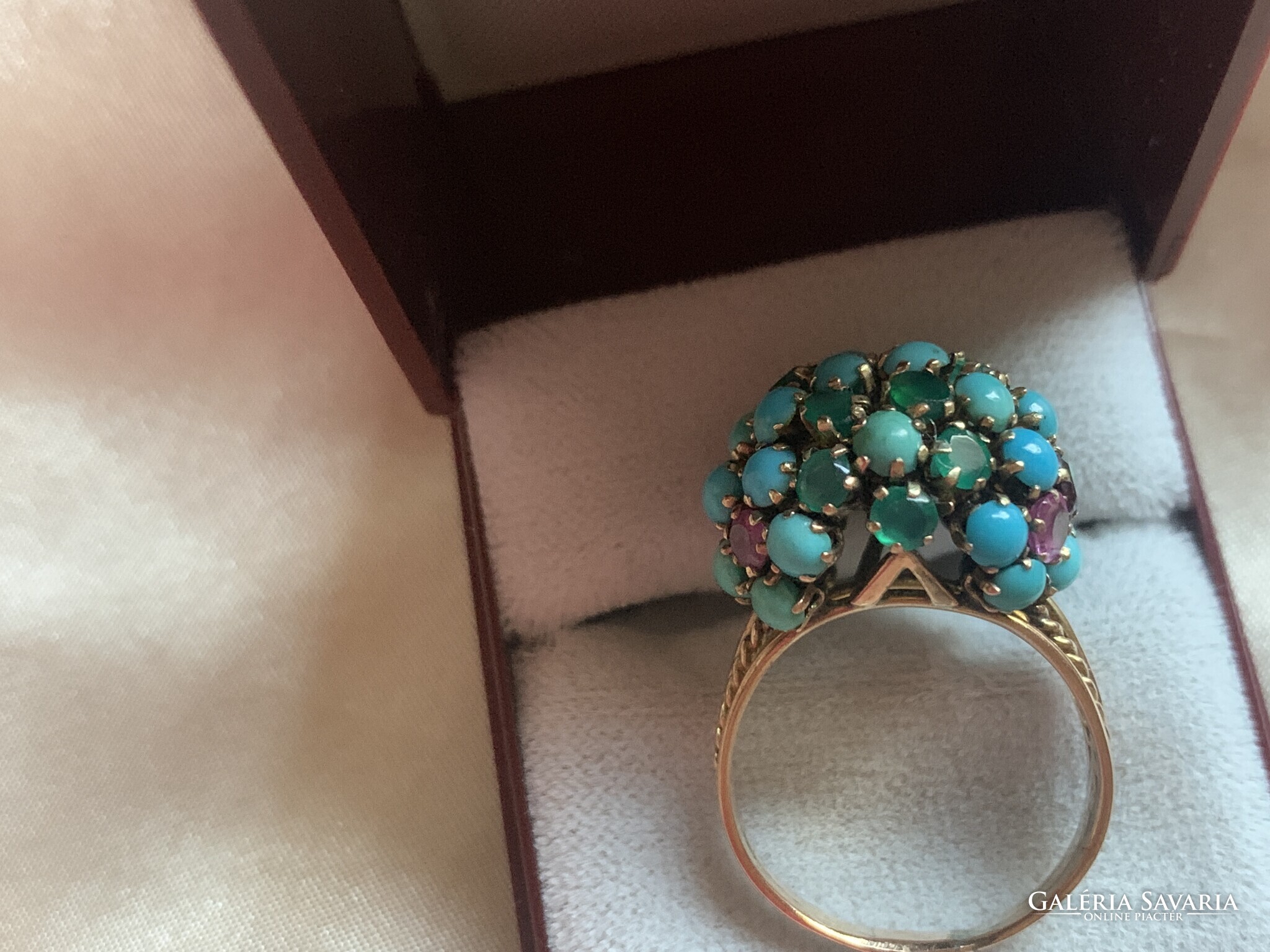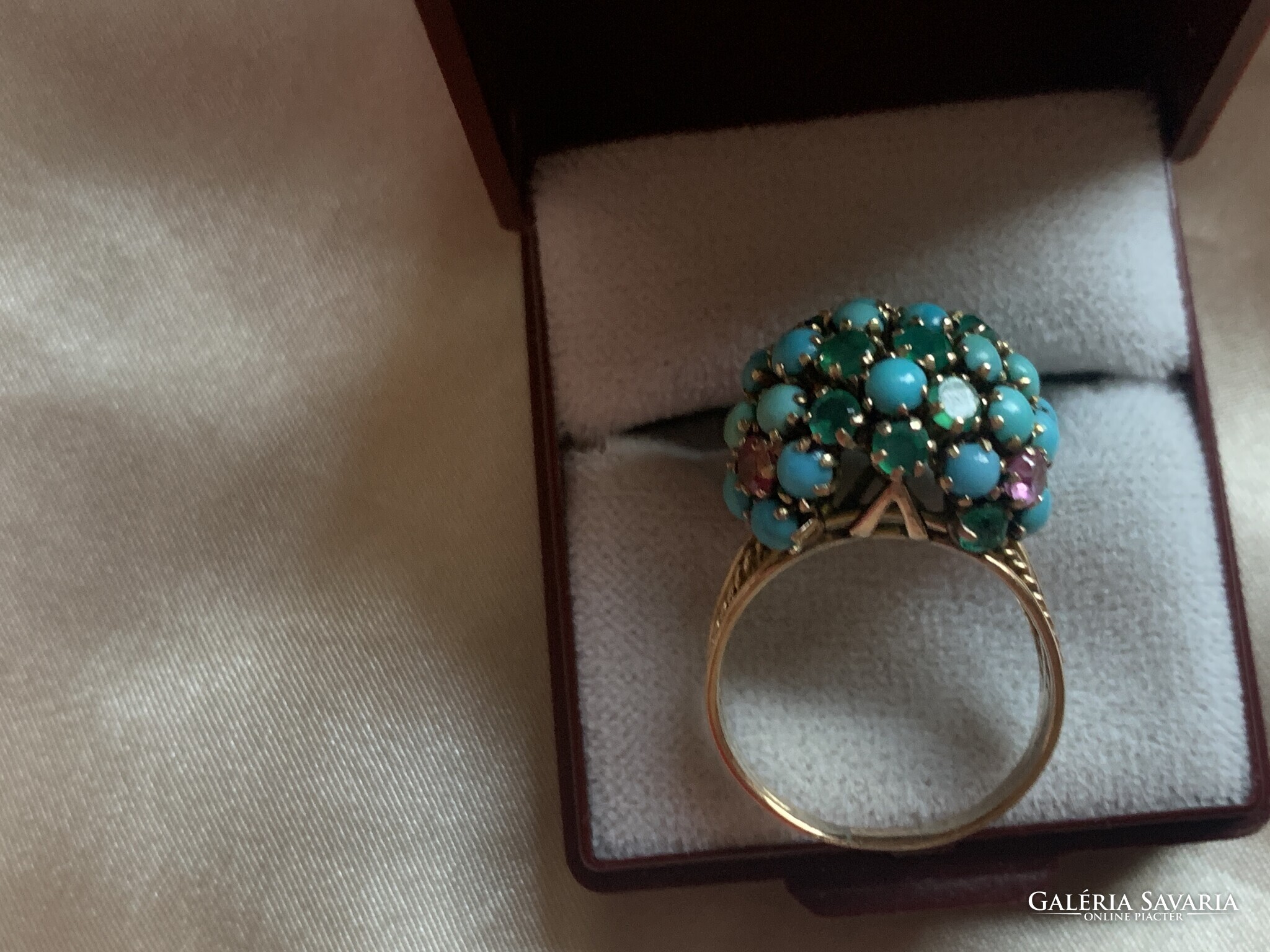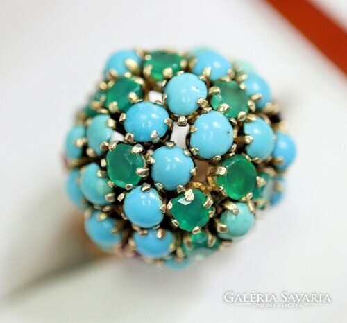 Csodálatos türkiz rubin smaragd gyűrű 14 kr.arany