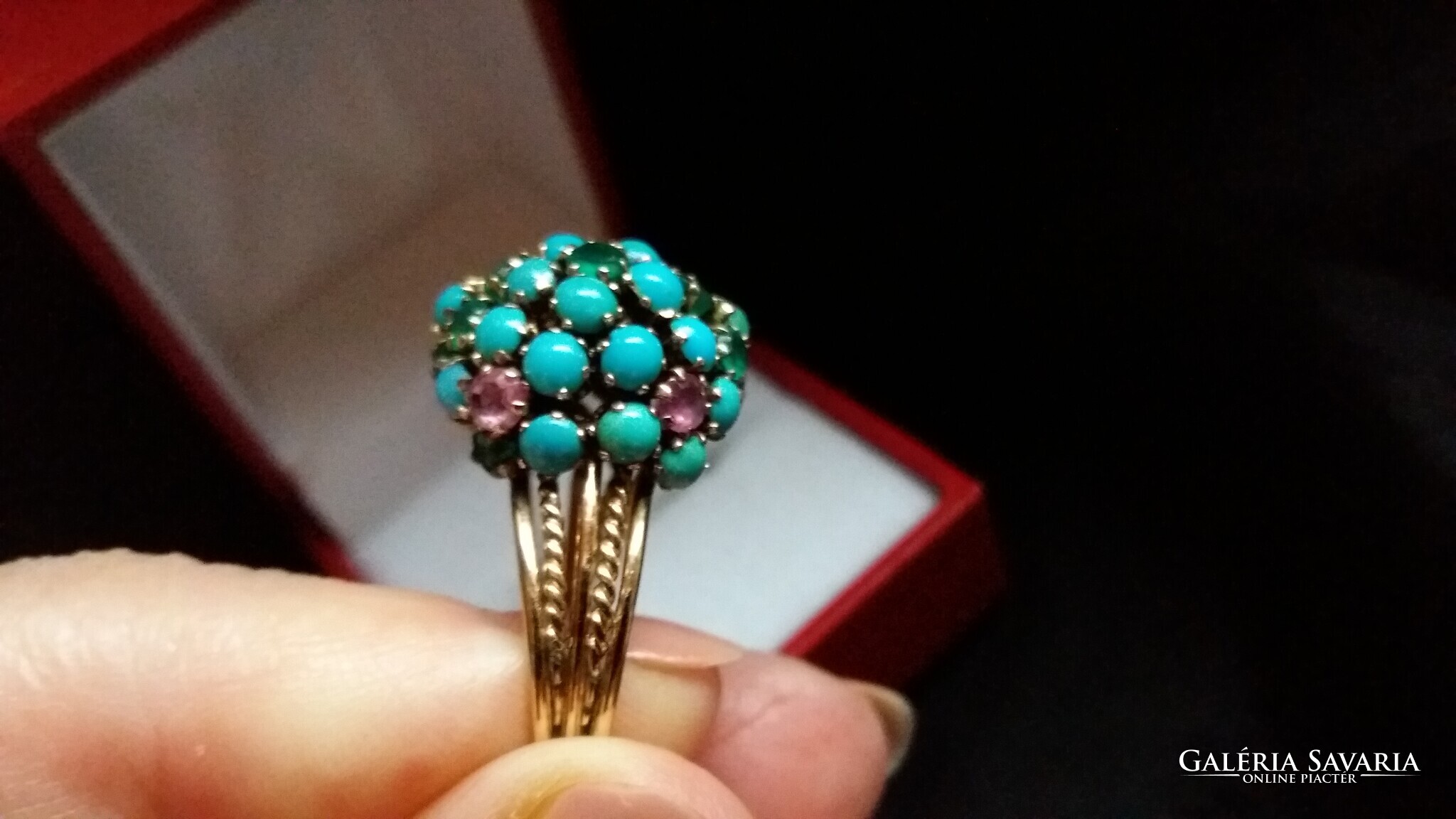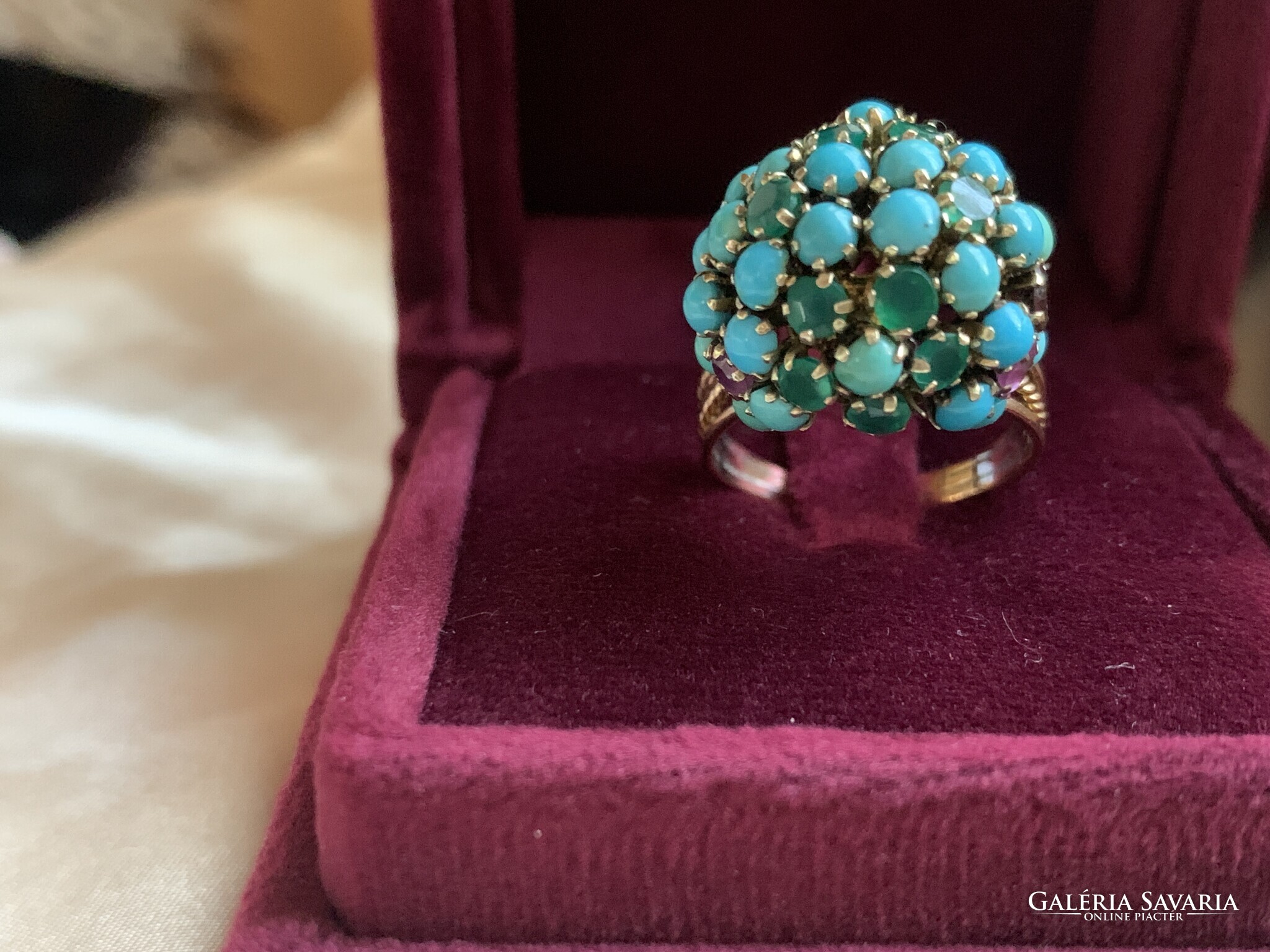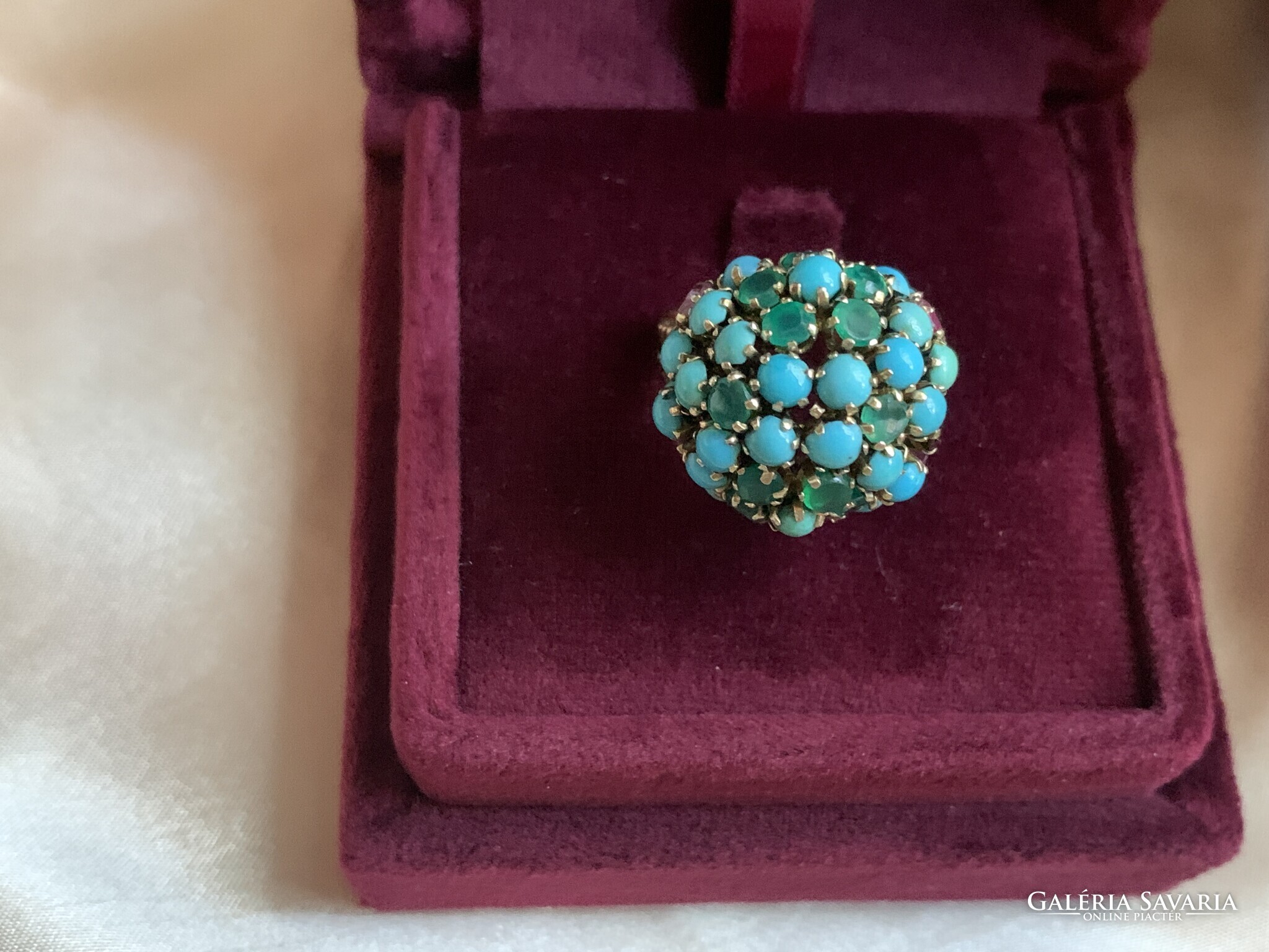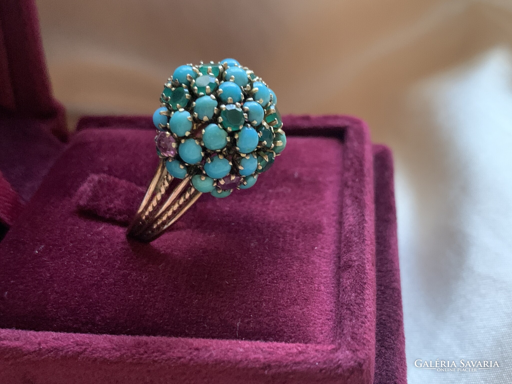 Csodálatos türkiz rubin smaragd gyűrű 14 kr.arany