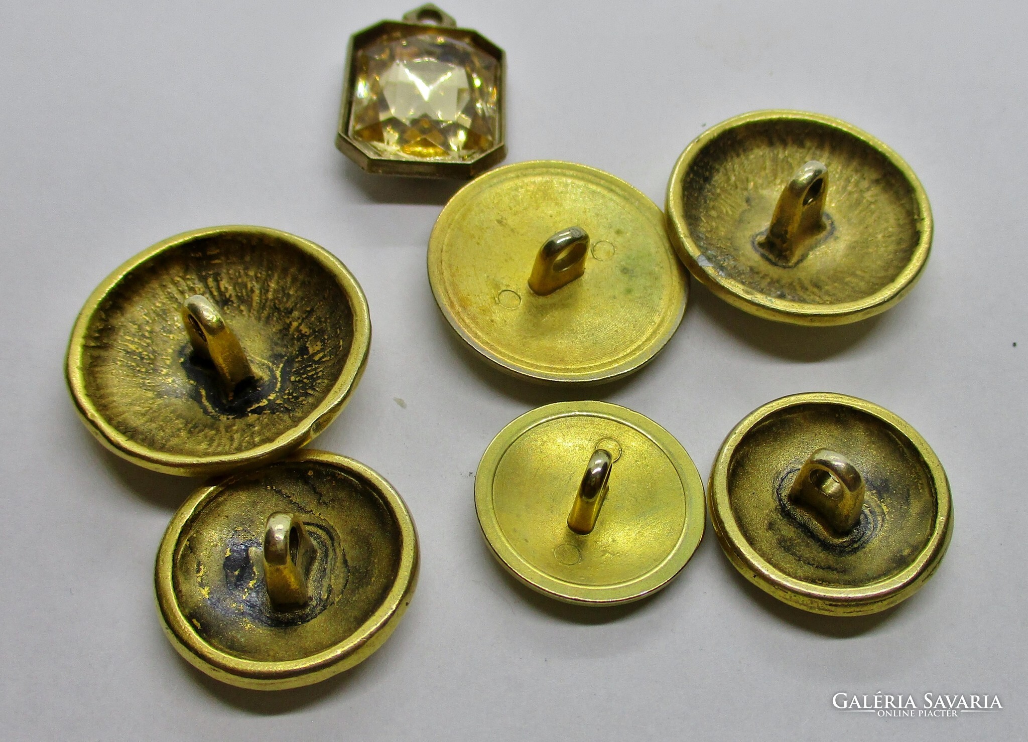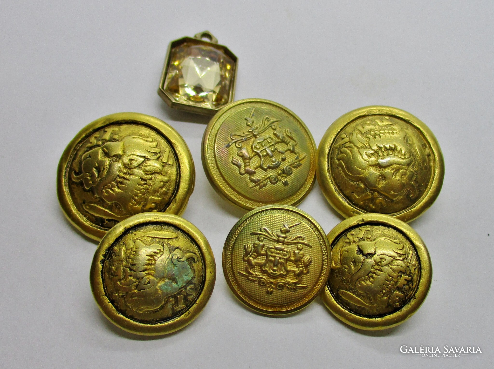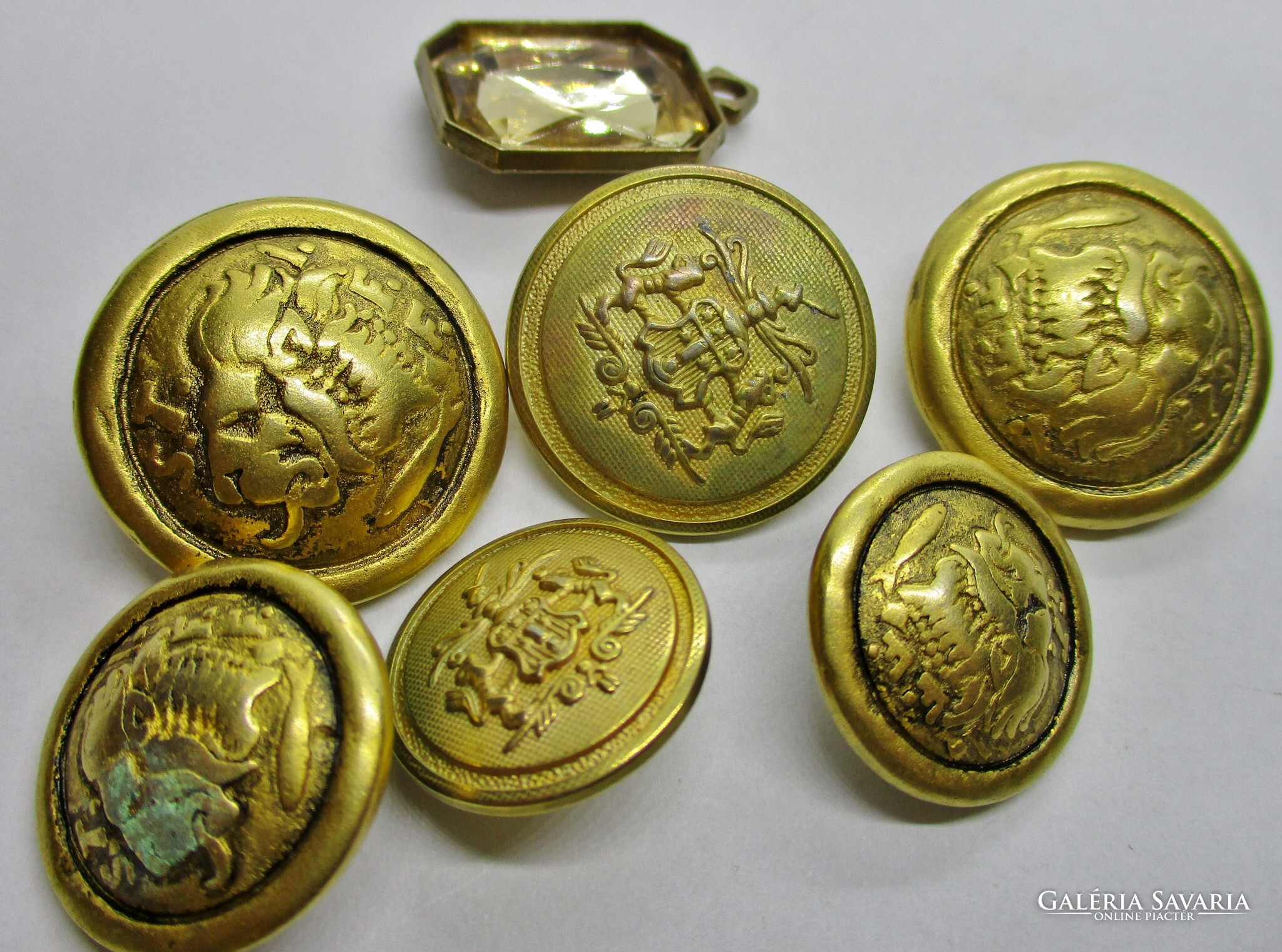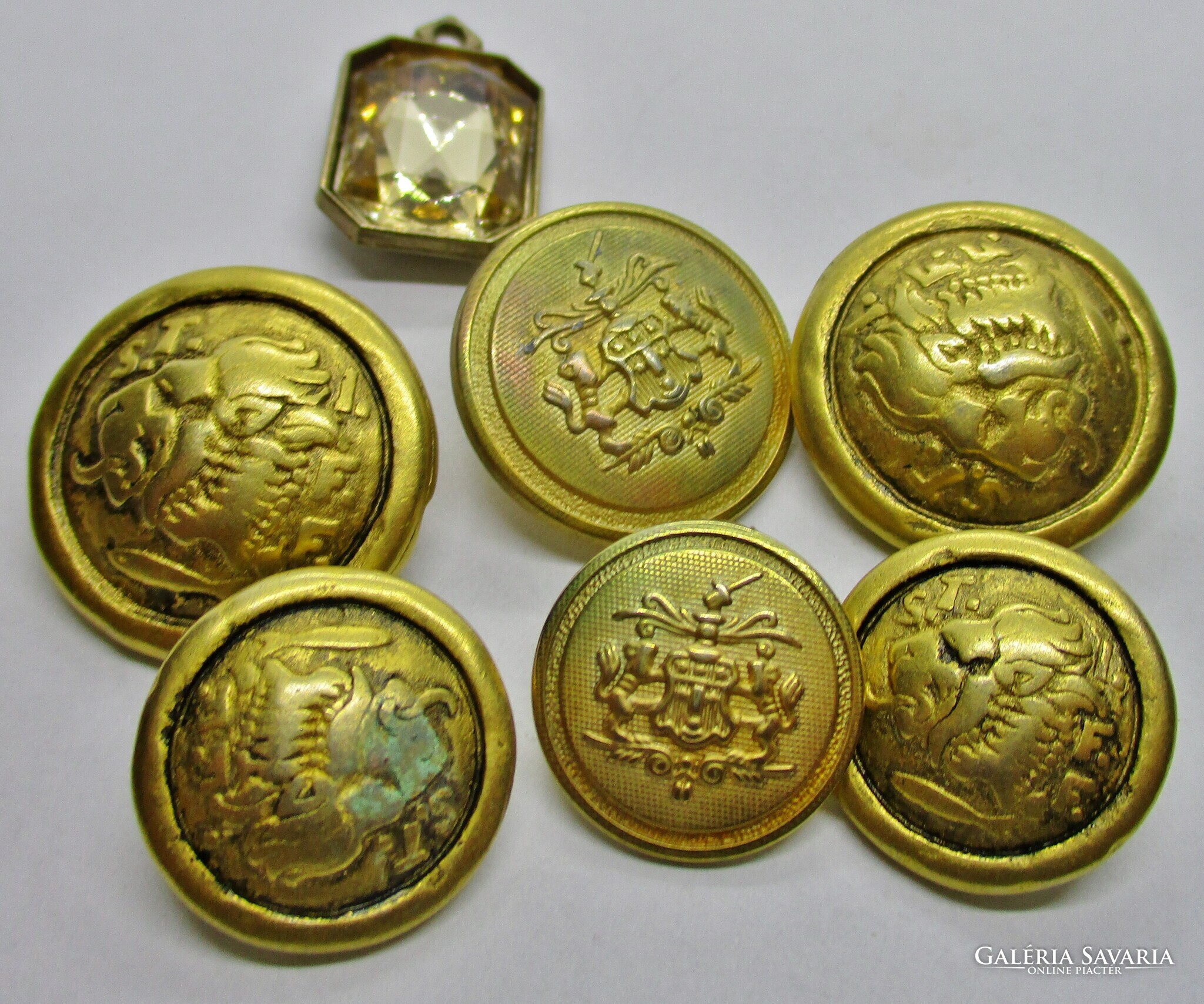 Szépséges antik aranyozott címeres gombok 6db + 1db köves kis medál