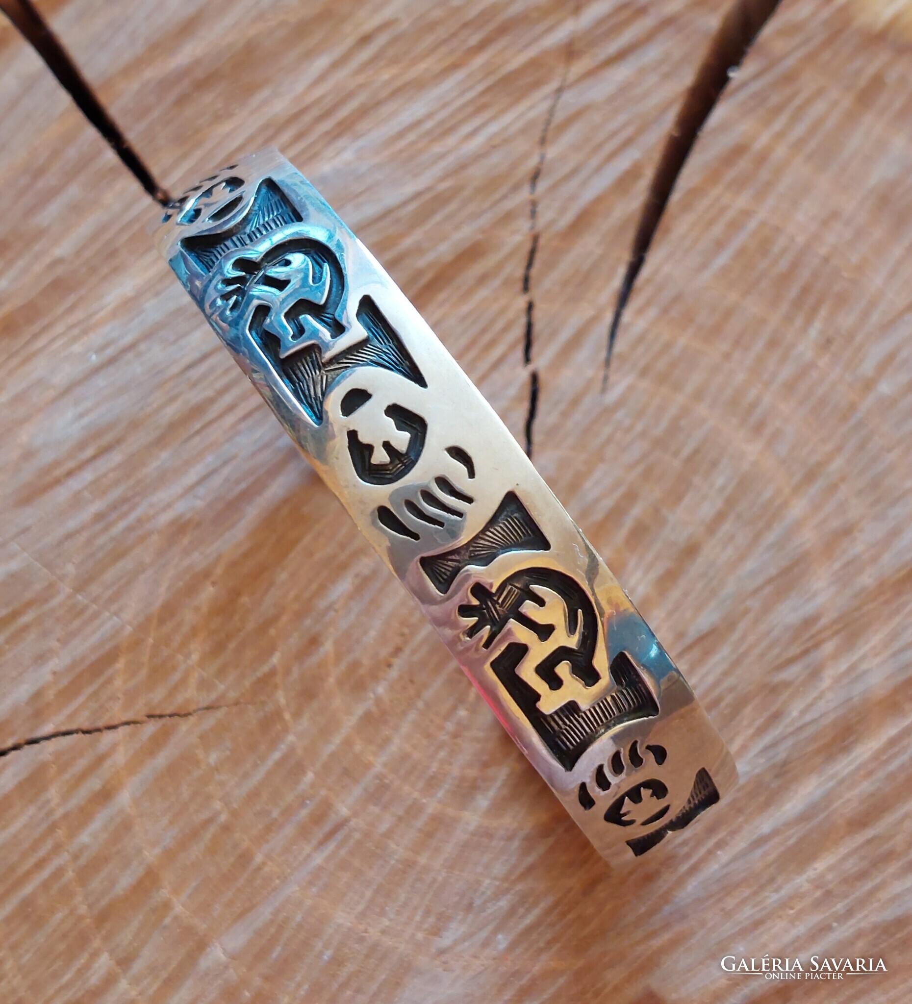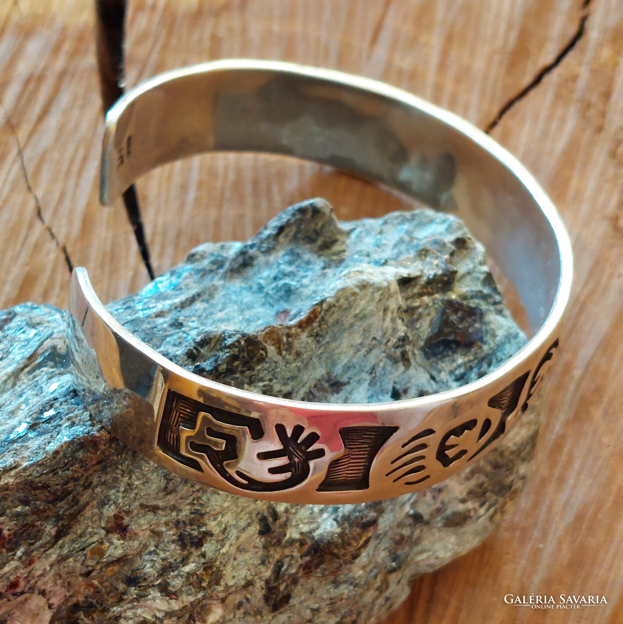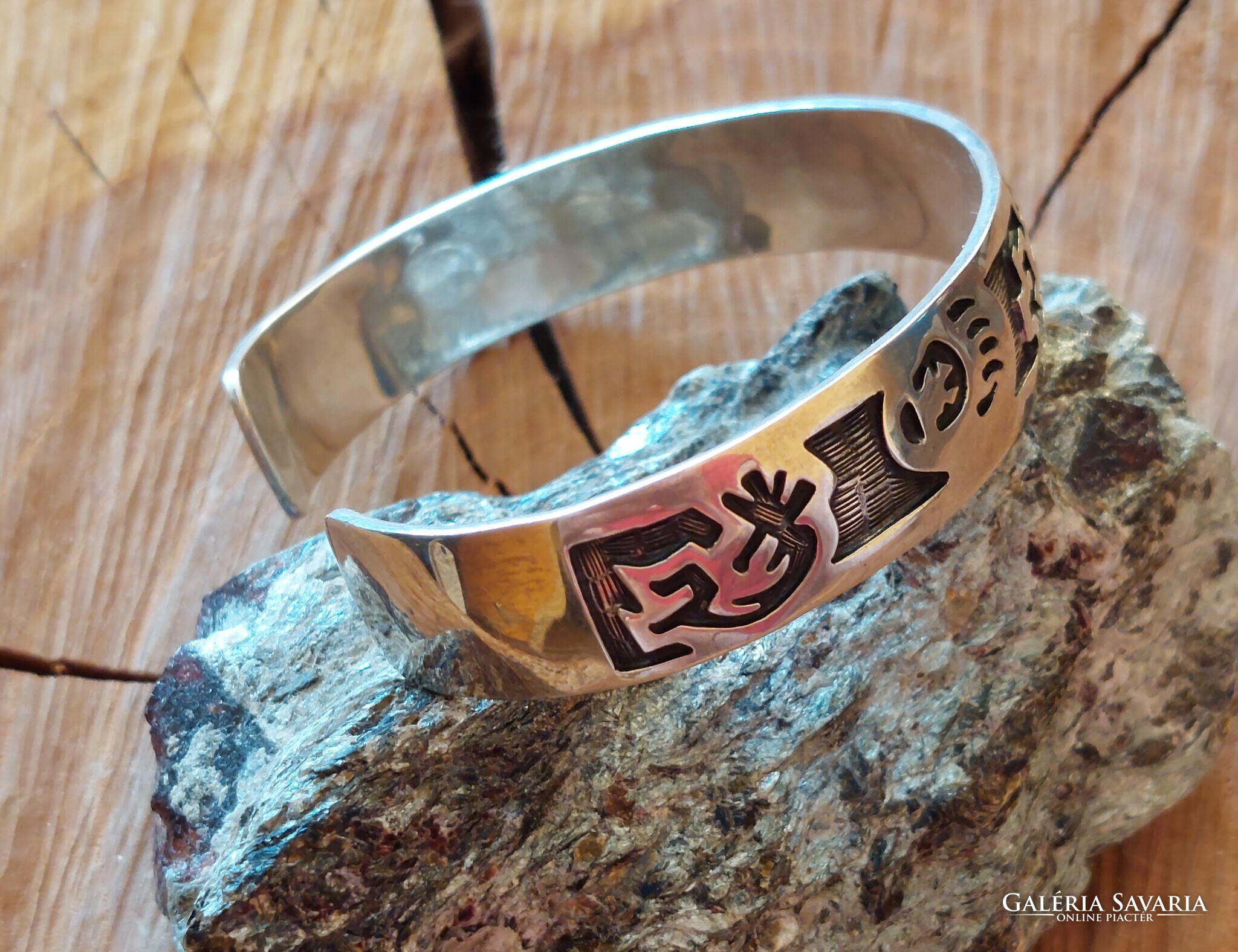 Gyönyörű, nyitott kokopelli ezüst karperec