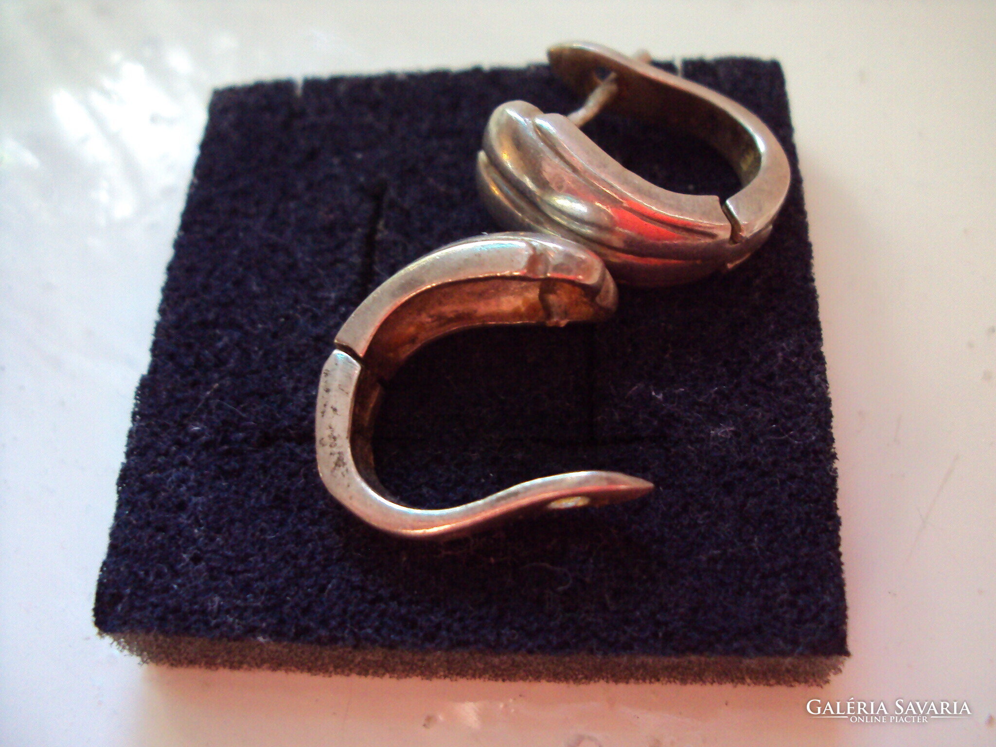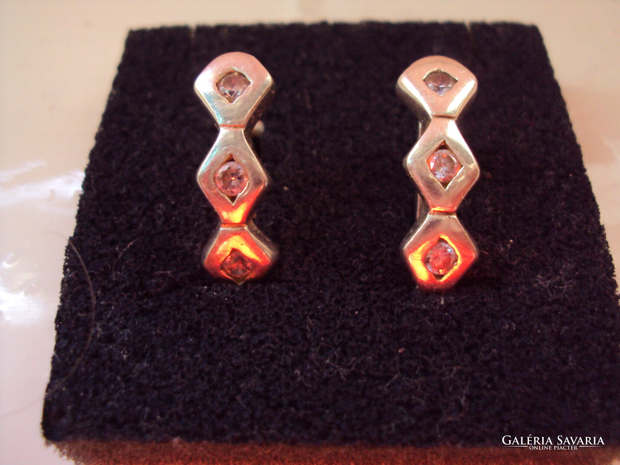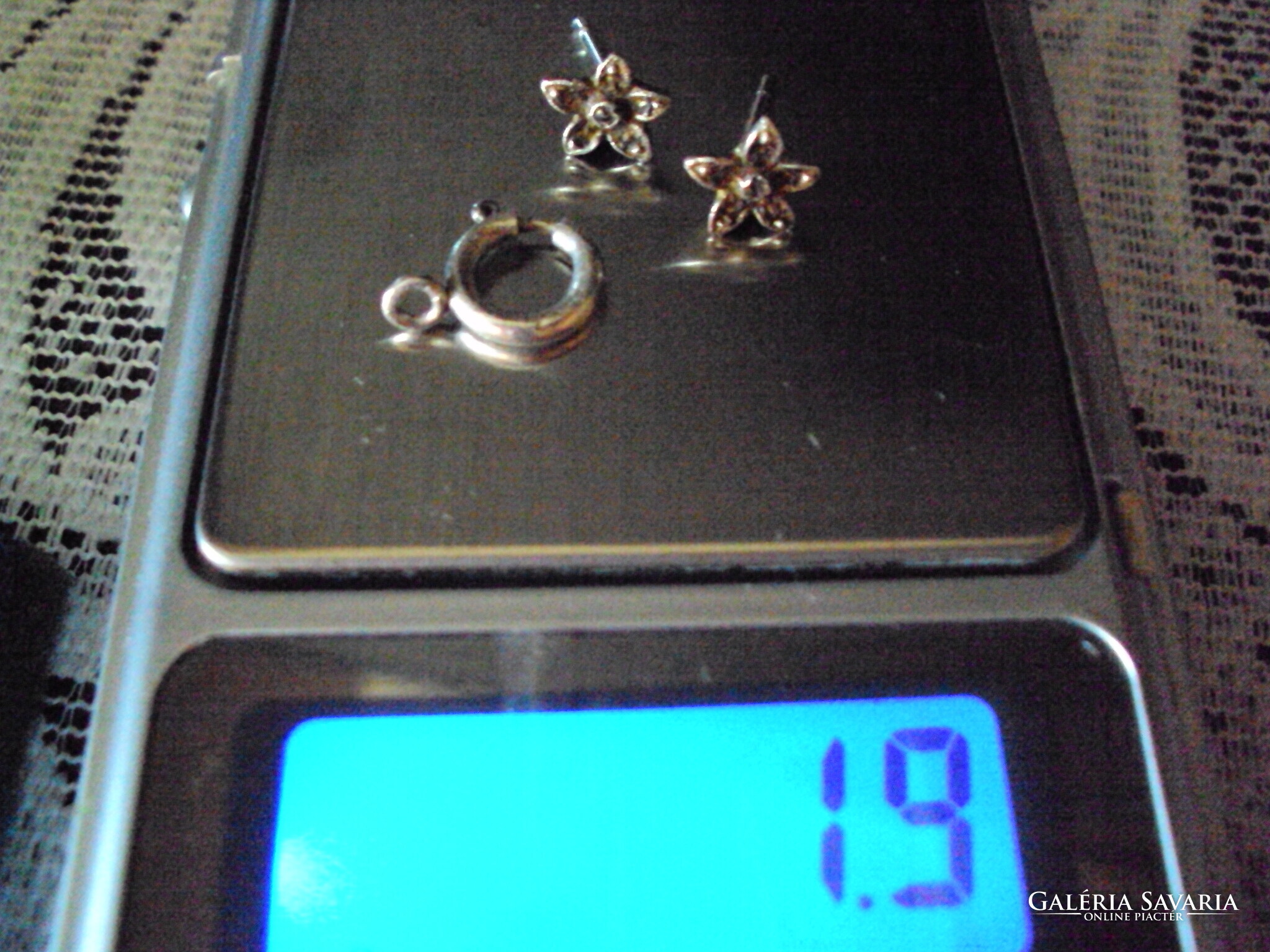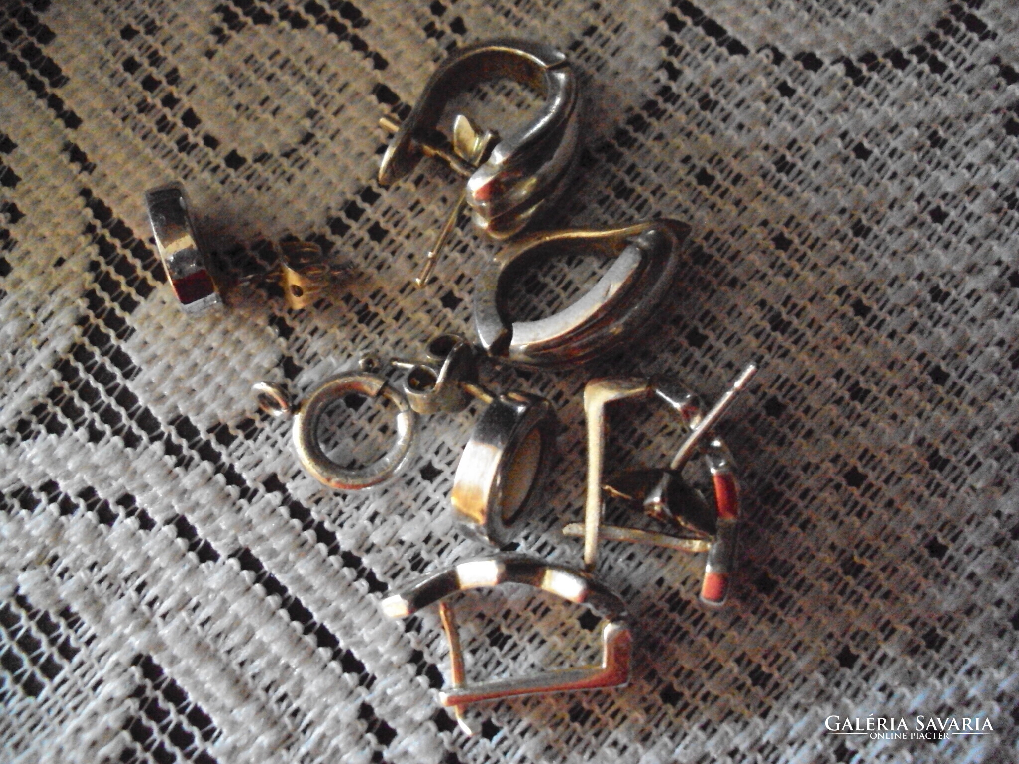 Négy pár jelzett ezüst fülbevaló. Hibájuk látható a képen. A szélesebb francia kapcsos fülinek hiányzik az egyik tüskéje, amit meg lehet javíttatni. Végig cirkóniás francia kapcsosnak laza az egyik kapcsa, beesik, amint a képen is látható. A gyöngyházas betéttel ellátott stiftes fülinél az egyik gyöngyház el van színeződve, ráhúzója megvan. A margarétás stiftesnek, nincs meg a ráhúzója, ajándékba mellé adok egy nyaklánc kapcsot ezüstből /rugója rossz/