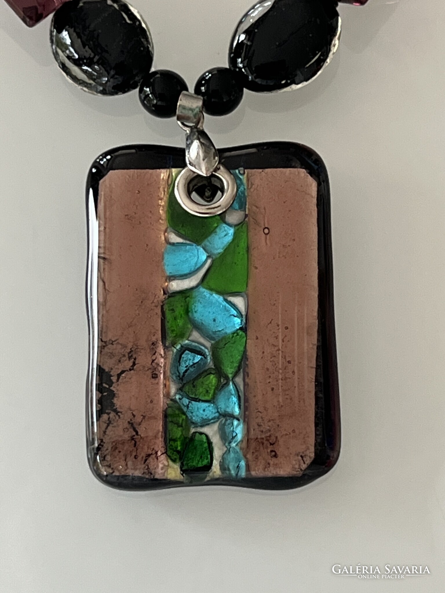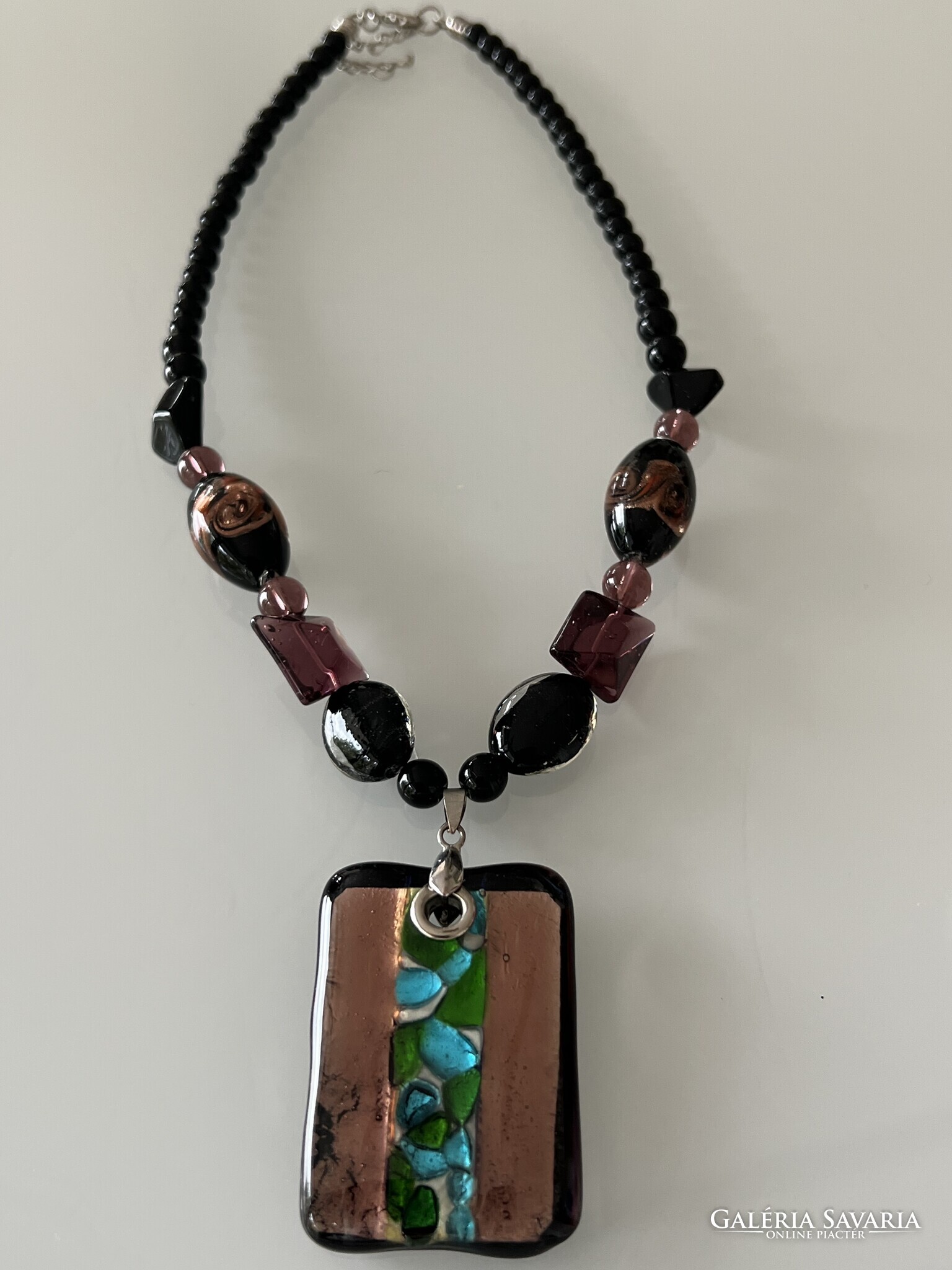 Muránói üveg nyaklánc különleges medállal, 50 cm hosszú