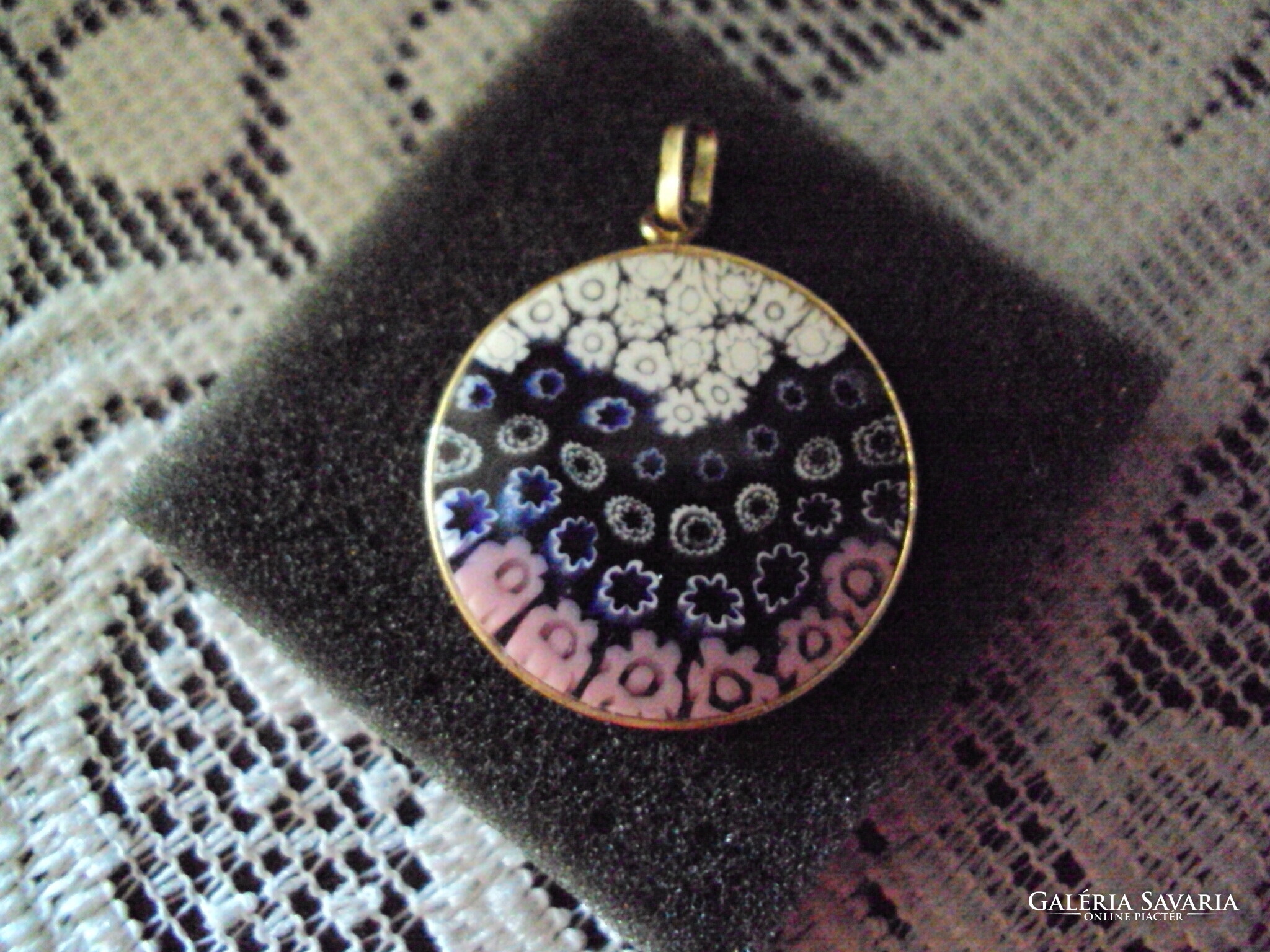 Millefiori jelzett, aranyozott ezüst medál. Átmérője: 2,5 cm. Hibátlan. Szépsége miatt bátran ajánlom ajándékba is. Nagyon szép ajándék lehet belőle.