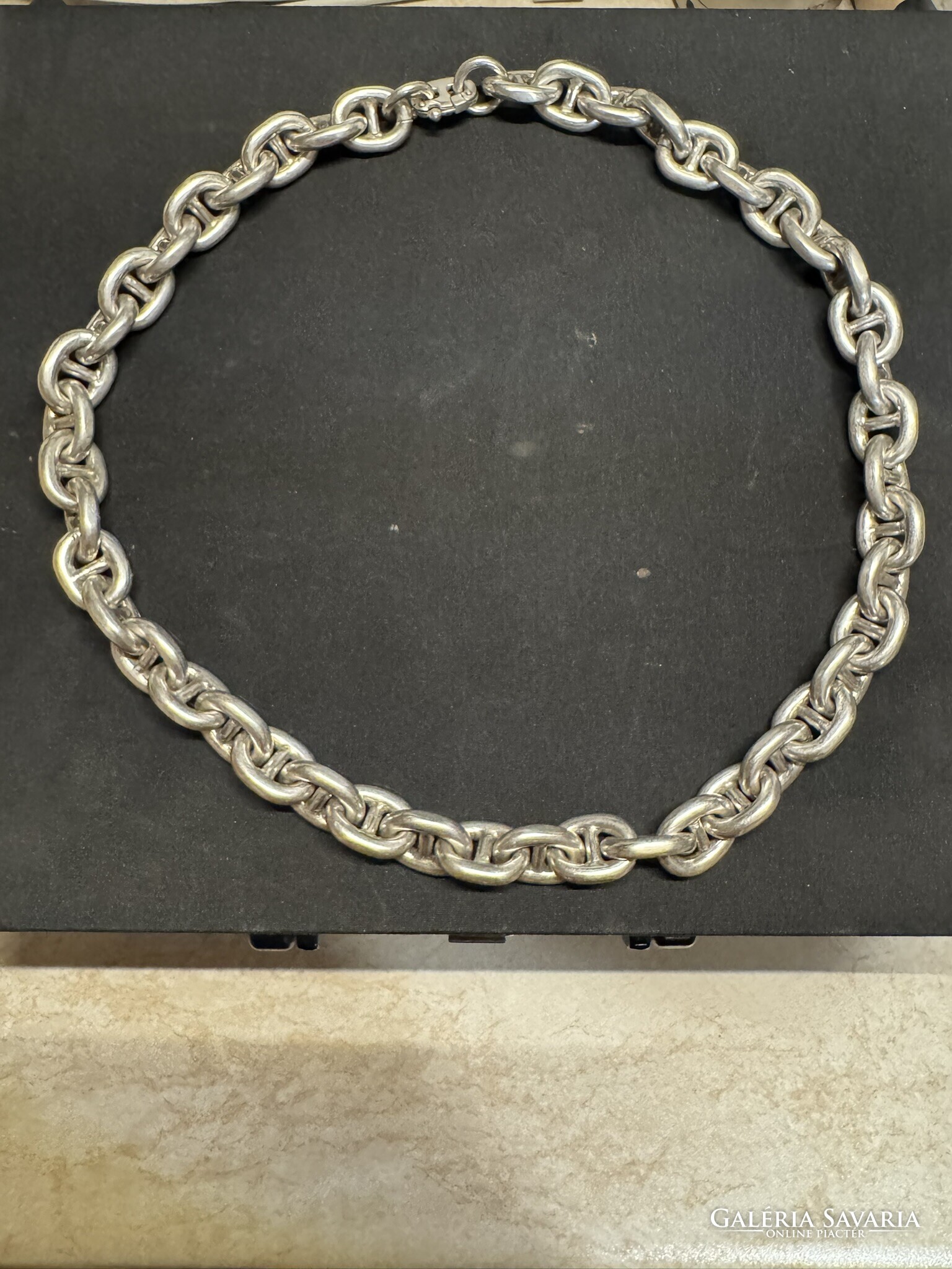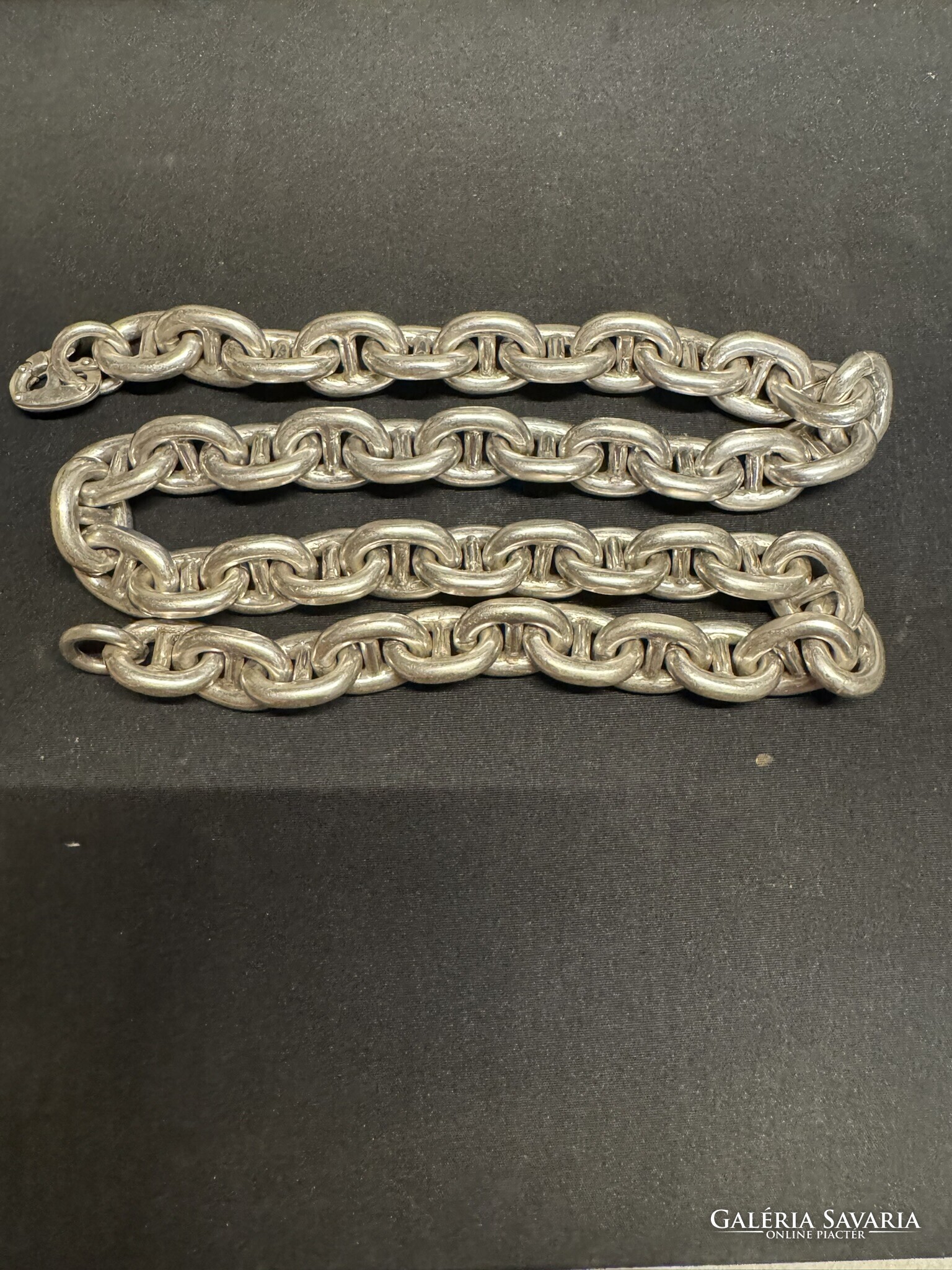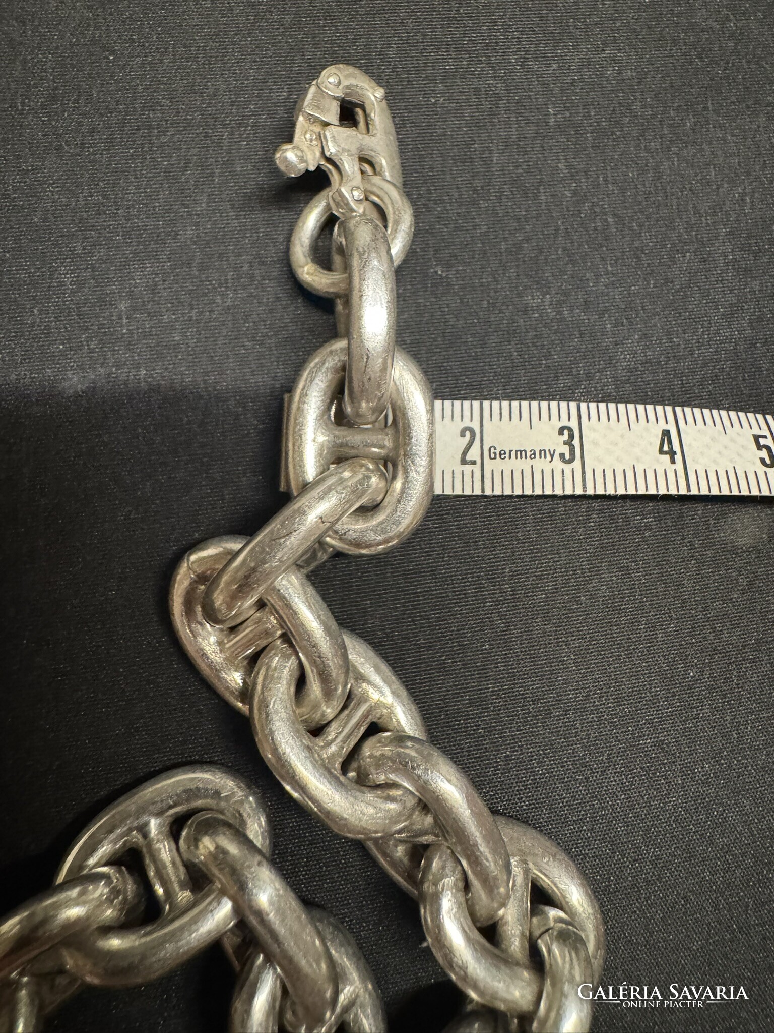 Eladó a képeken látható ezüst férfi nyaklánc.Egyedileg gyártott Budapesten egy ékszerüzletben.A képeken látható a szemek méretei,a lánc hosszusága és a súlya.Az eladás oka,kihasználatlanság.