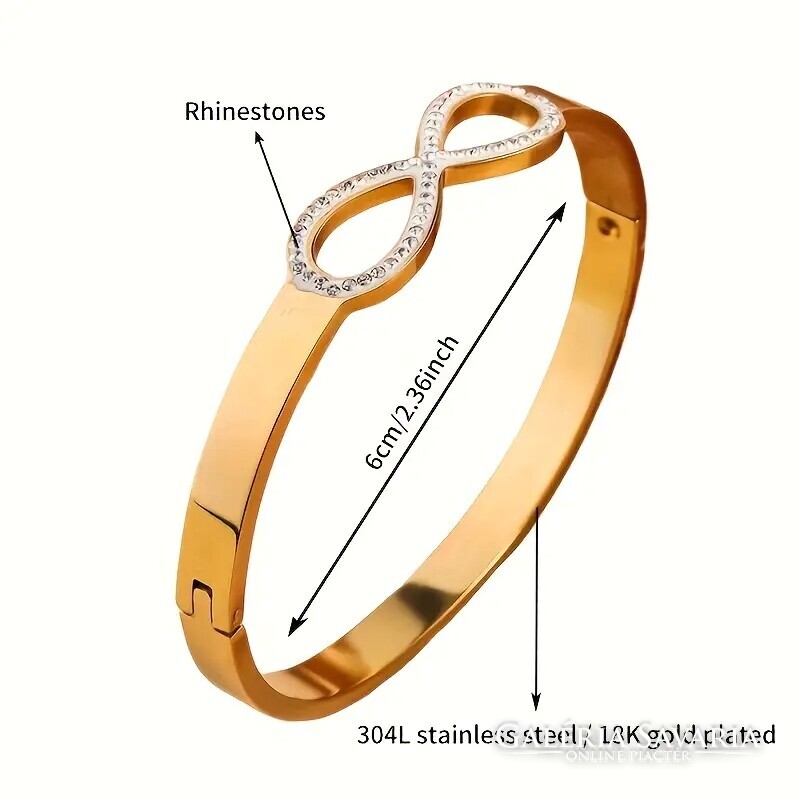 Végtelen Karkötő 18 Karátos Sárga Vagy Fehér Aranyozott Hegyikristályokkal Díszítve 304L Titánacél Új