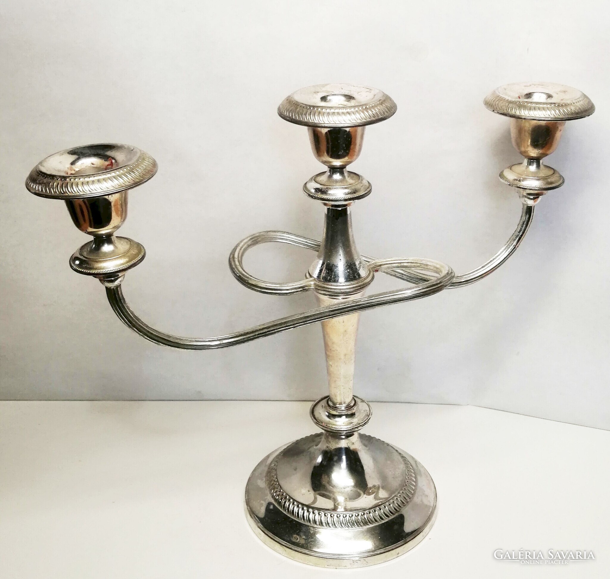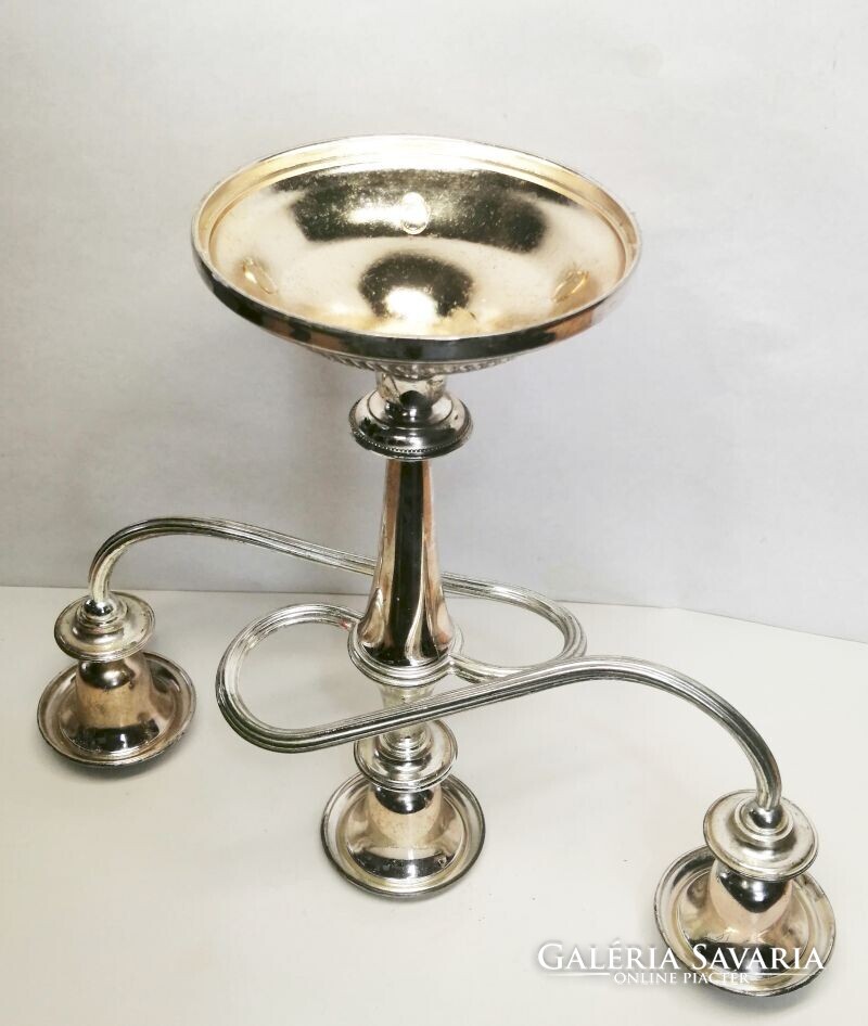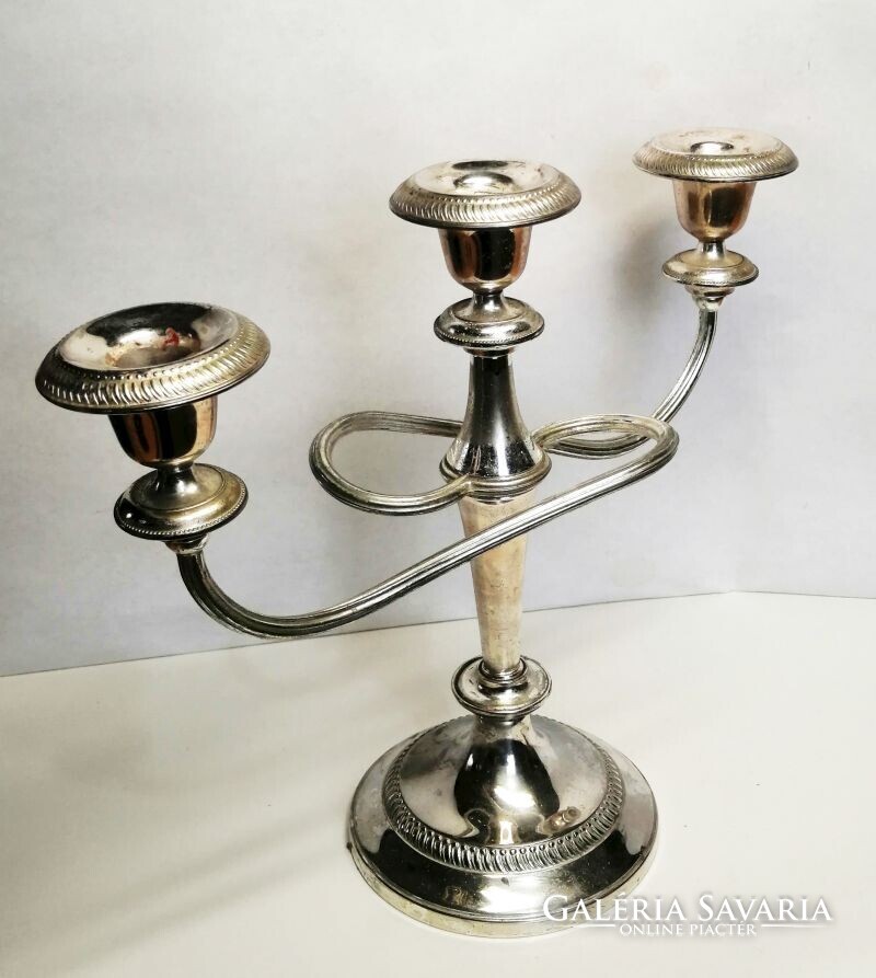 Ezüstözött neobarokk stílusú ívelt karos asztali gyertyatartó. Retro iparművészeti alkotás