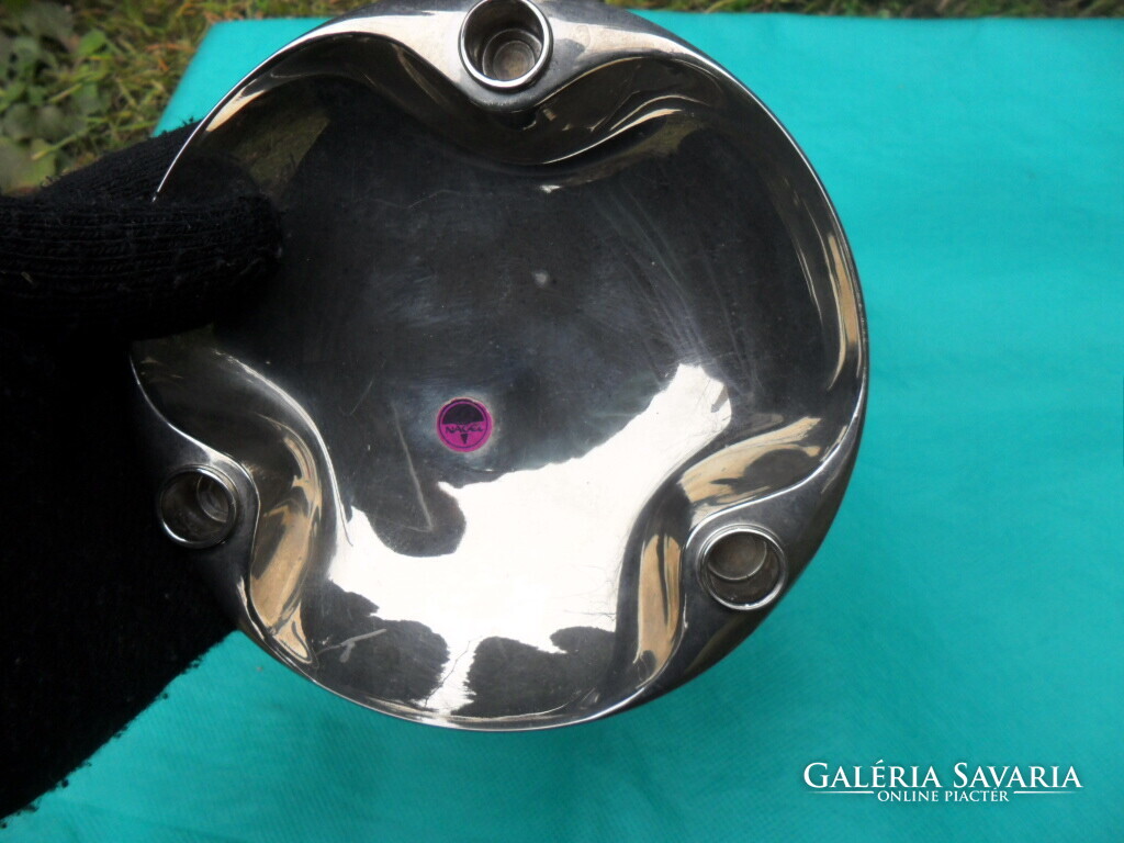 Fritz Nagel neves tervező designer gyertyatartó műve önmagában is és a többi elemekkel kombinálva is megállja a helyét.Három lábon áll.Jelzett:rajta lila cimkén : Nagel.Szép állapotban.Ritka gyűjtői darab.