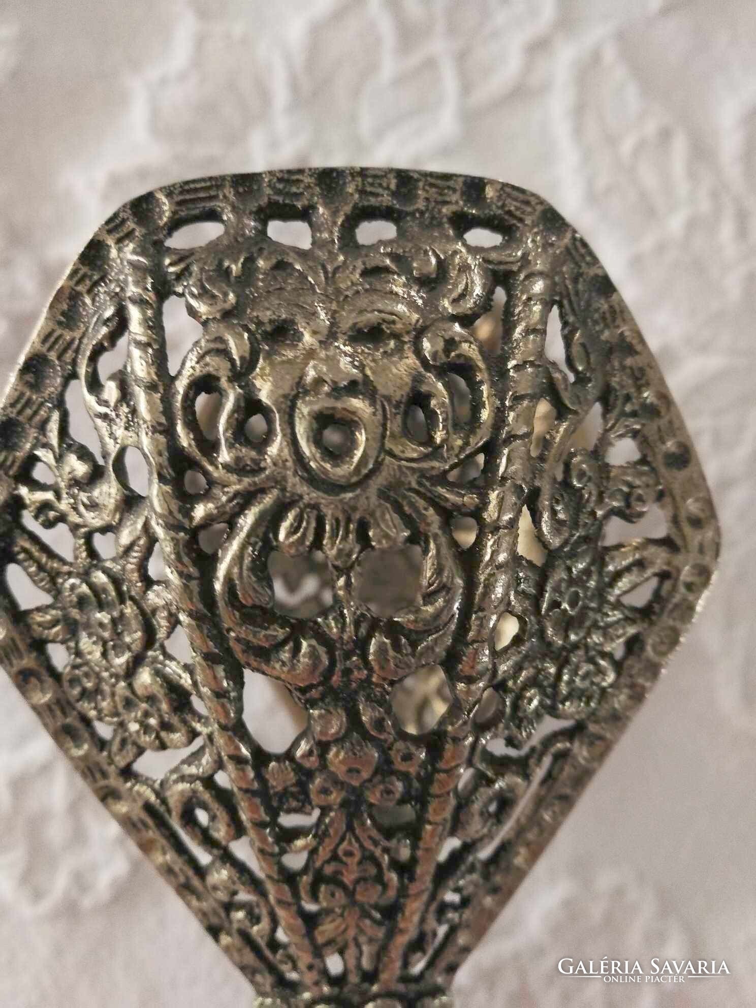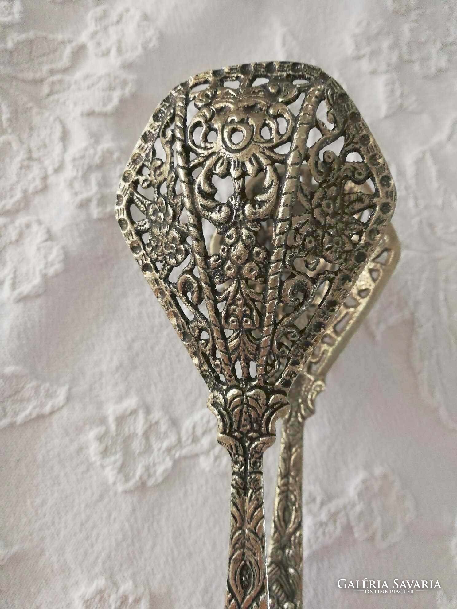 Áttört ezüst színű süteménycsipesz, tortacsipesz, nagyon ritka darab