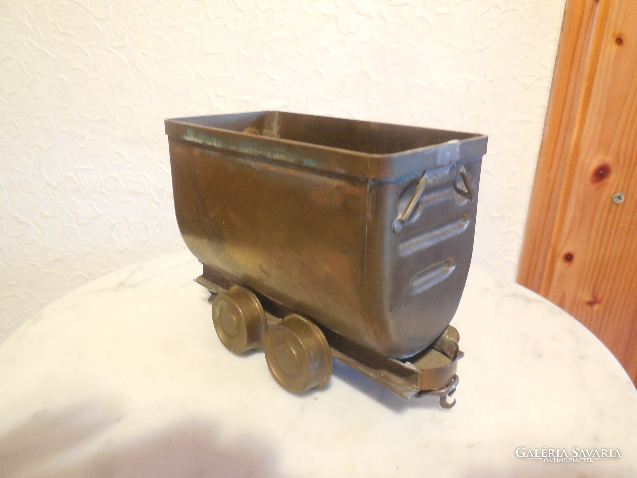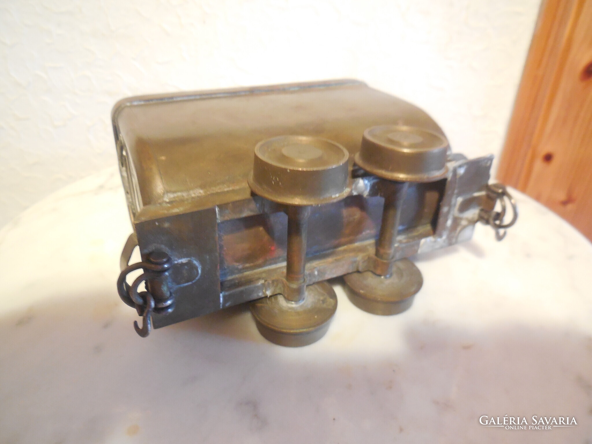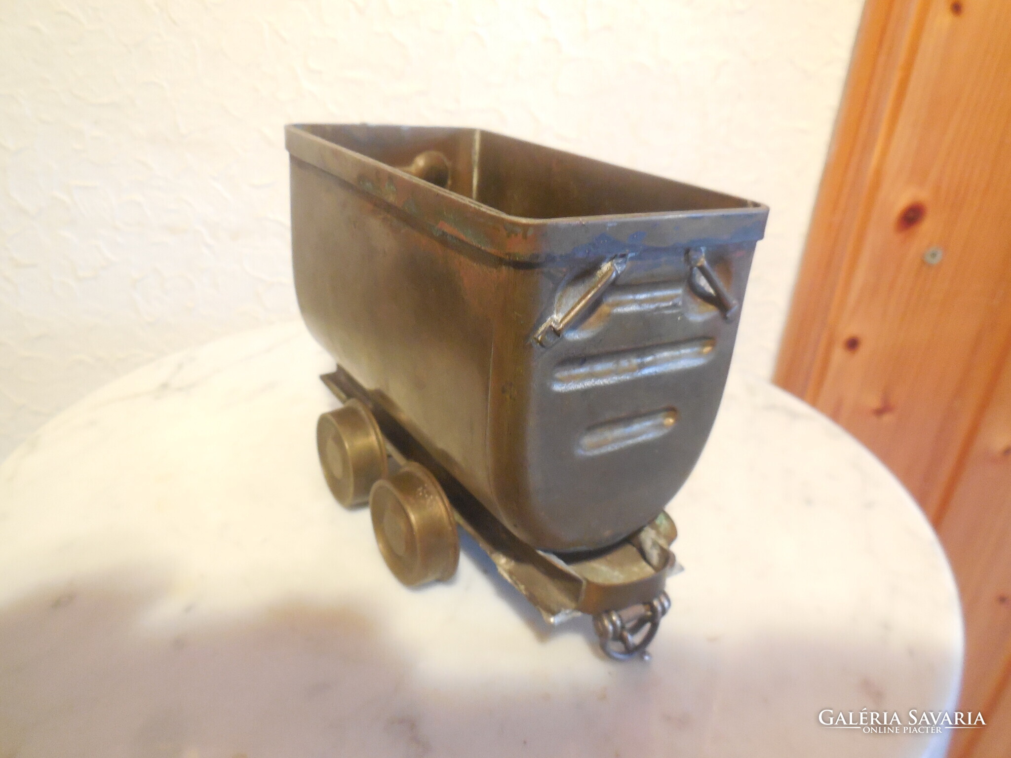 Bánya csille , sárgarézből , esztergált kerekekkel , precíz , részletes , szép kézimunka