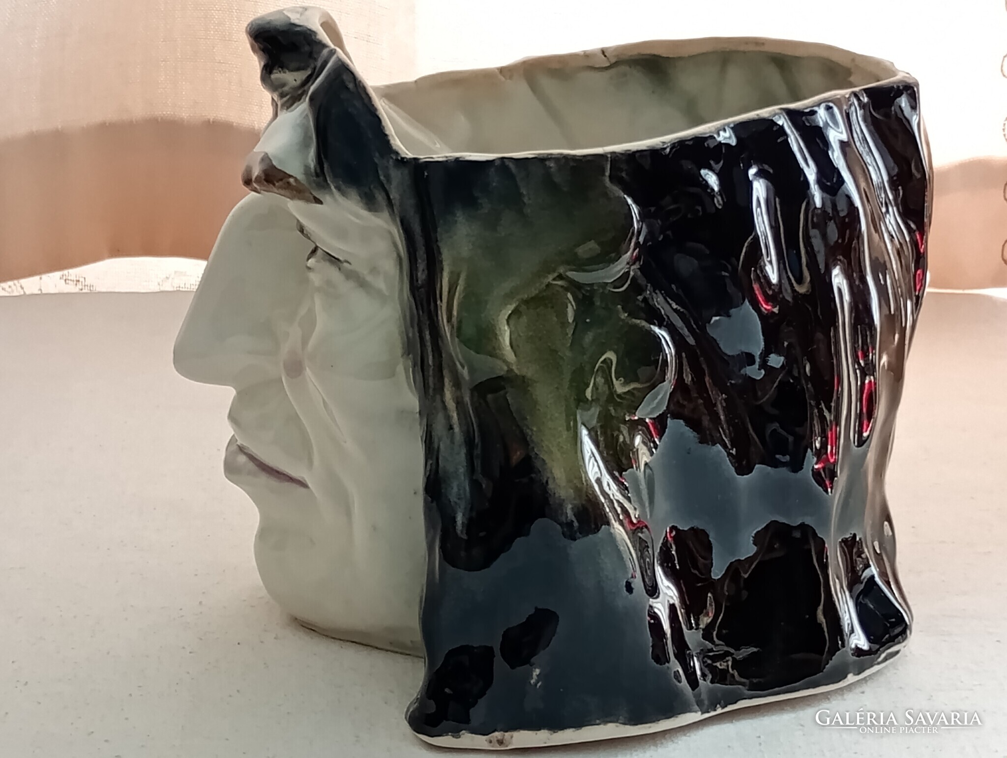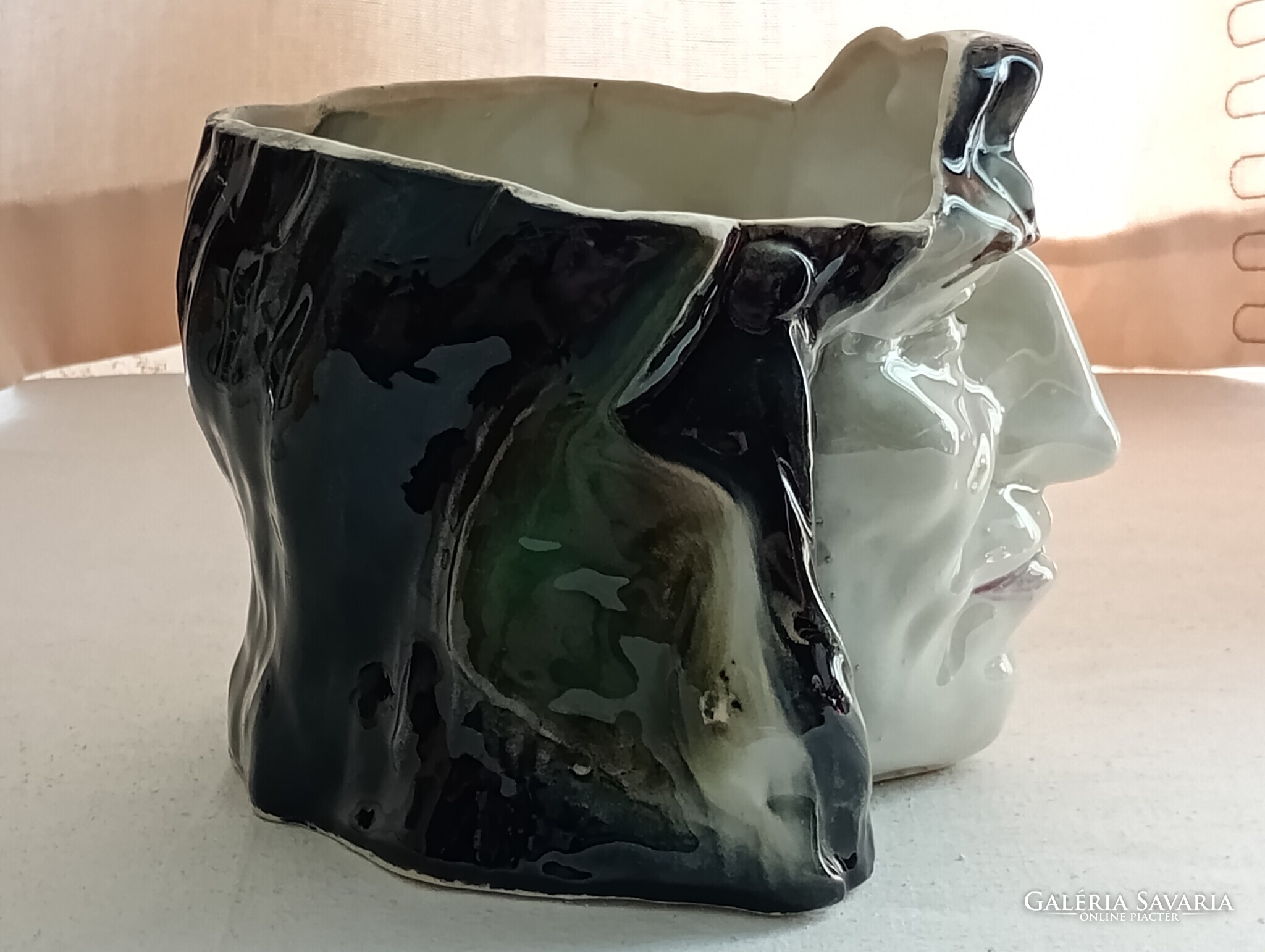 Majolika humidor 17x17x13cm - kaspó ceruzatartó polcdísz régi