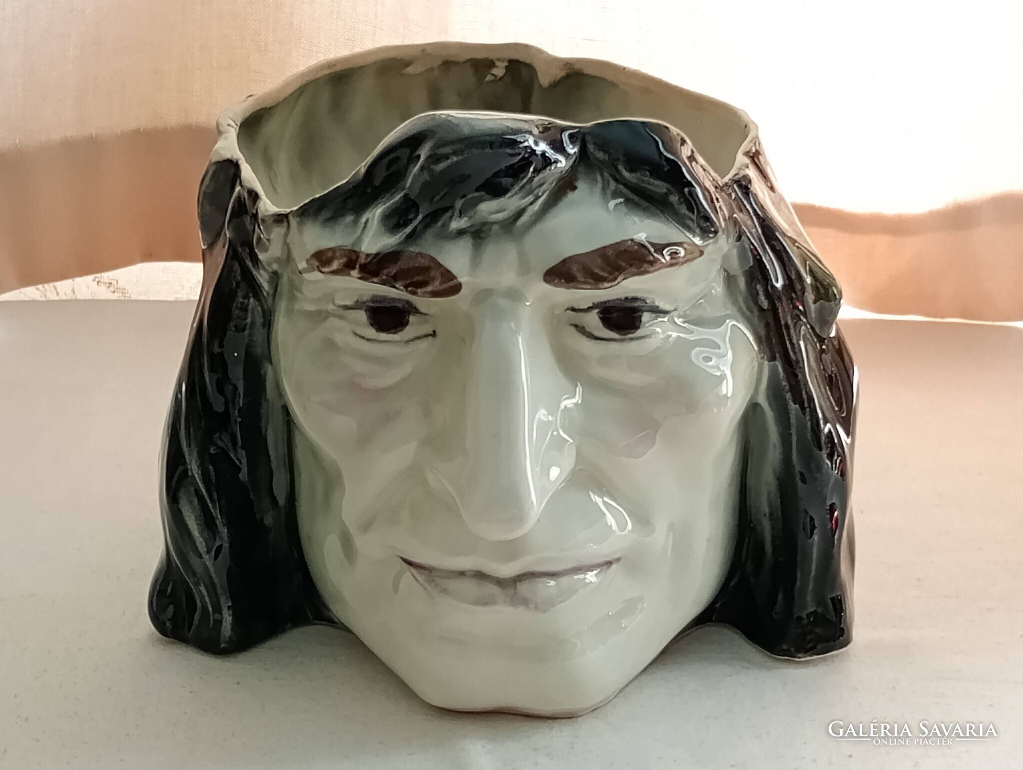 Képeken látható fellelt állapotban. Hogy humidor legyen hiányzik a fedele. Lehet kitünő kaspó vagy ceruzatartó vagy polcdísz. Indián harcost ábrázol. Nekem a magyar rajzfilm sorozat Matyás királyra is hasonlít.