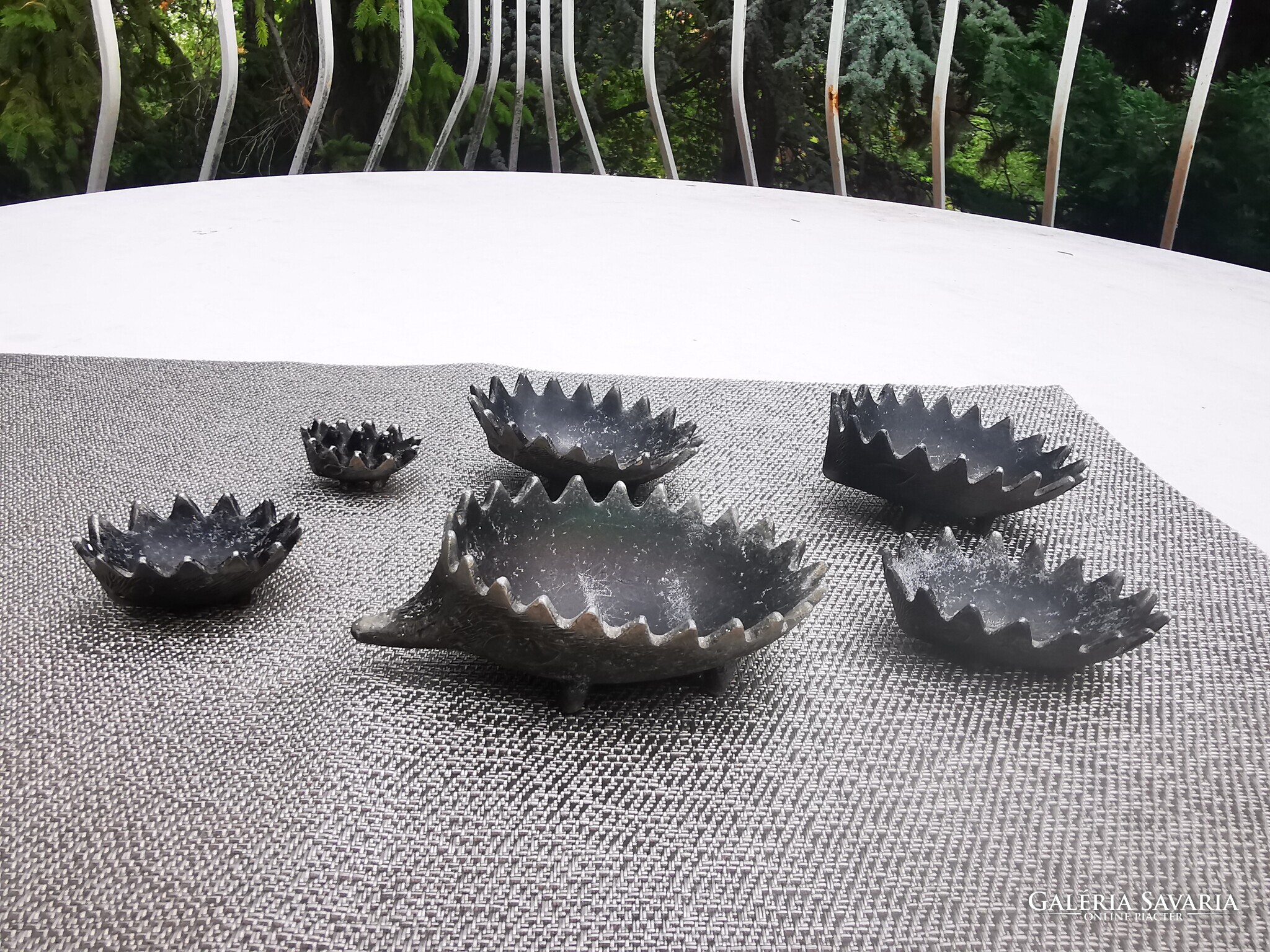 Walter Bosse dizájn, sün család, 6 db-os hamutartó, dísztárgy, h: 13 cm, 60-as évek,
