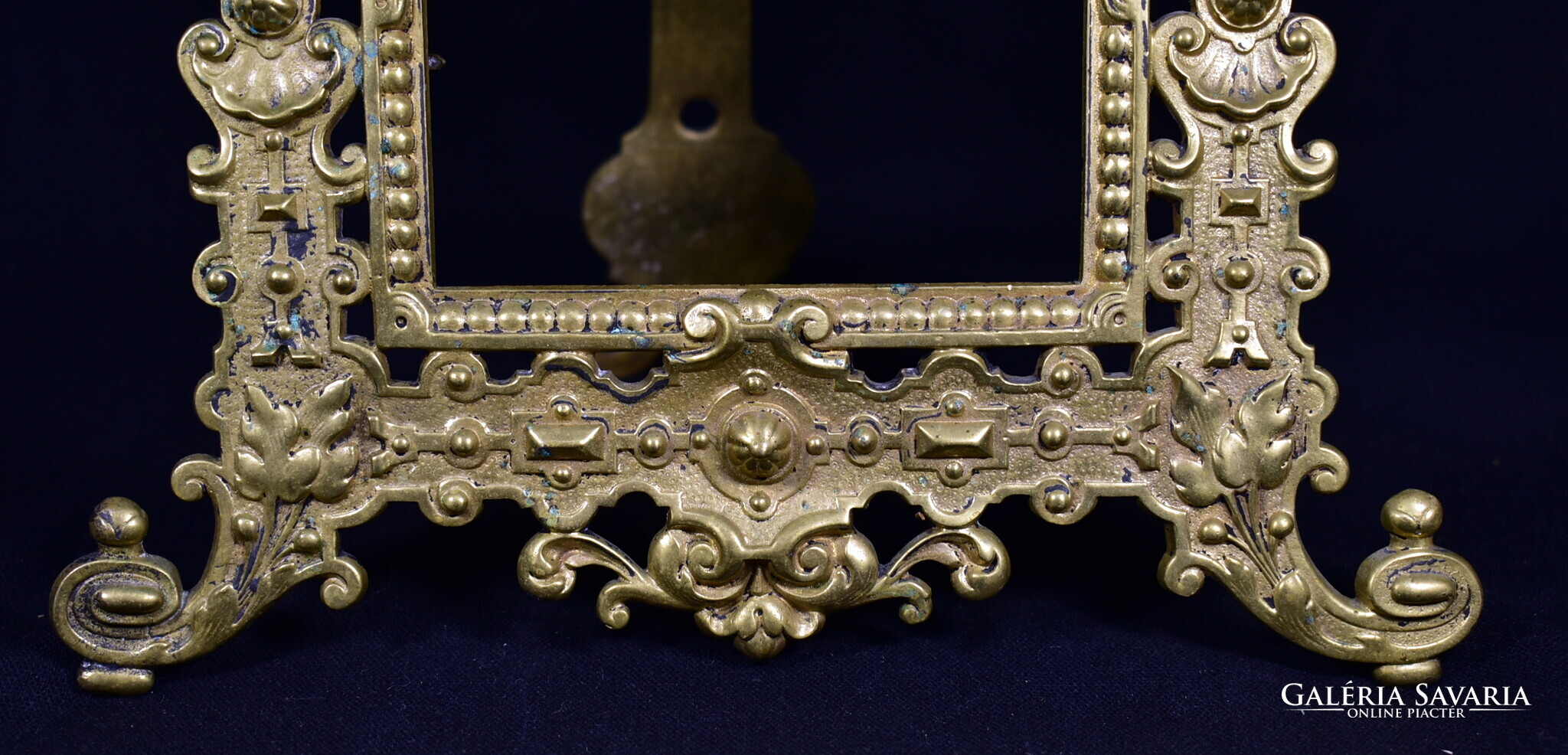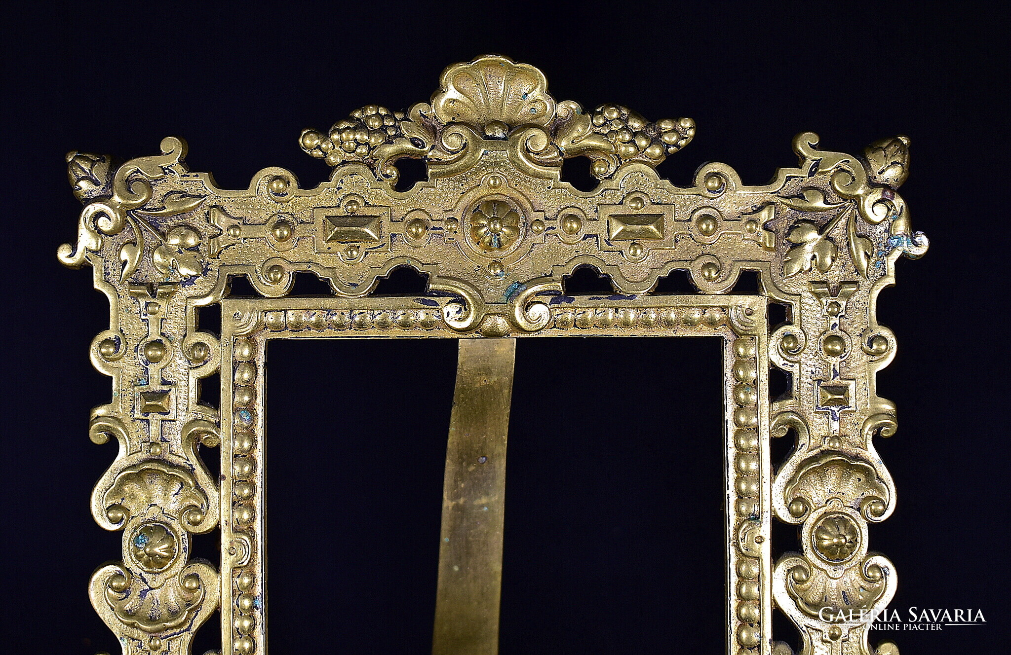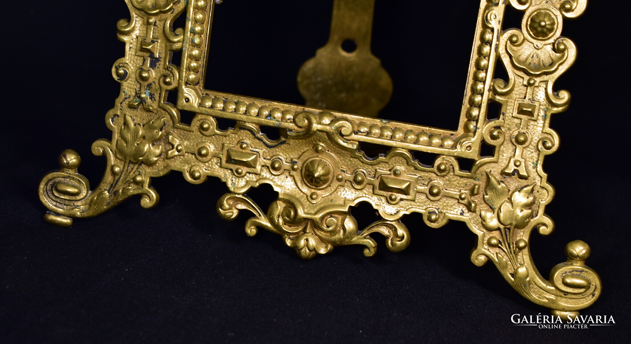 XIX. százas második fele , korabeli historizáló asztali fénykép keret , szép állapotban , teljesen rézből készült nagyobb fazonú darab , belső kép m.: 20 x 11 cm Teljes m.: 32 x 22 cm