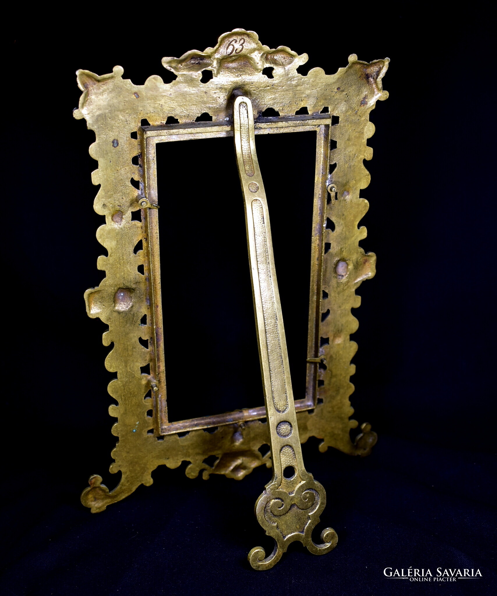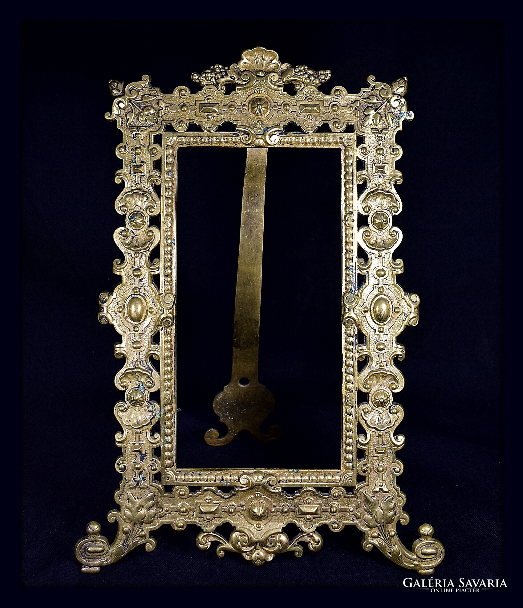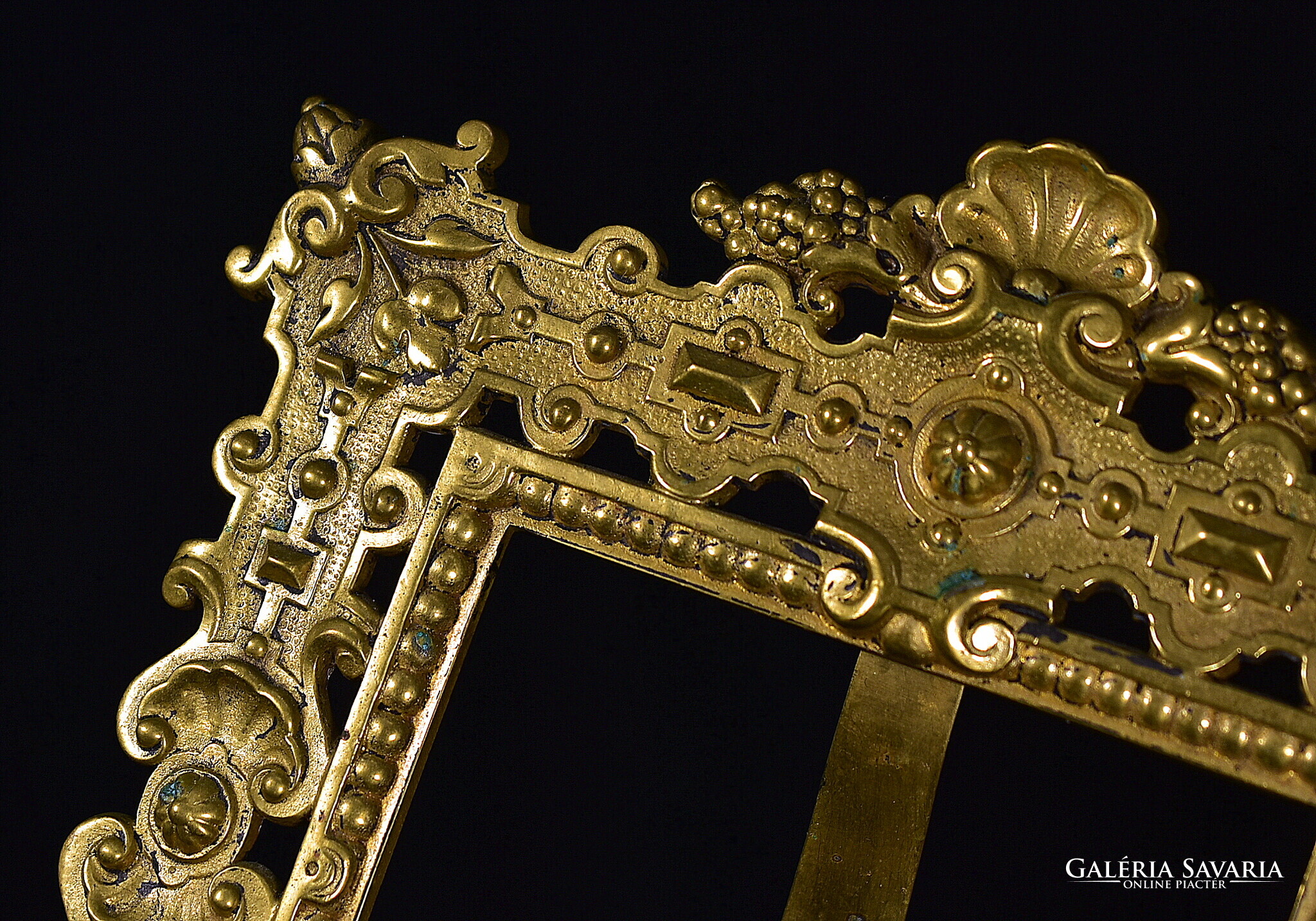 XIX. százas második fele , korabeli historizáló asztali fénykép keret , szép állapotban , teljesen rézből készült nagyobb fazonú darab , belső kép m.: 20 x 11 cm Teljes m.: 32 x 22 cm