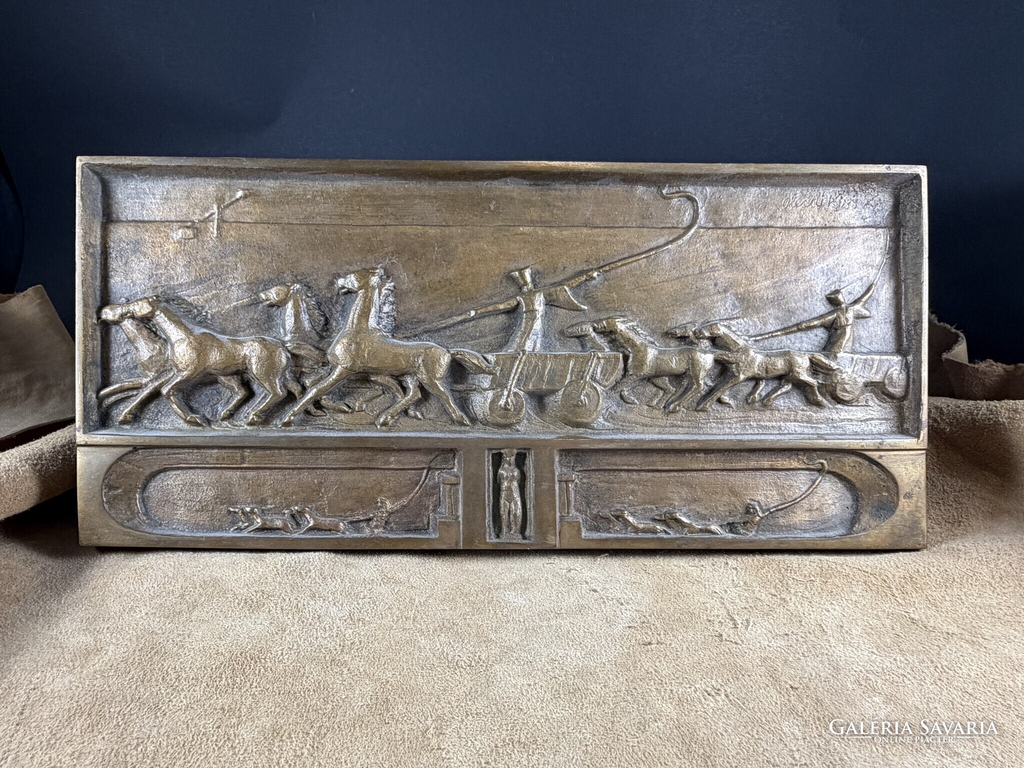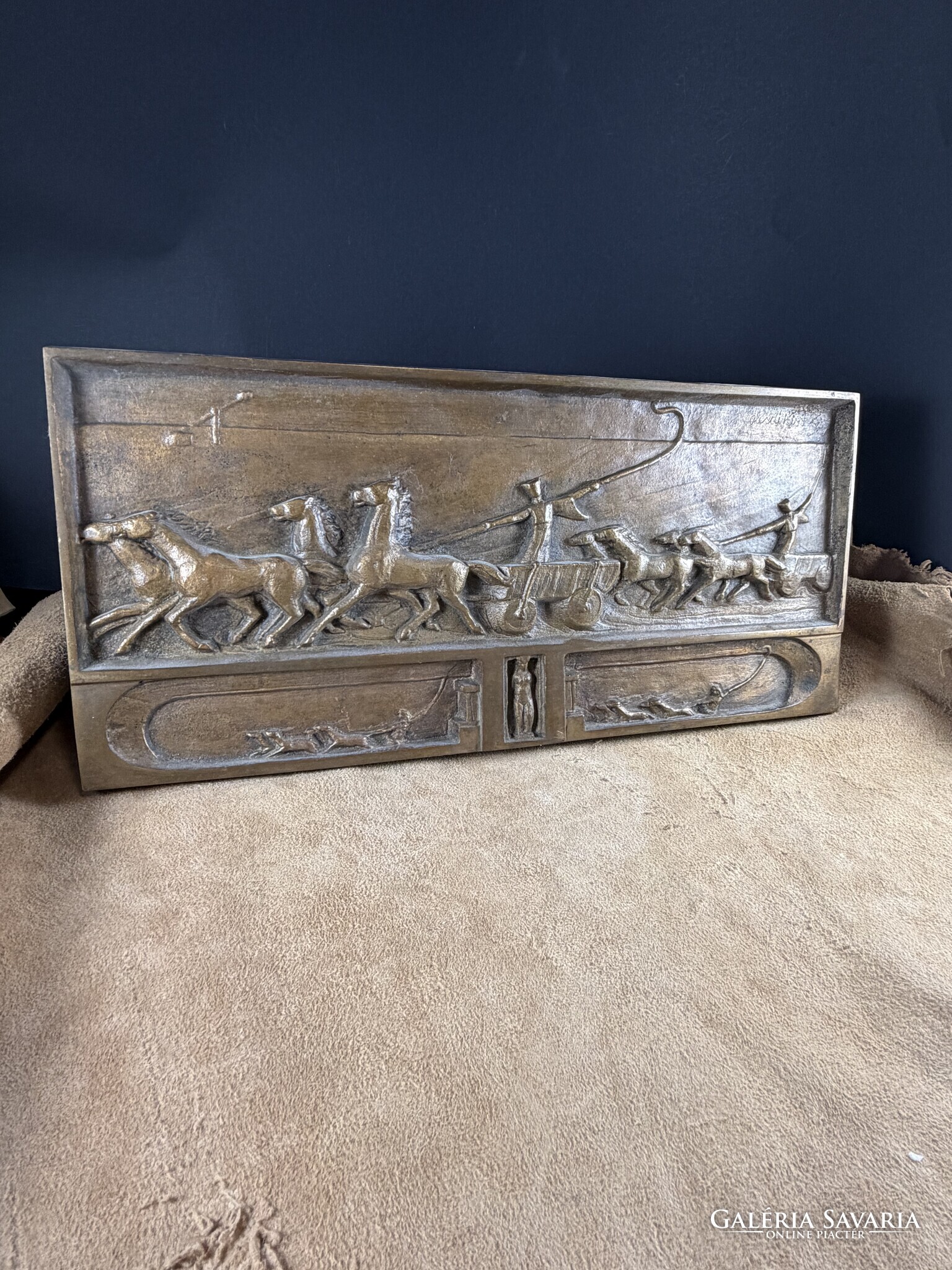 Olcsai Kiss Zoltán : Hajtók című Képcsarnokos bronz fali képe