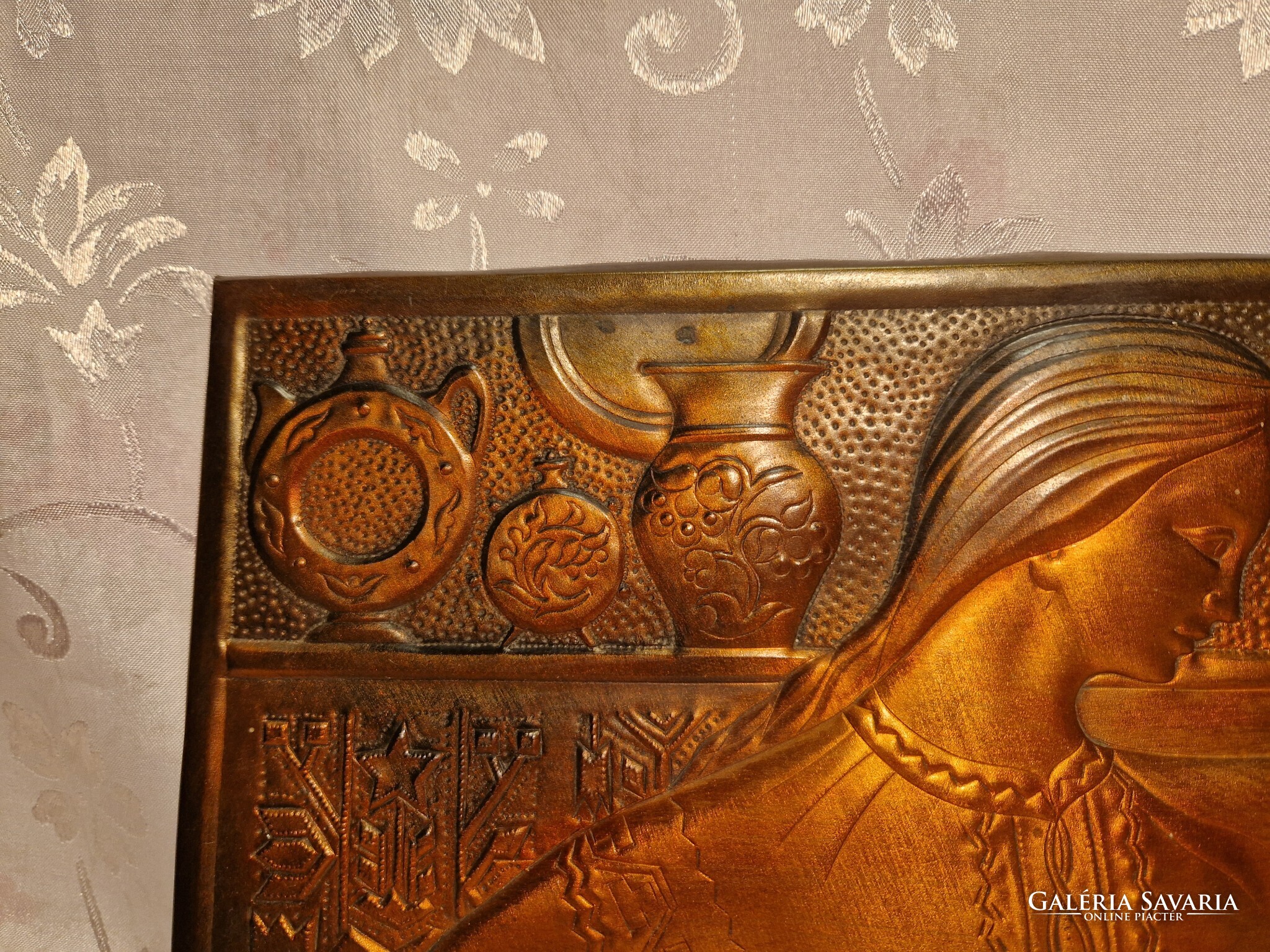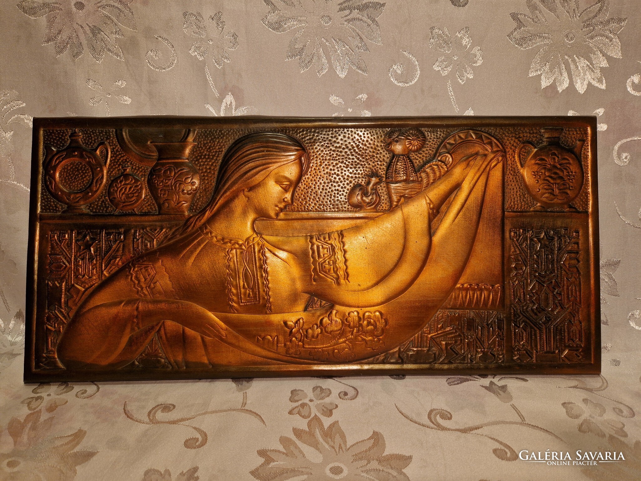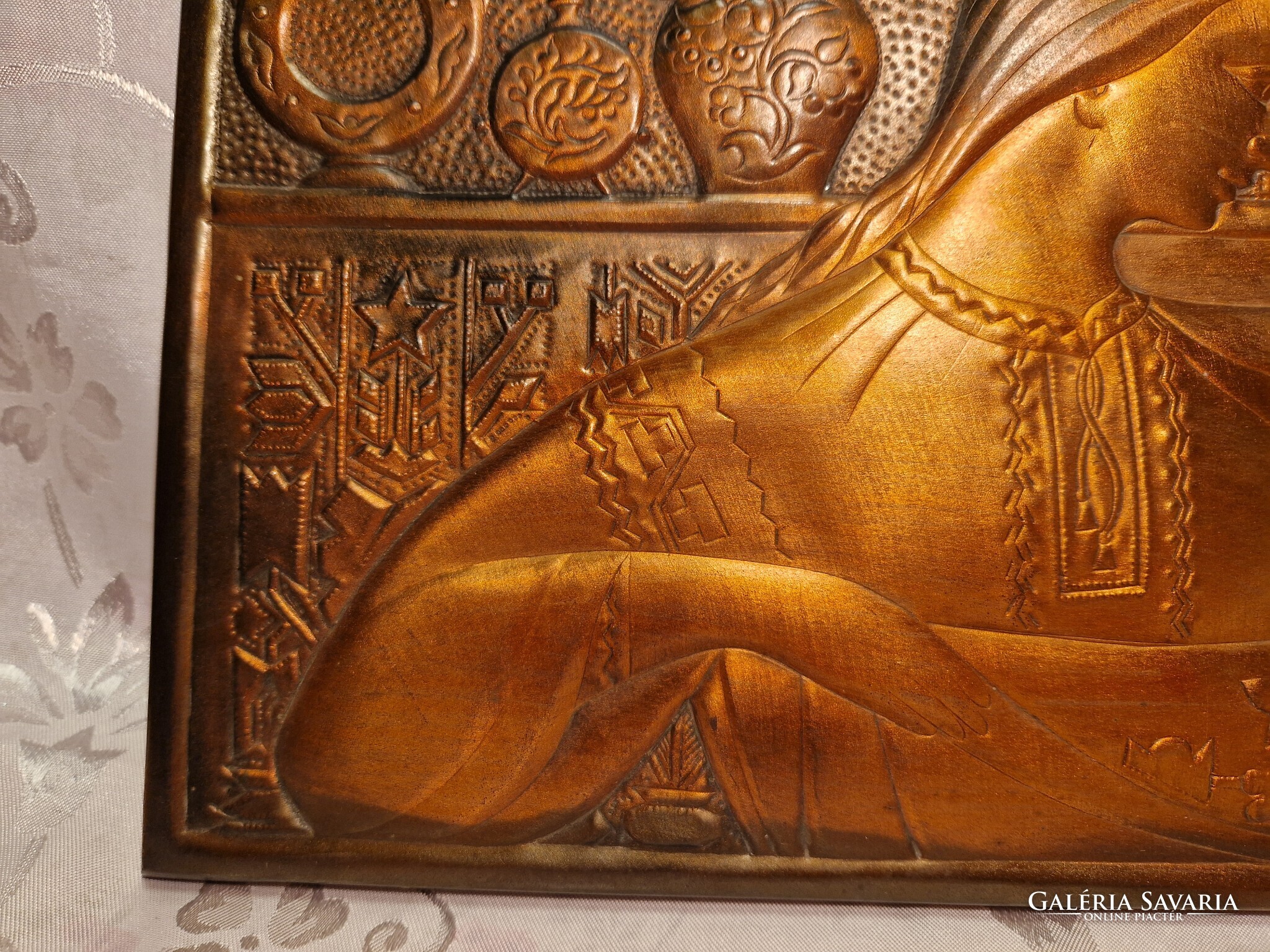 Egy gyönyörű, régi réz/rézötvözet domborműves falikép.