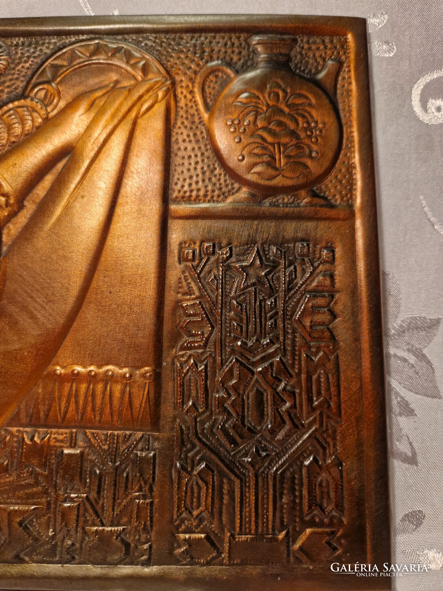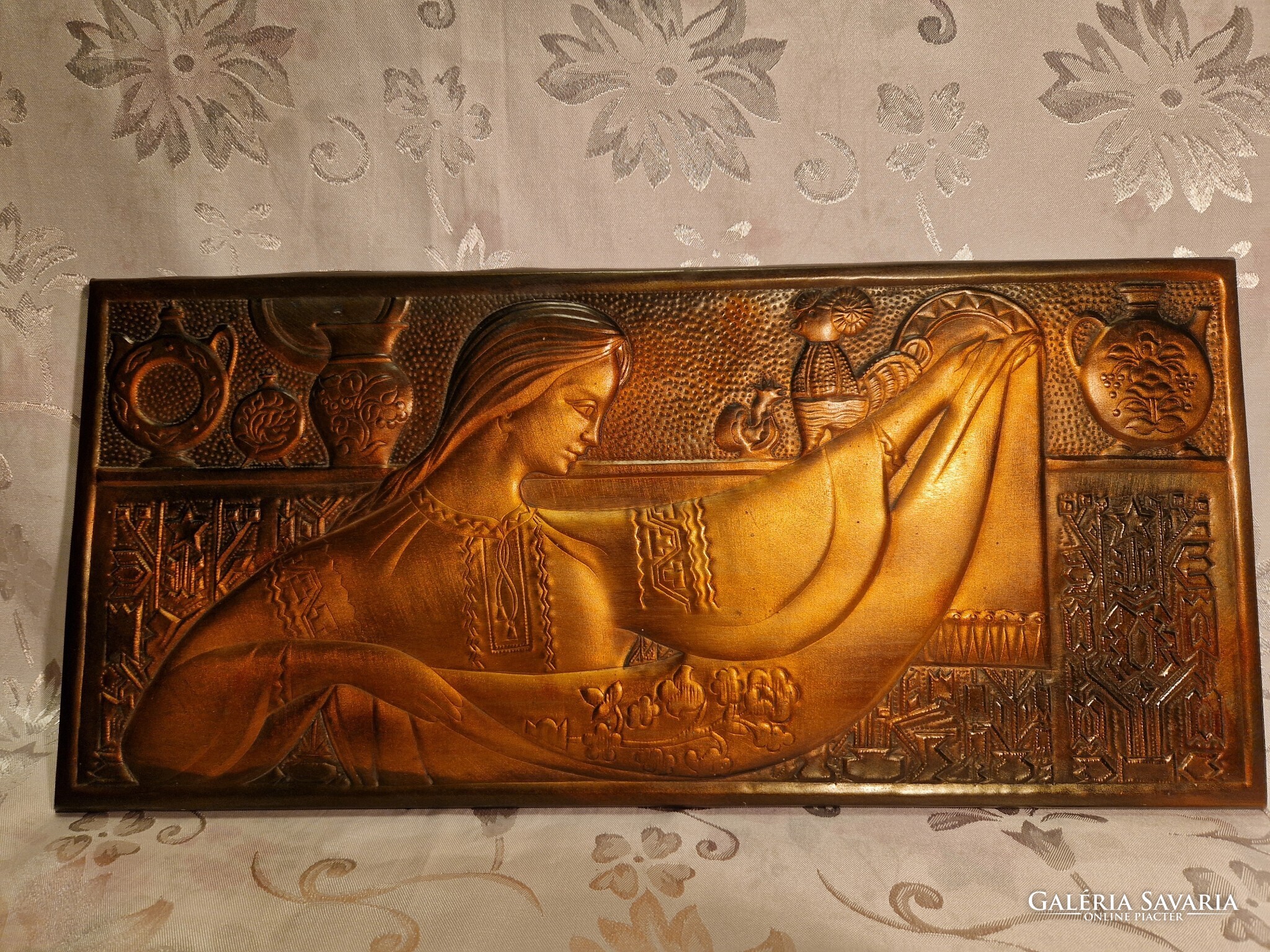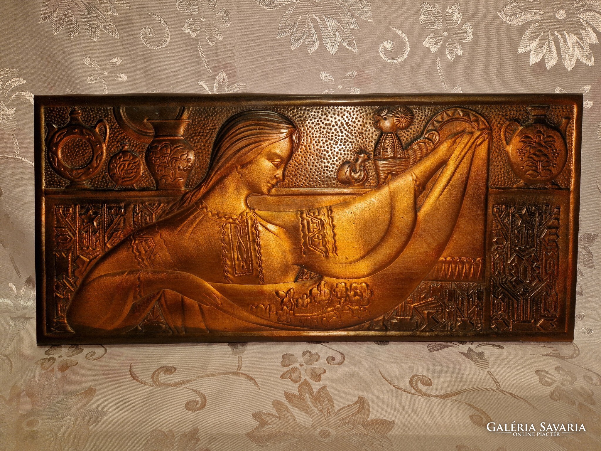 Egy gyönyörű, régi réz/rézötvözet domborműves falikép.