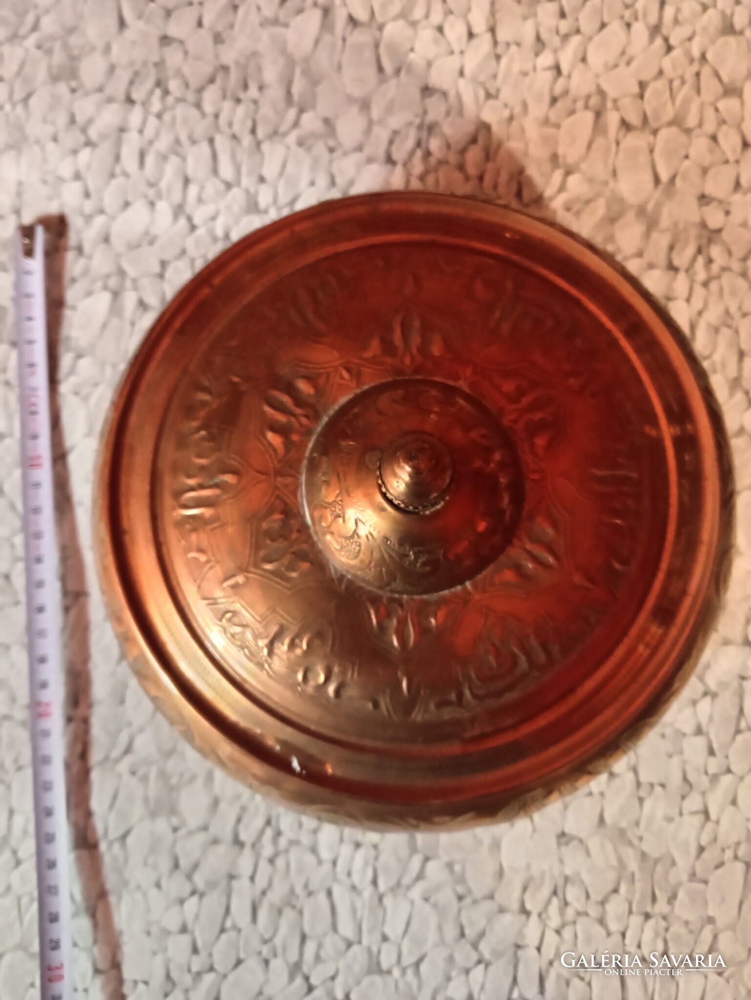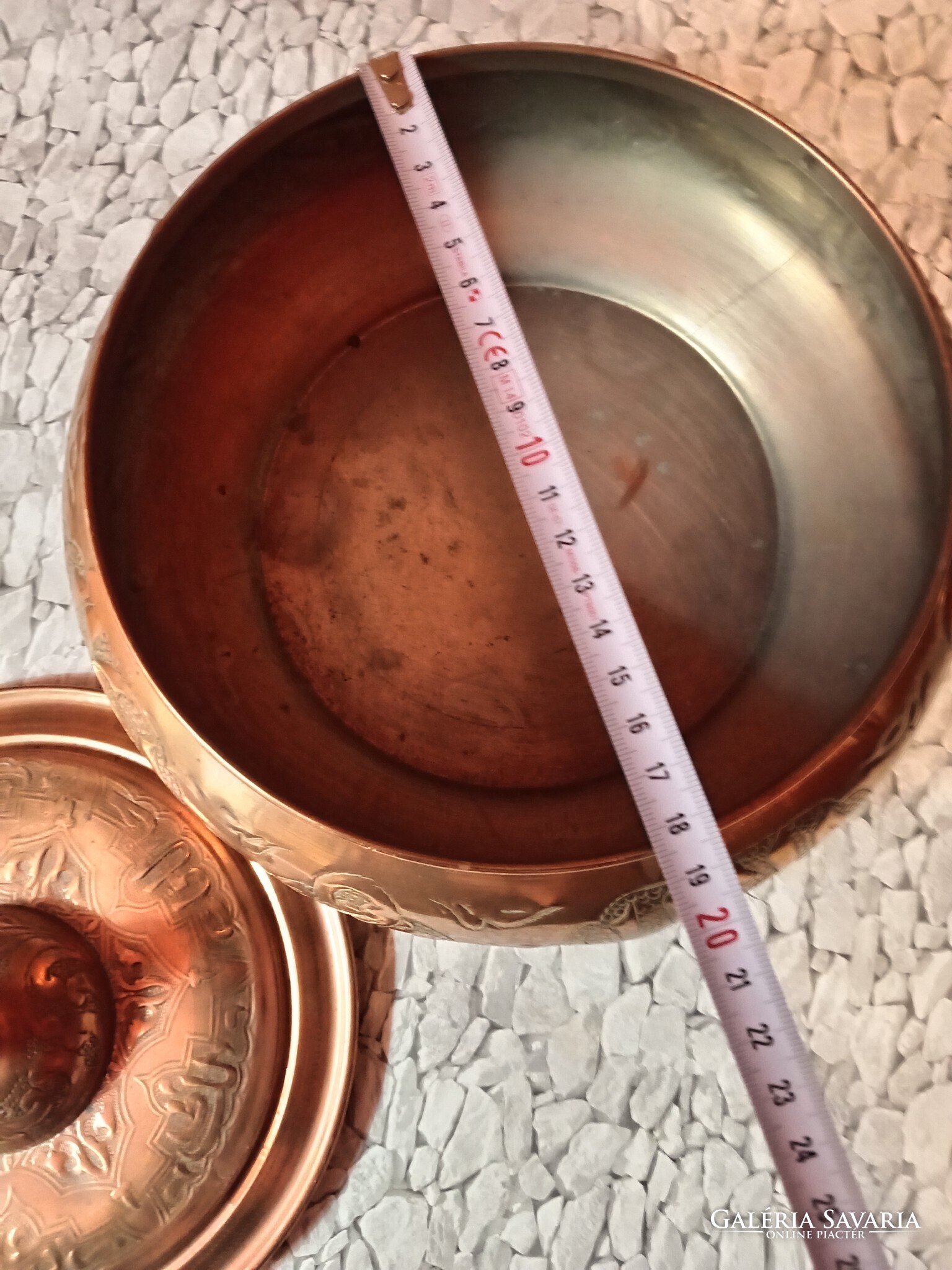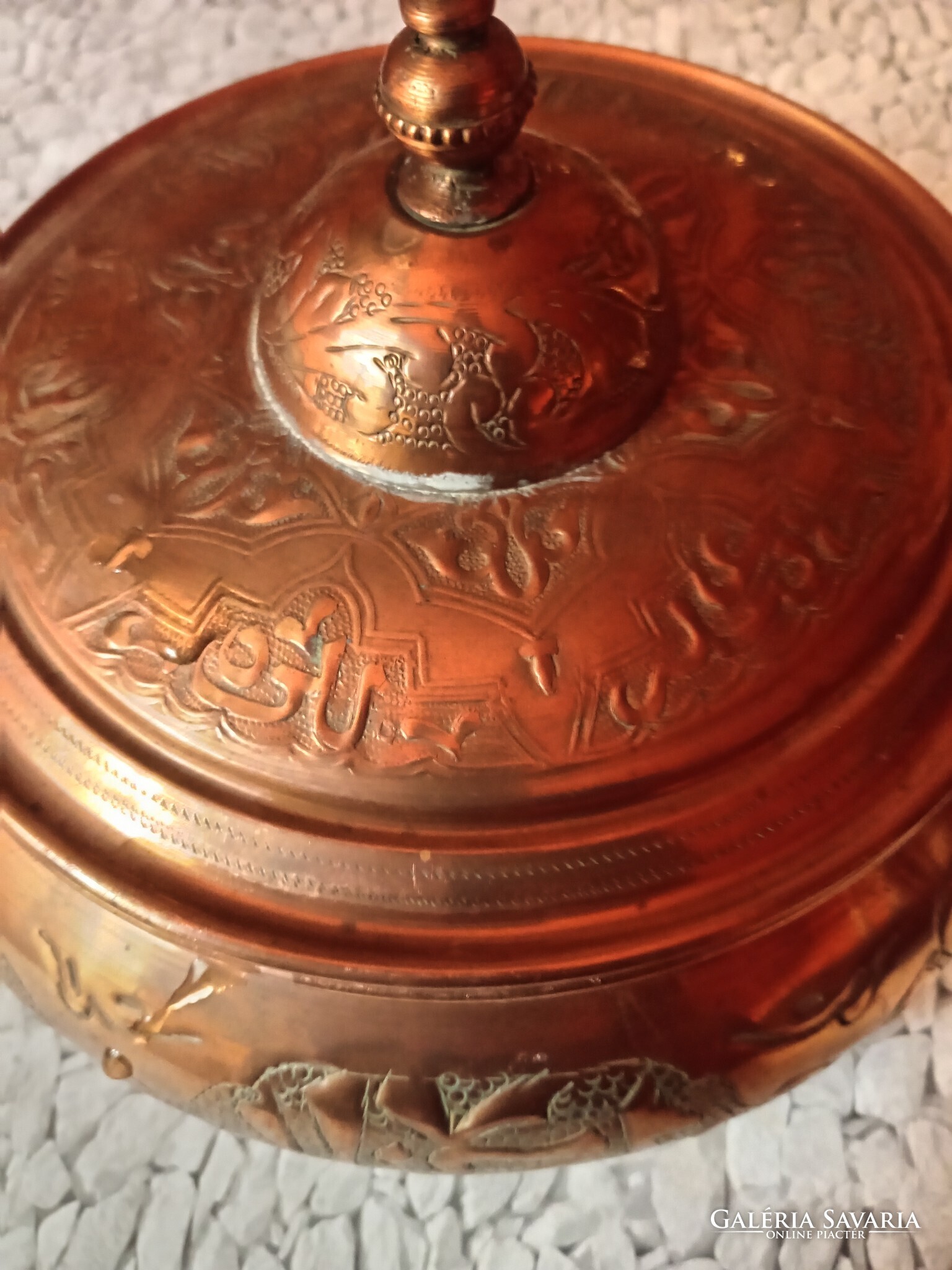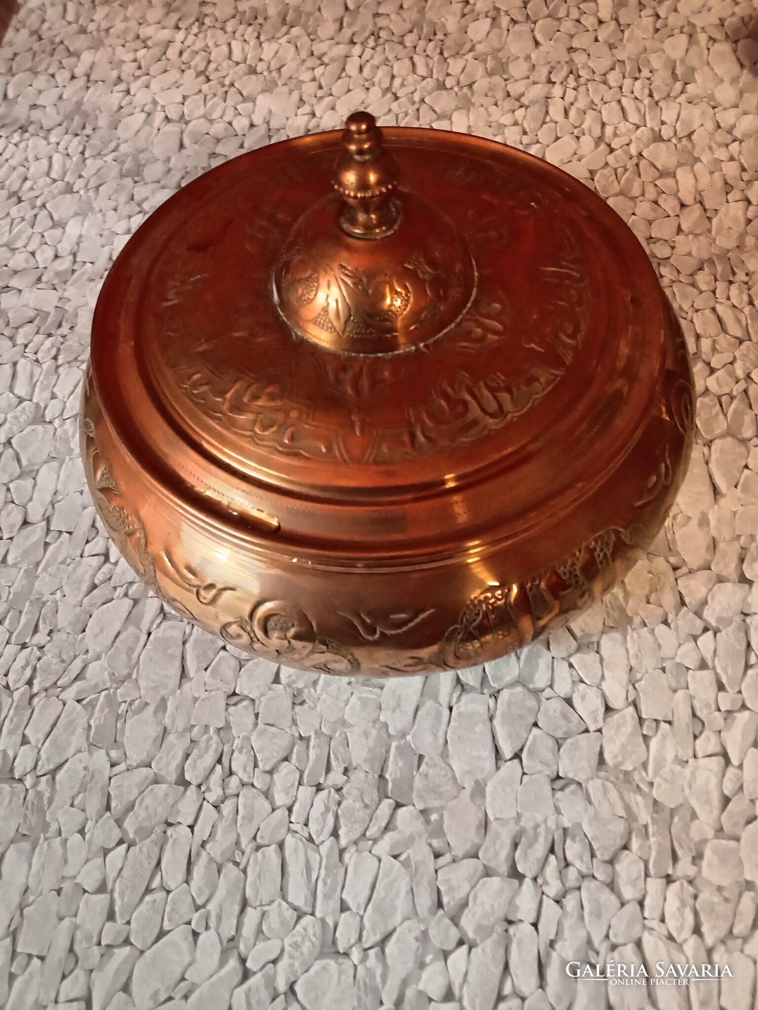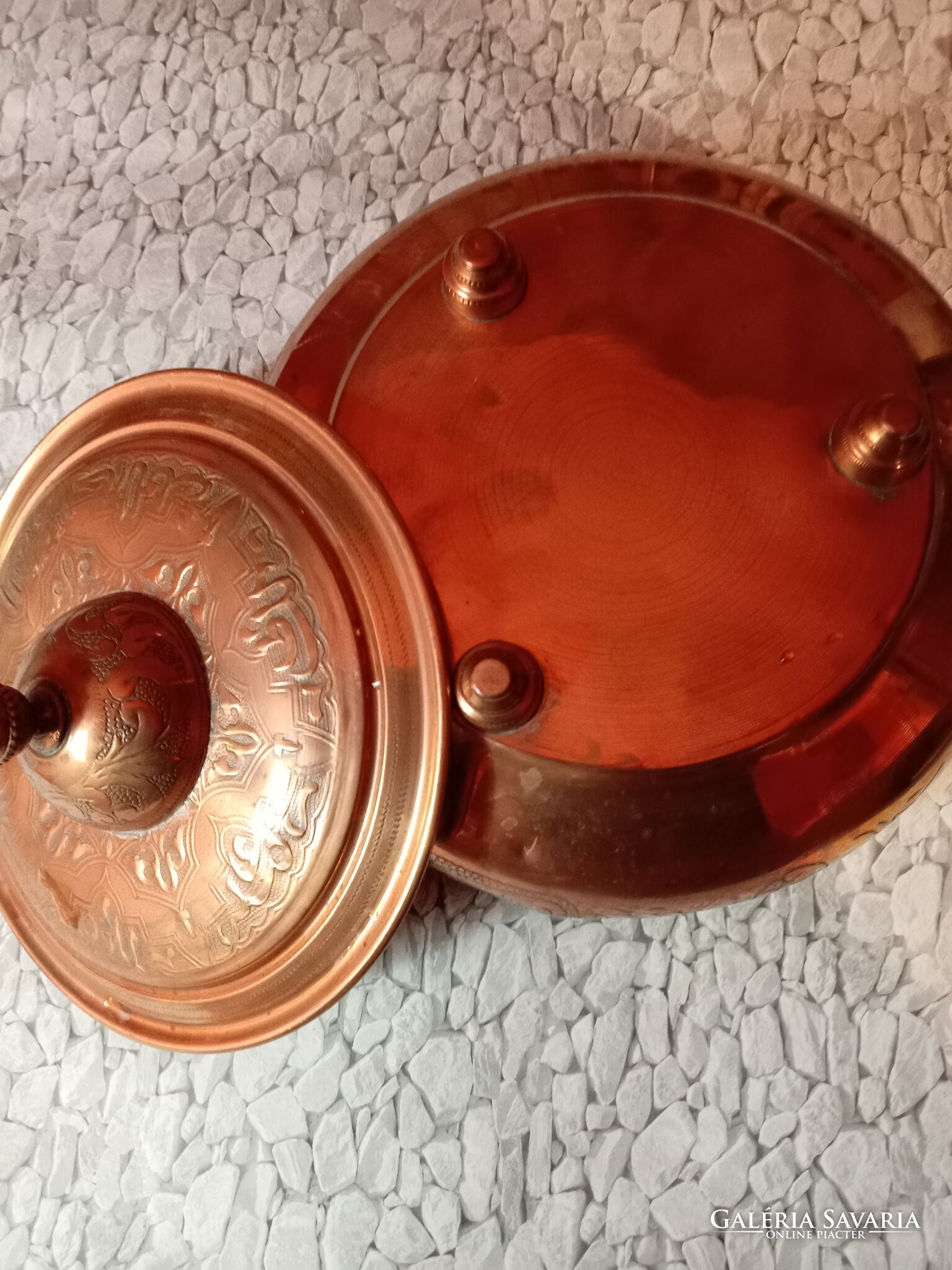 Díszes, kézzel vésett rézedény
